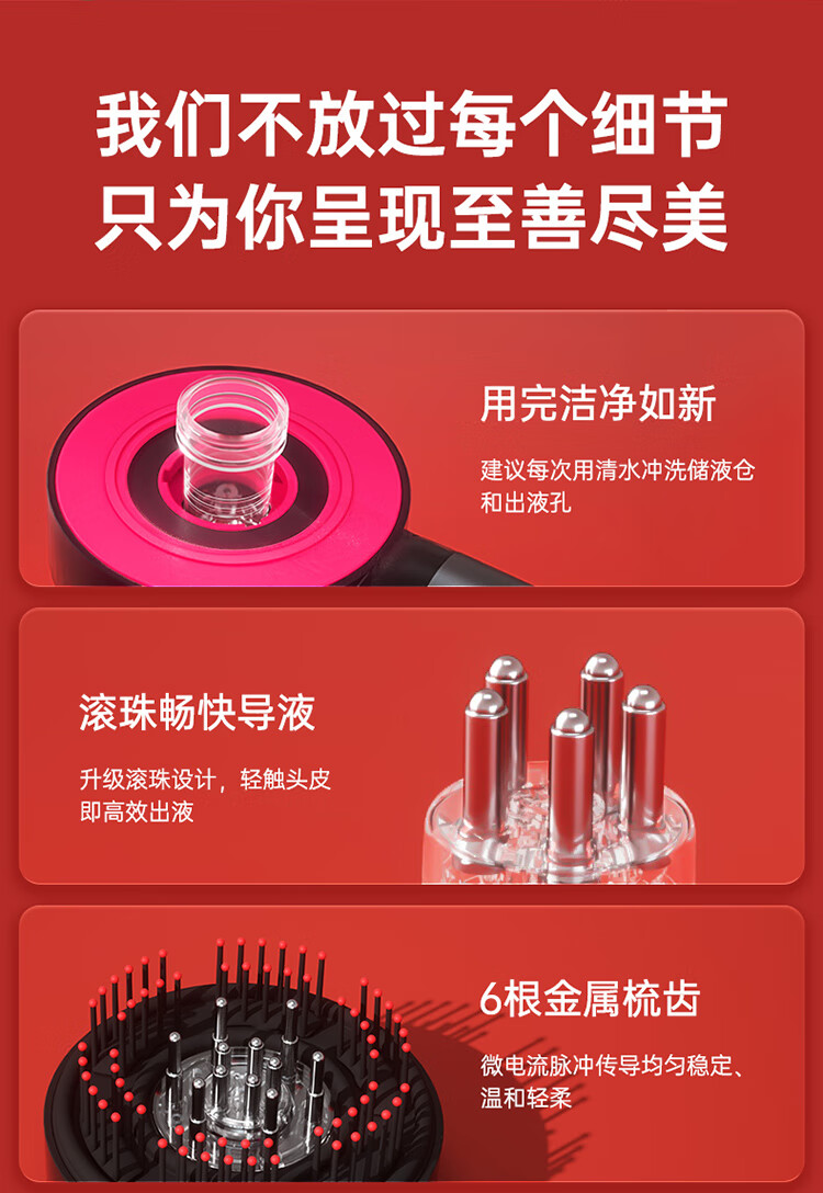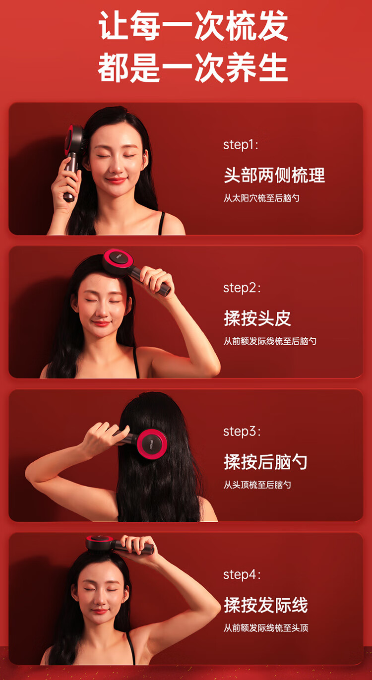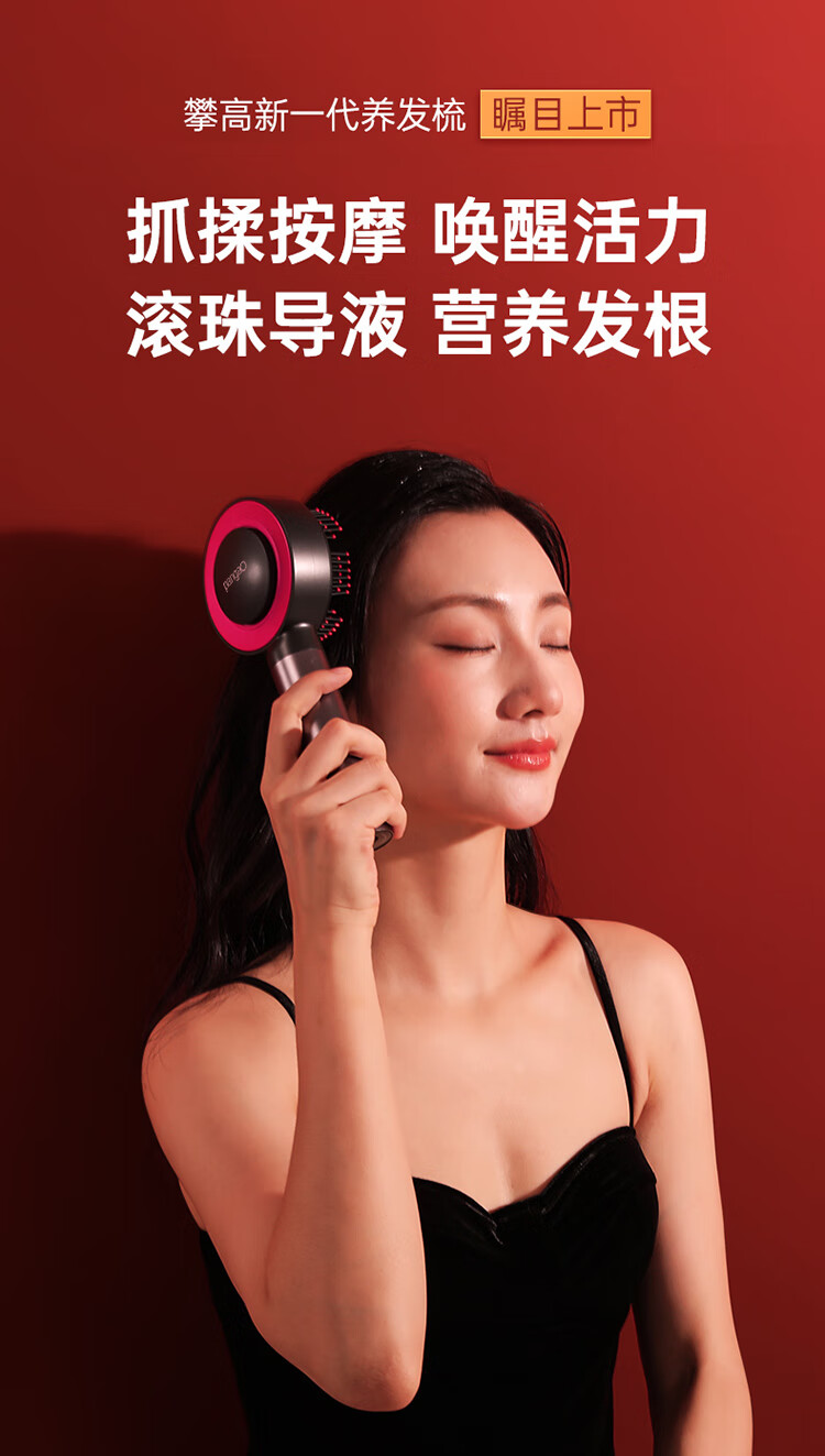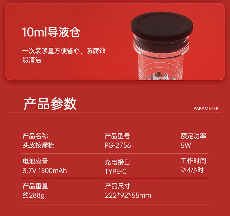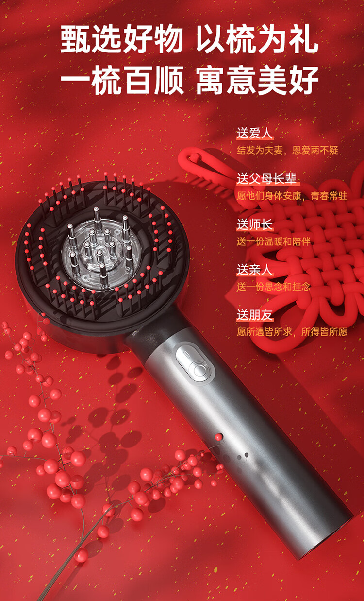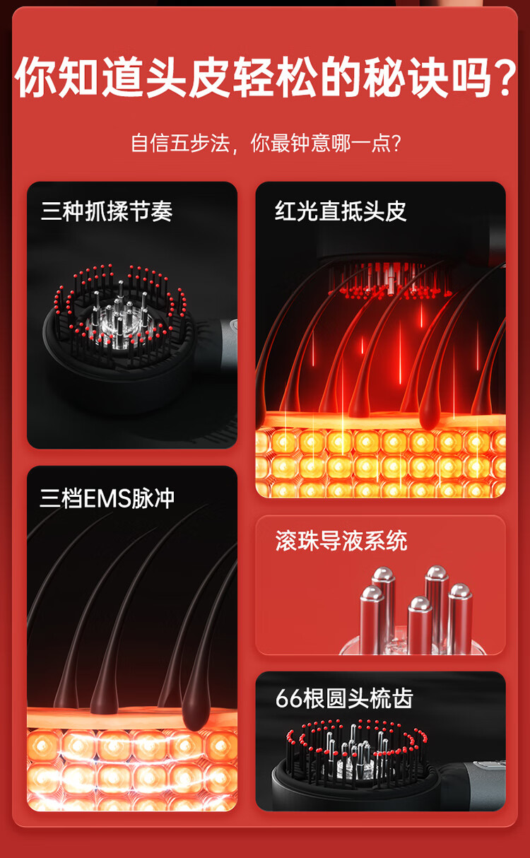 攀高头皮按摩梳升级红光养发健发梳头部护理PG-2756 灰色
