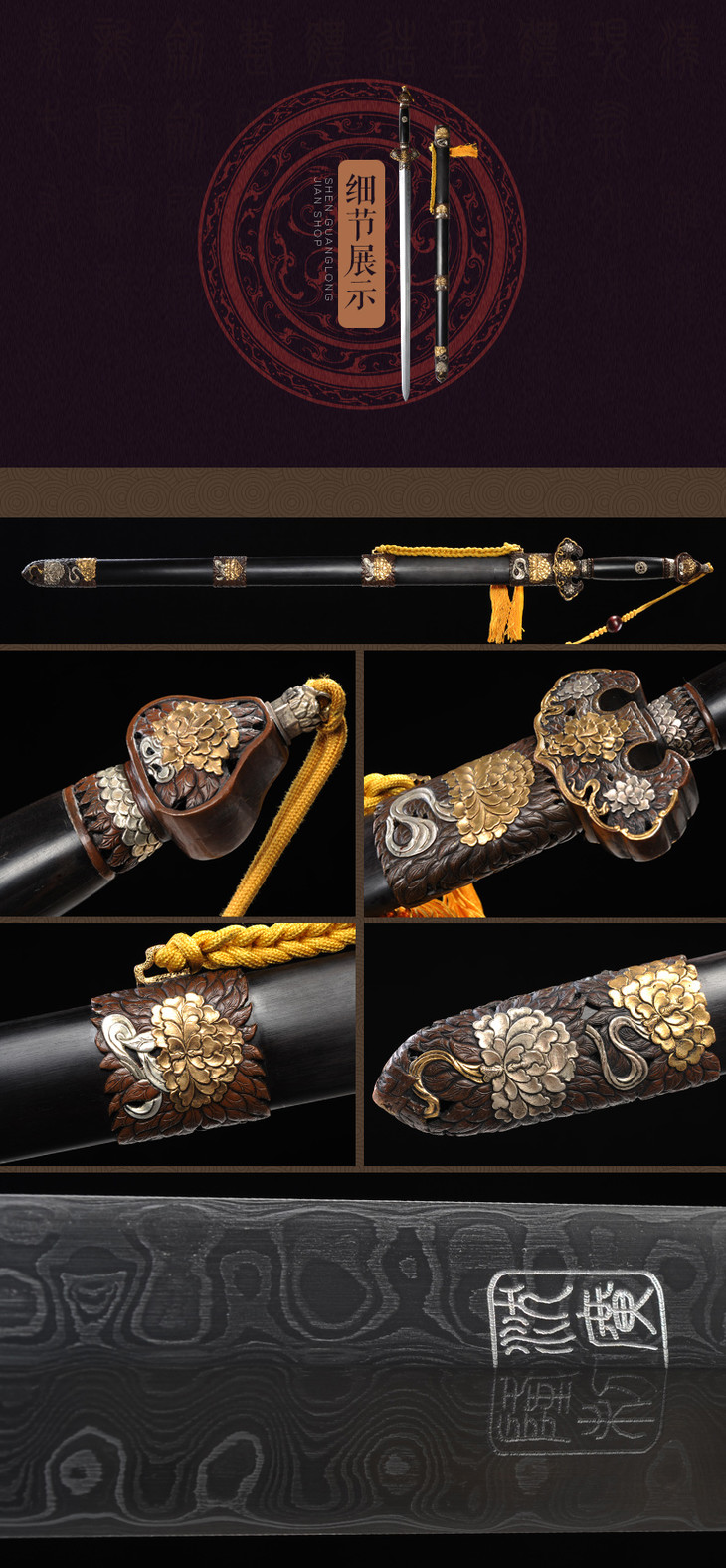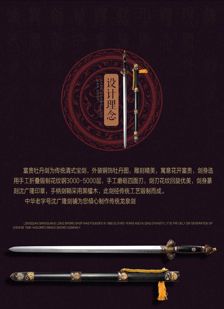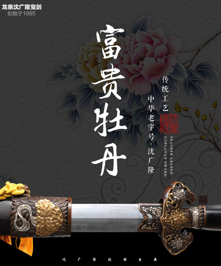 富贵牡丹剑 龙泉沈广隆剑铺宝剑 镇宅礼品剑收藏剑 sgl-3131未开刃