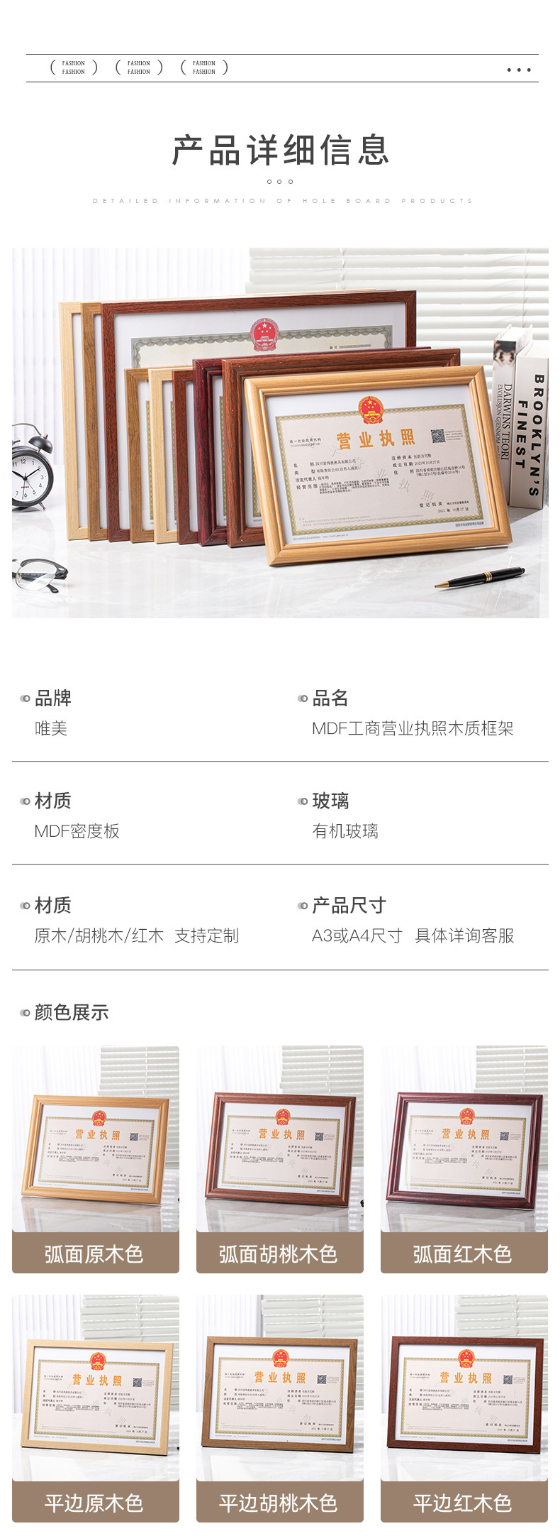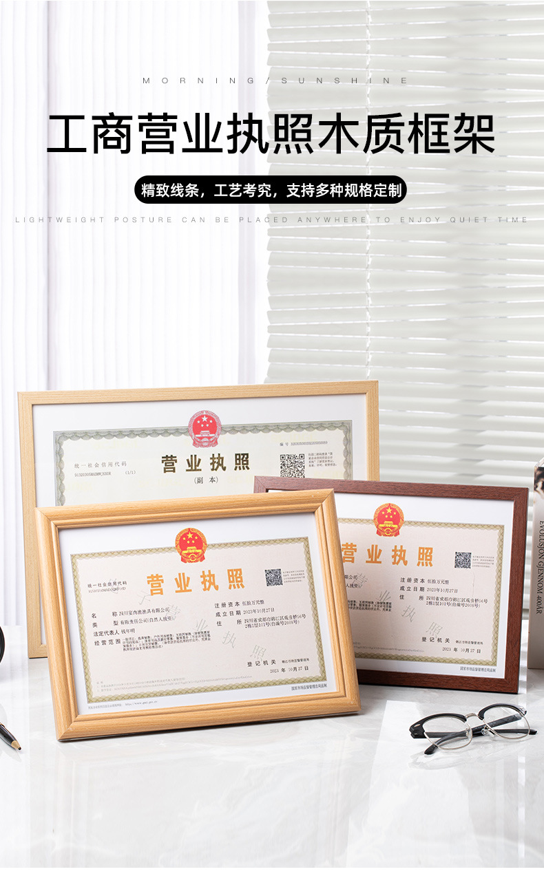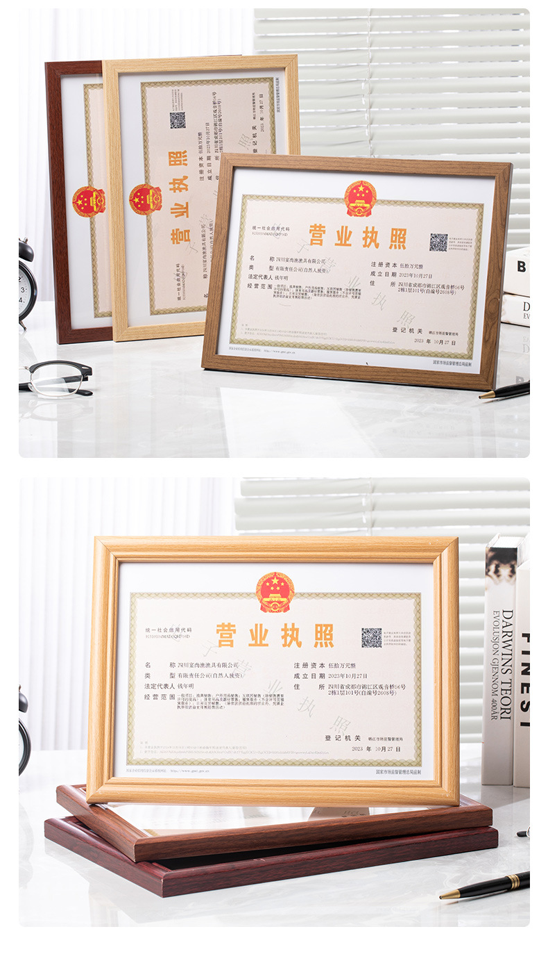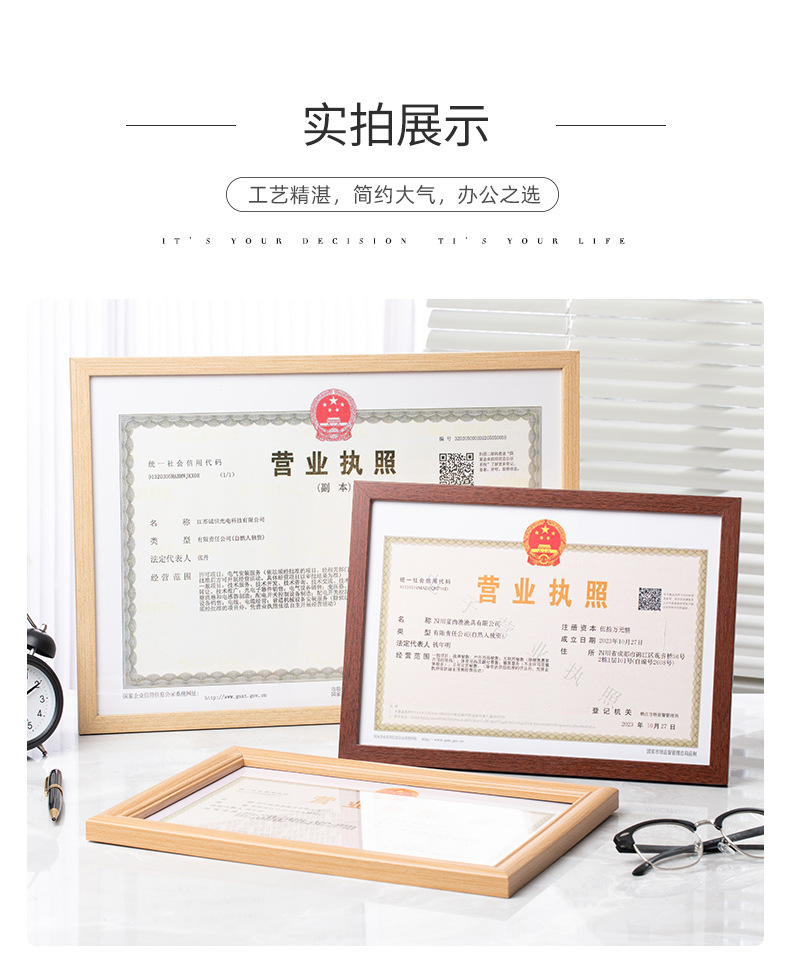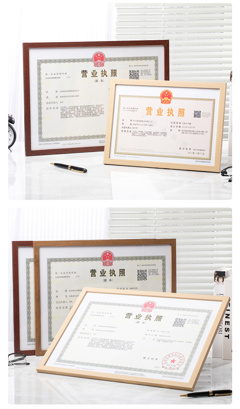 营业执照框架 正副本a3食品卫生三合一框 工商证框a4证书相框