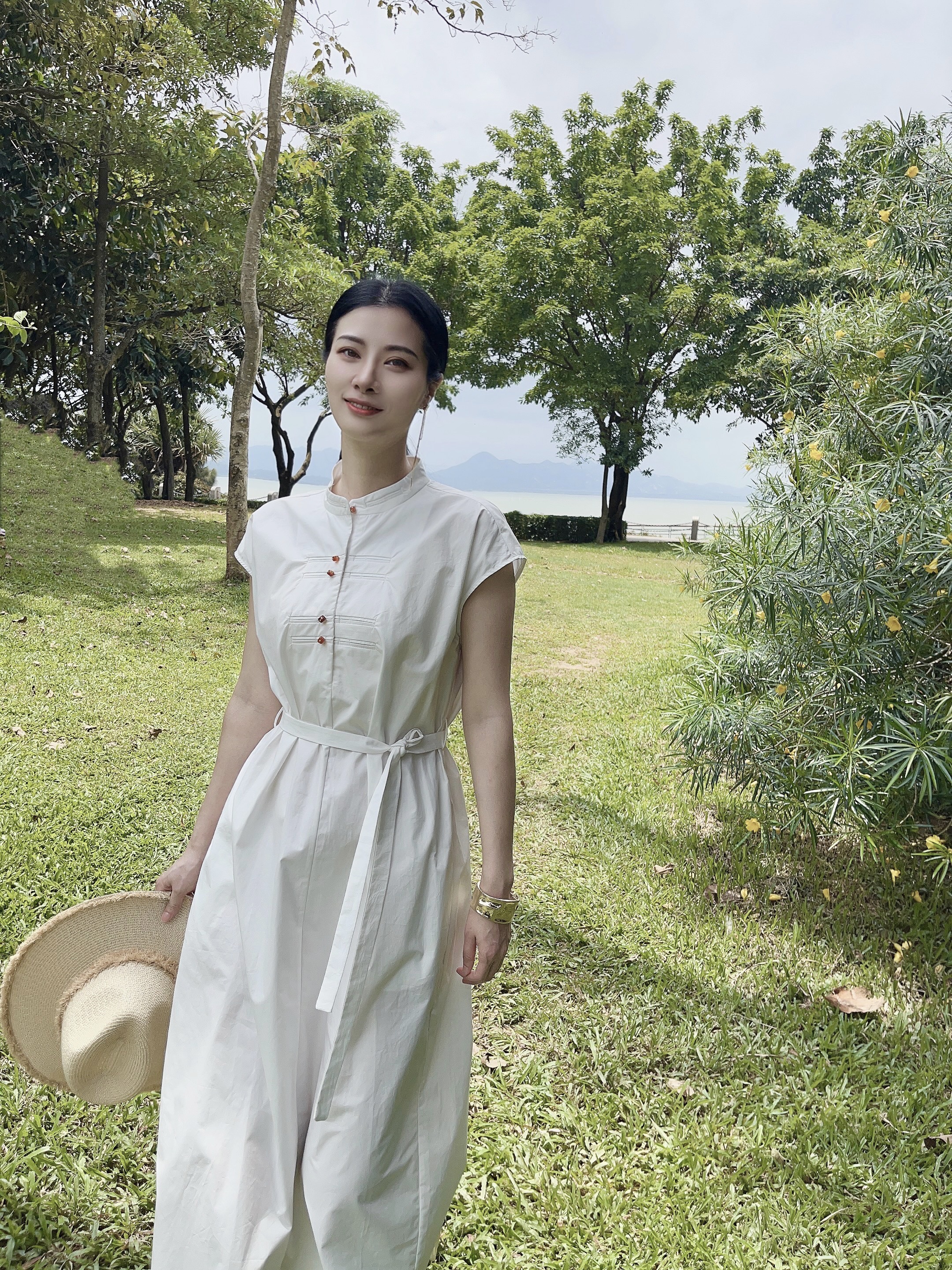 SZ2S117_皓色_连衣裙_春夏_立领无袖系带收腰长款衬衫式_高级女装_BERNIEELEN 伯妮斯茵