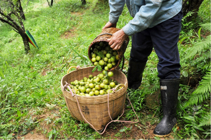 要制作好的梅精,村民们必须采摘6-7成熟的青梅,那正是青梅碱性最强的时候。所以梅精一年只有在四月末才能加工生产。仙娘溪和乐明村十几年甚至二十几年前种下的梅树不用农药化肥,远离村子深处山沟;青梅果表面呈现出自然的斑驳,虽没有外面市售的青梅好看,却让人放心。