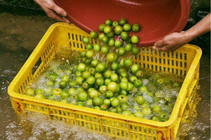 这些年,原乡梅好合作社在制作梅精的过程中,积累了丰富的经验,在遵循古法的手作加工方式的同时也在不断改进制作工艺。整个过程尽量不使用金属器具(因为青梅是强碱性食品,跟金属一起会产生反应),大部分工具都是石头、木、竹、陶瓷这些材质的,以保持青梅效用。