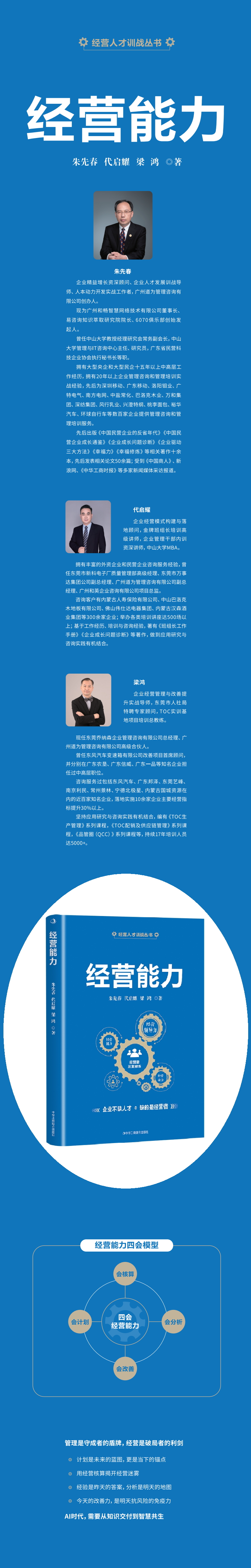 经营能力是离经营结果最近的;胜任力,没有经营能力就很难最大化产出经营结果。本书将经营能力总结为;四会,即;会计划;会核算;会分析和;会改善。本书从问题出发,有针对性地提供解决方案与实战性案例,不仅在理论上可以支撑企业经营的PDCA过程,在实践上也可以与企业的经营行为无缝对接。