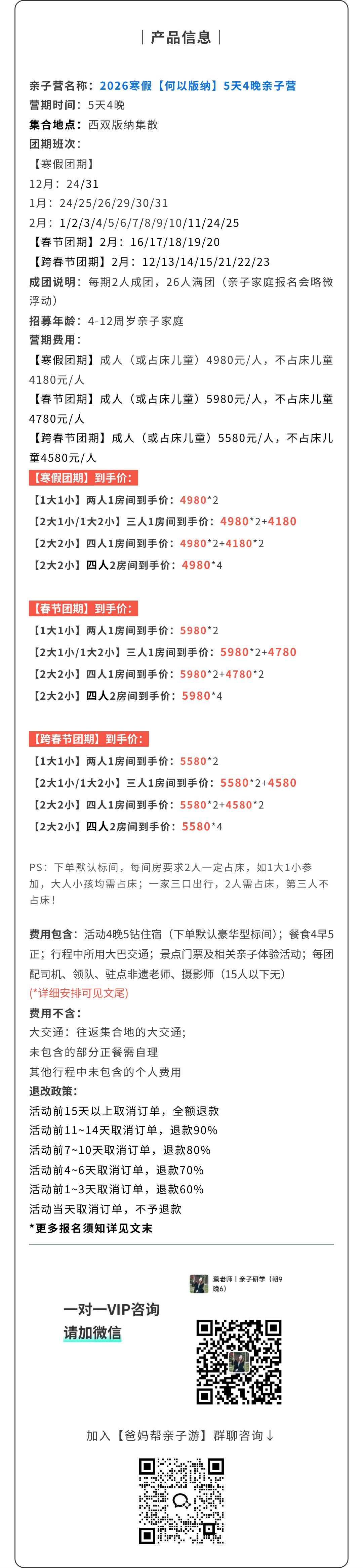 2026寒假【何以版纳】西双版纳5日亲子营 | 专属PBL项目式学习&原始森林公园研学通道+野像谷 vip 体验&5钻酒店4晚连住!
