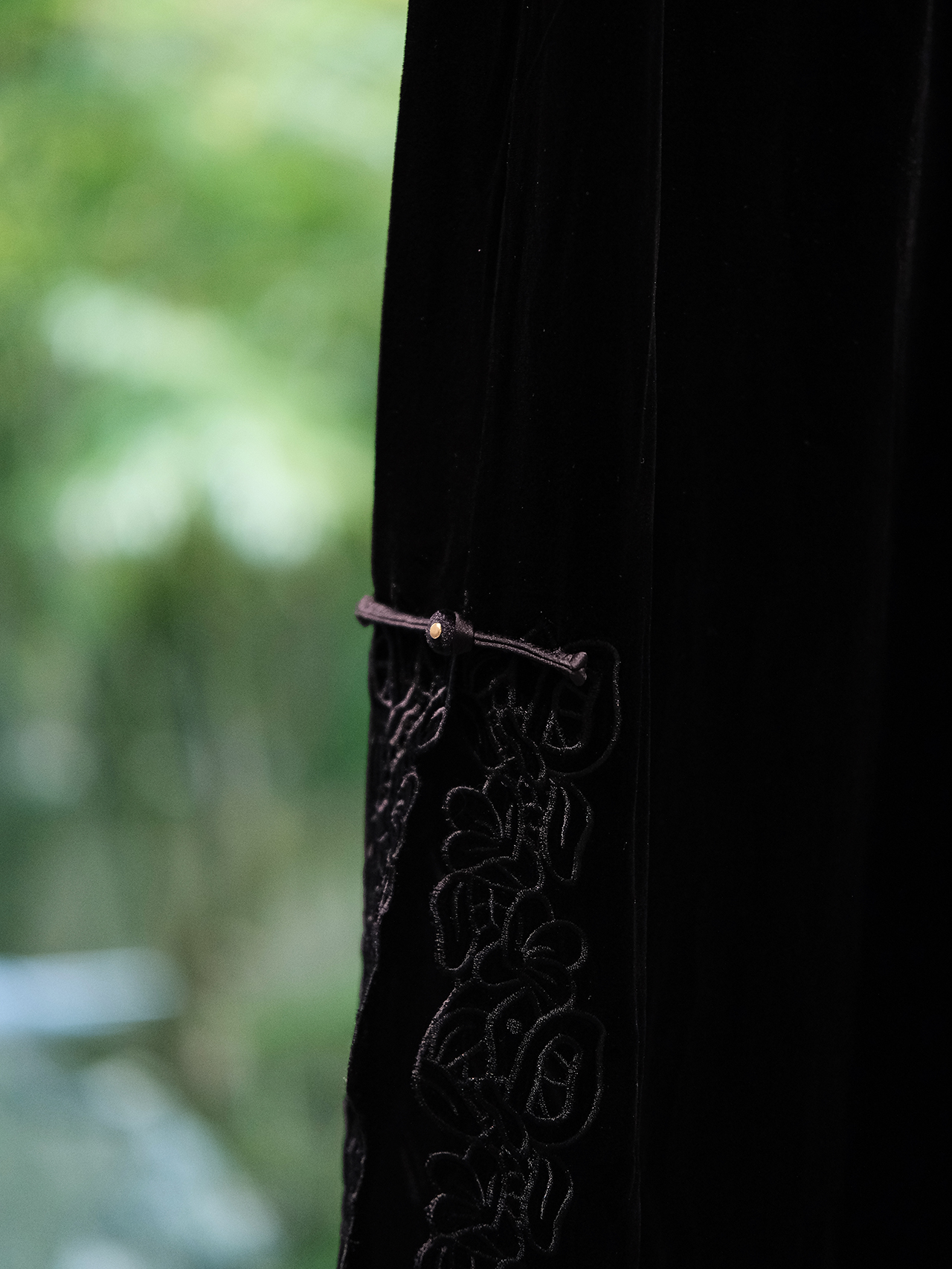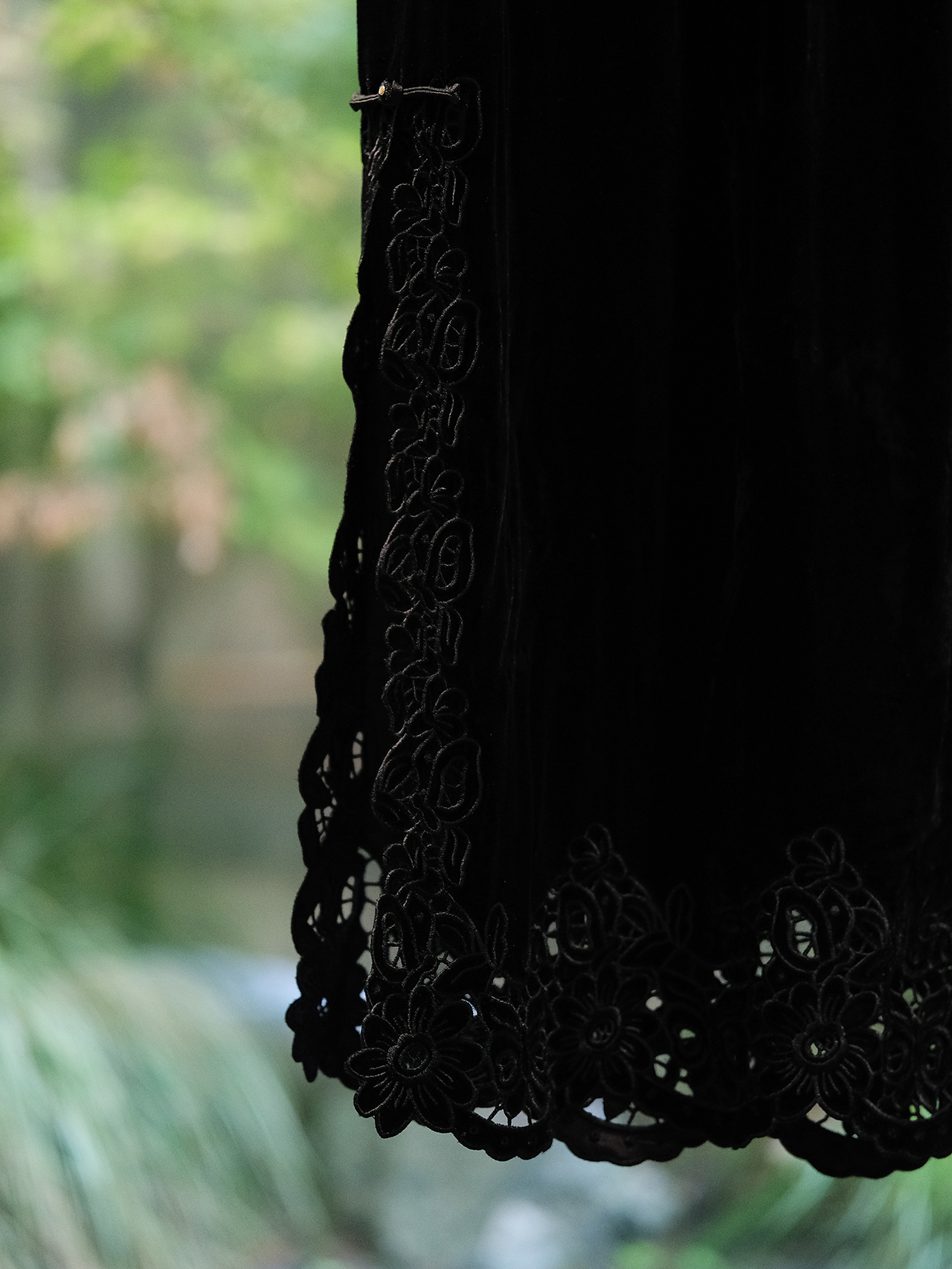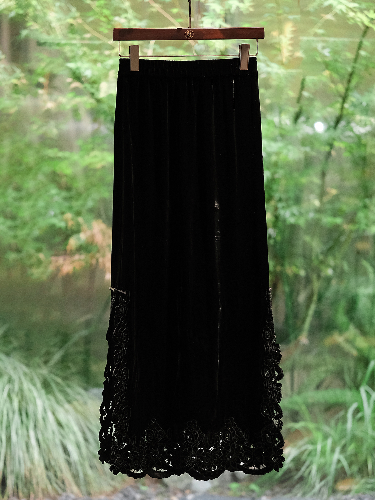 盛唐婧| 重磅真丝绒镂空绣花开叉半裙