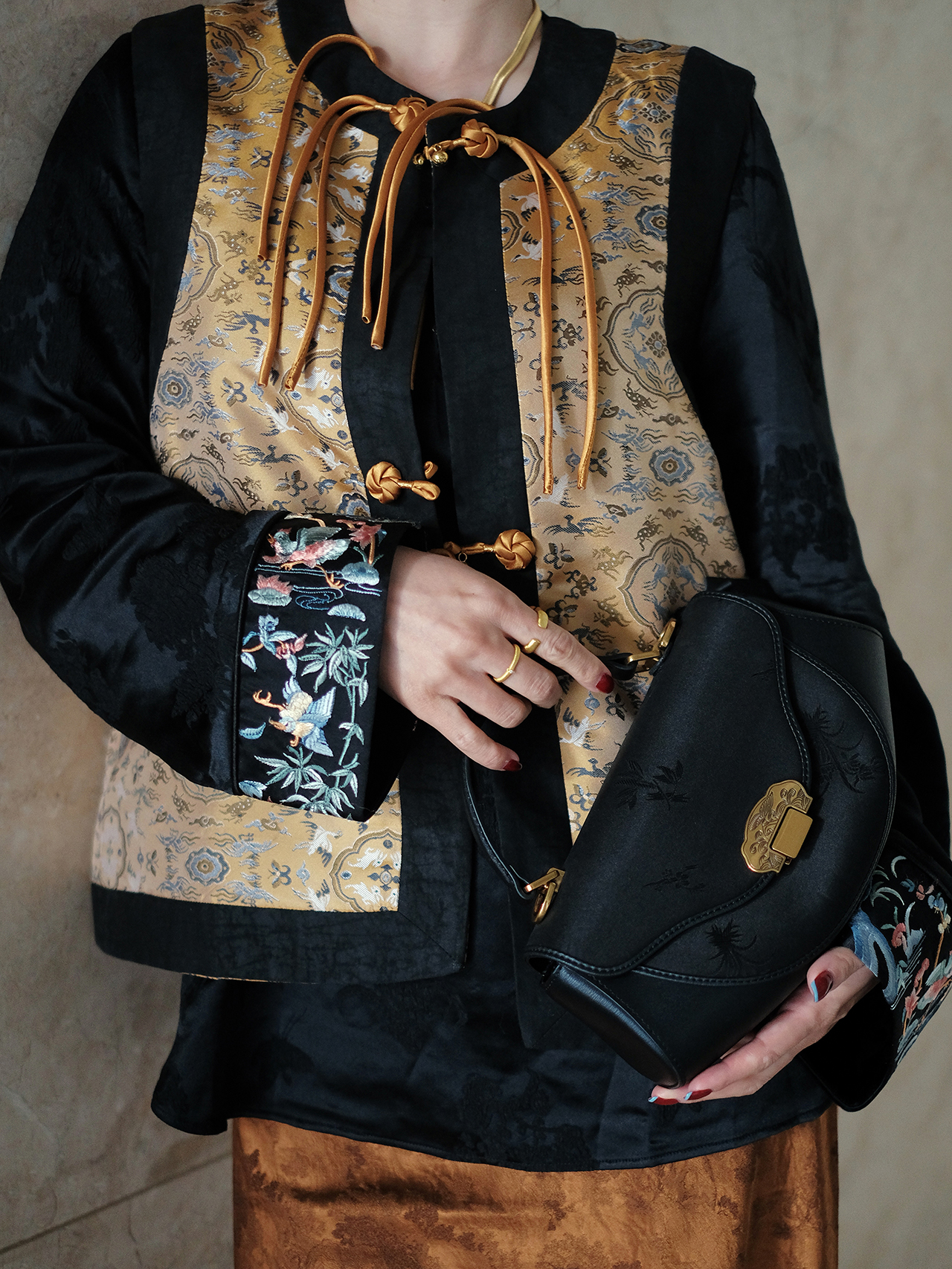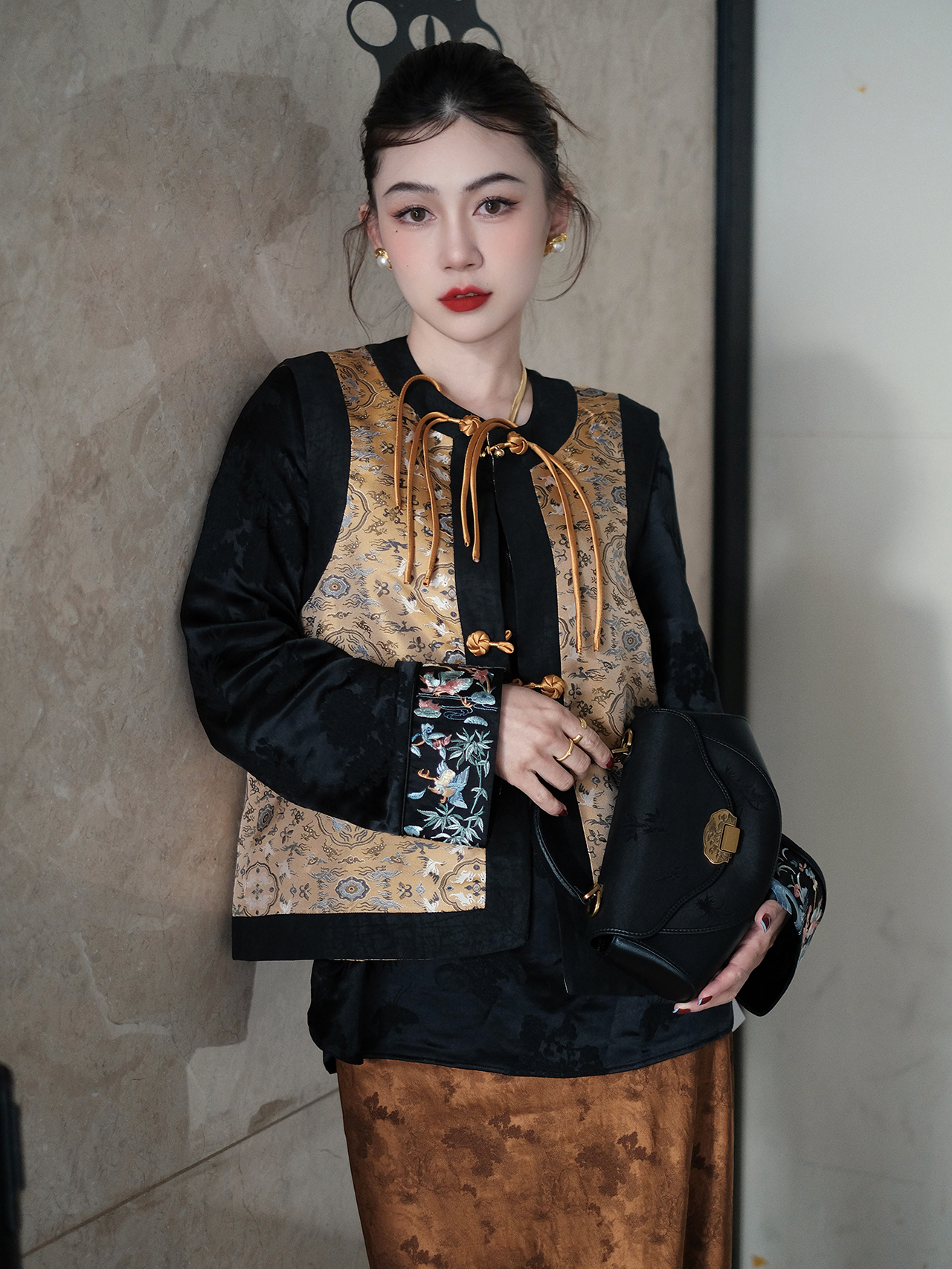 盛唐牡丹 |老工艺花蕾缎真丝马甲正反两穿