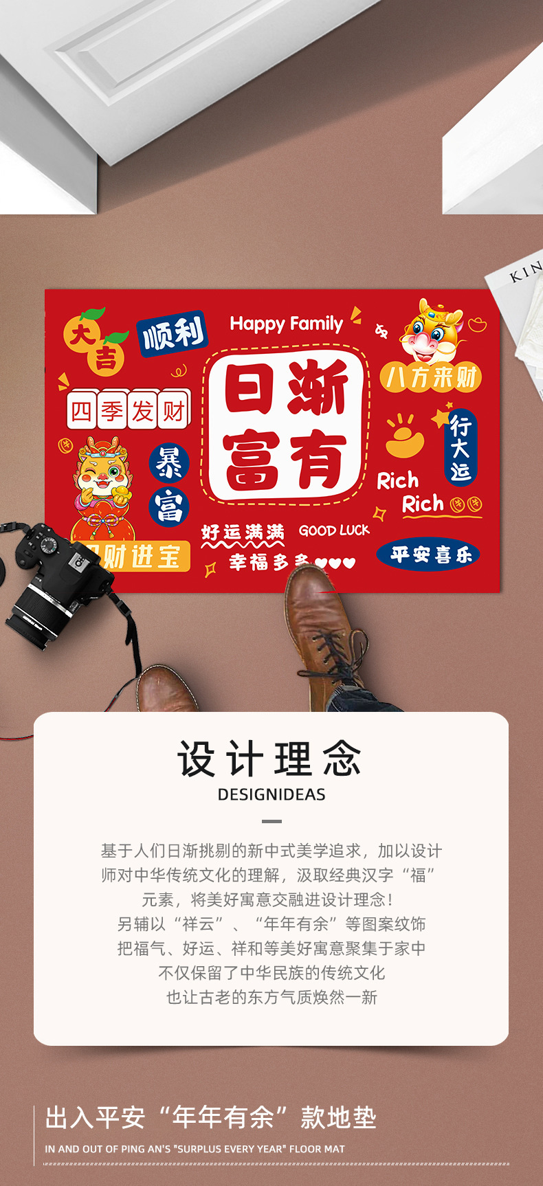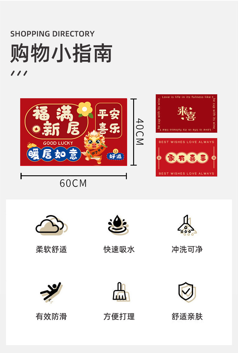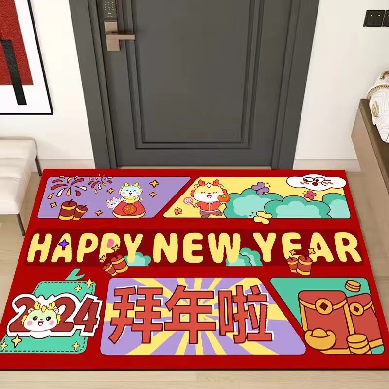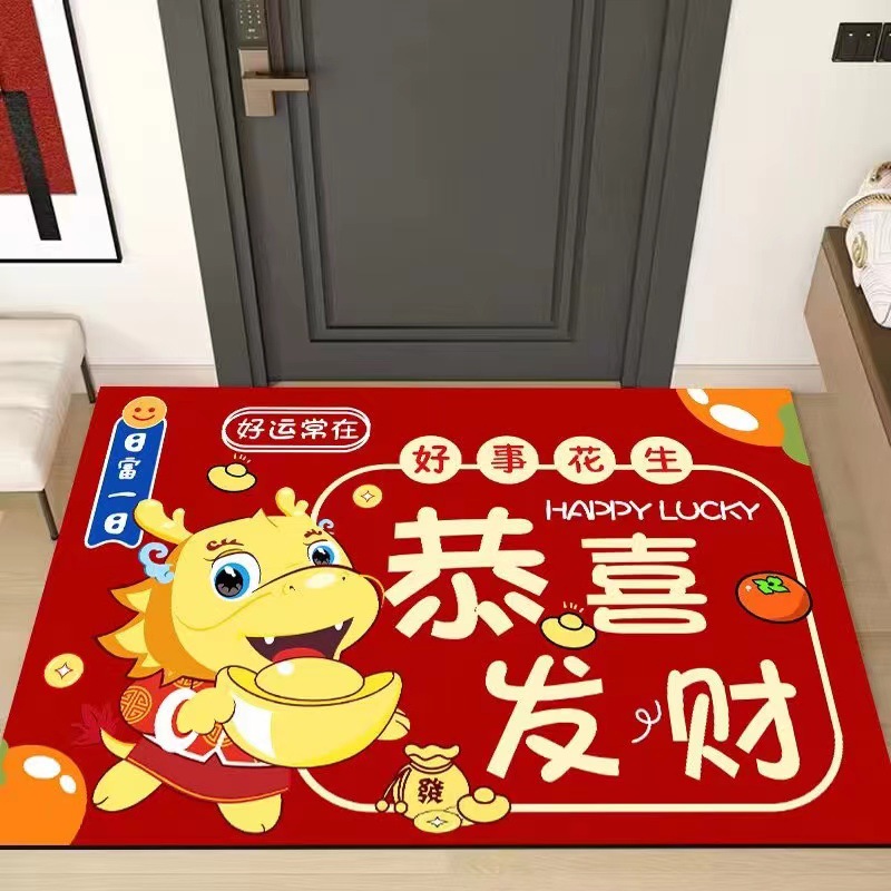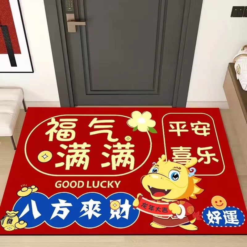 【出入平安年年有余❗️新年马运冲天地垫】防滑吸水红色喜庆新年地毯垫 家用门口进门脚垫 玄关地毯垫好礼特价新年礼盒年货礼盒