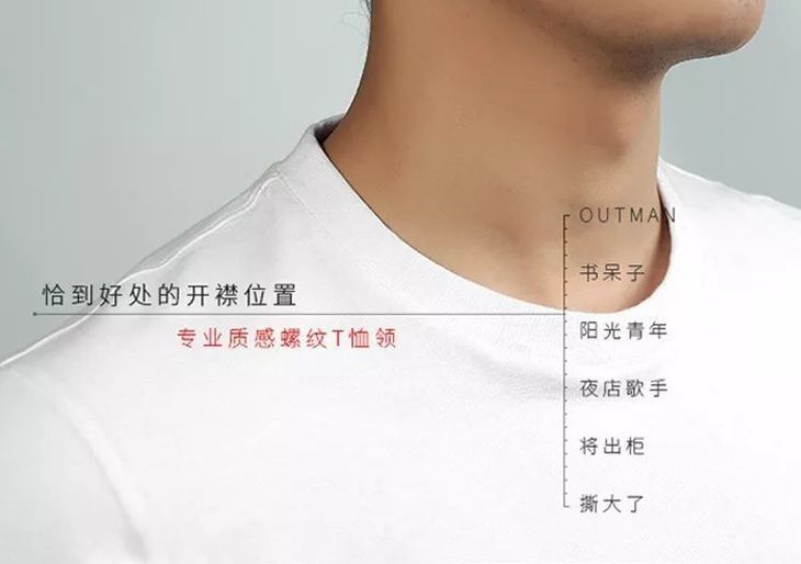 T恤领口高度的设计很讲究,穿上给人一种正向朝气感,而不是轻浮、保守感。