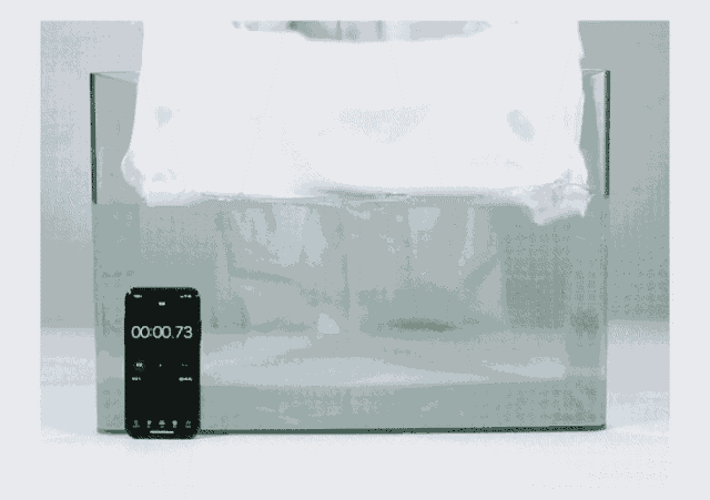 看下图,5秒就能沉水,吸水能力特别厉害。