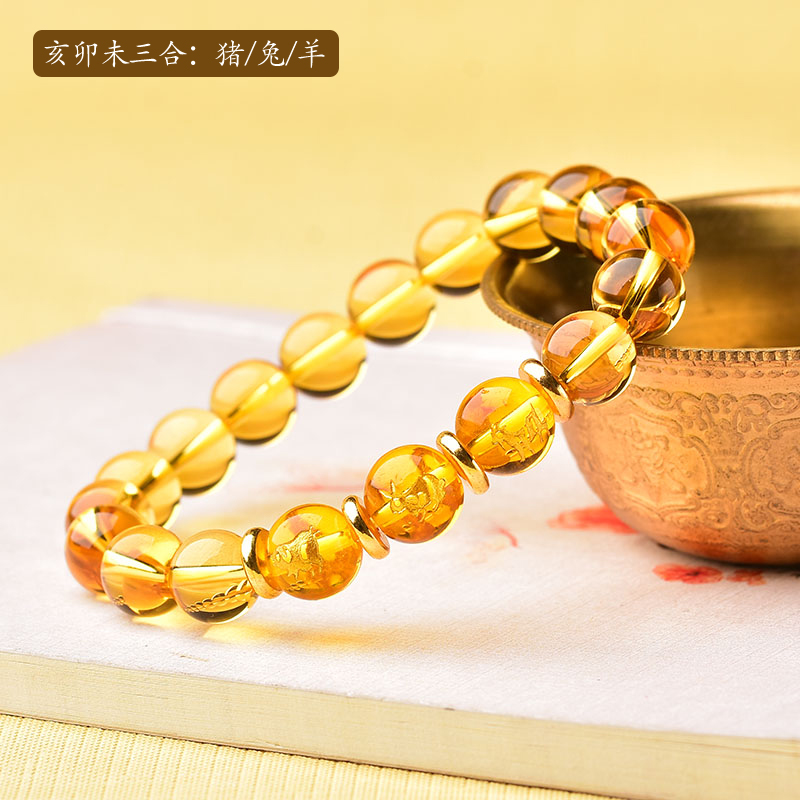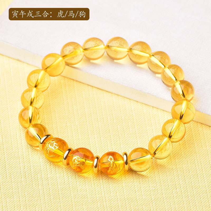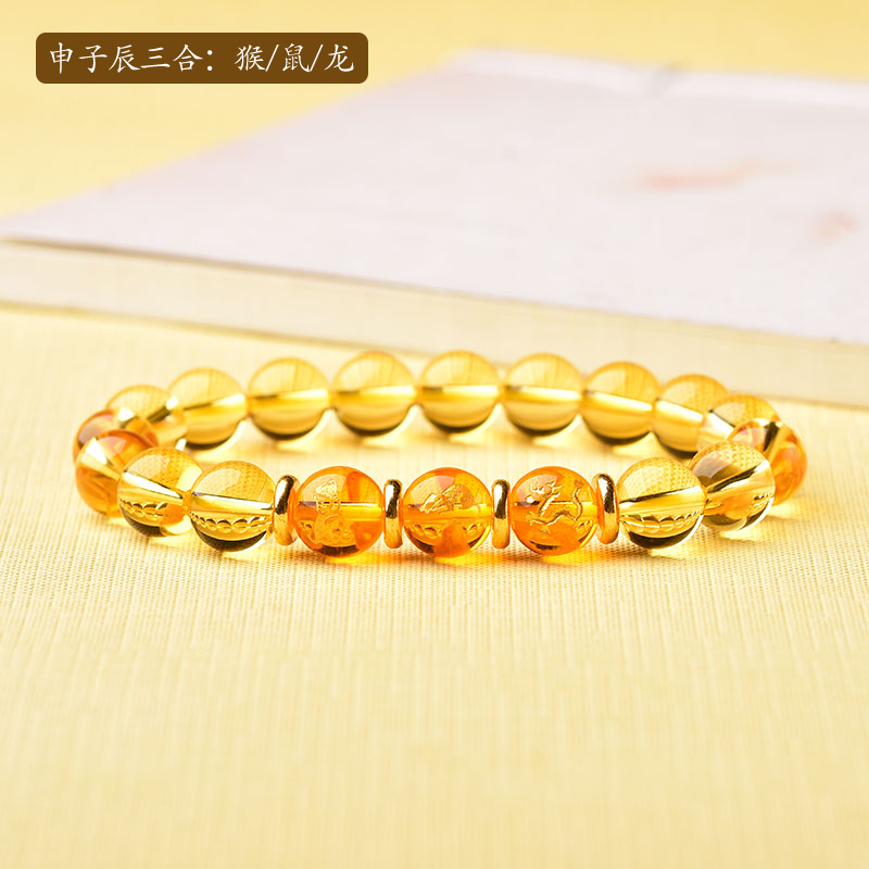 黄水晶生肖属鼠牛虎兔龙蛇马羊猴鸡狗猪三合六合手链手绳