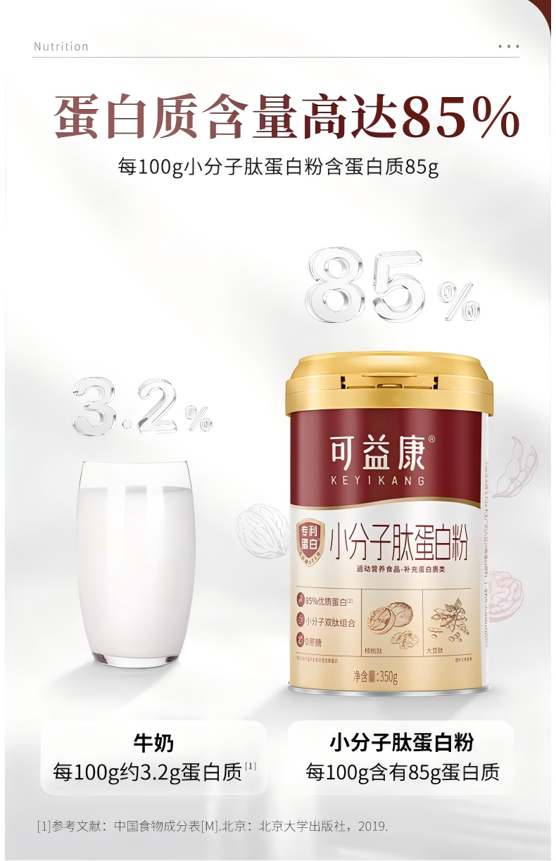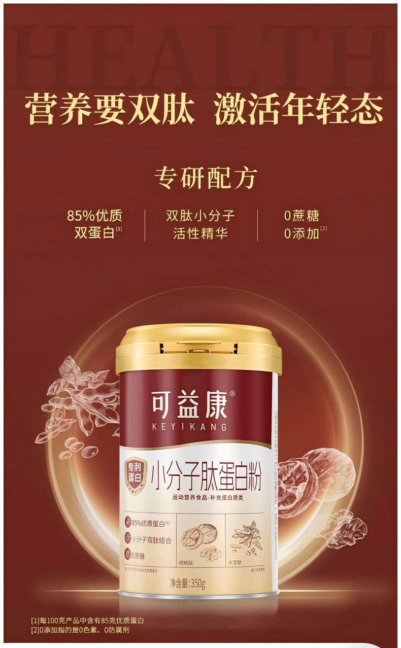 可益康小分子肽蛋白粉特膳 85%双蛋白 大豆核桃双肽活性精华 无蔗糖添加 350g/罐
