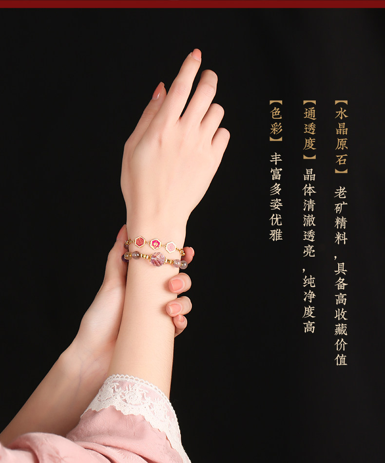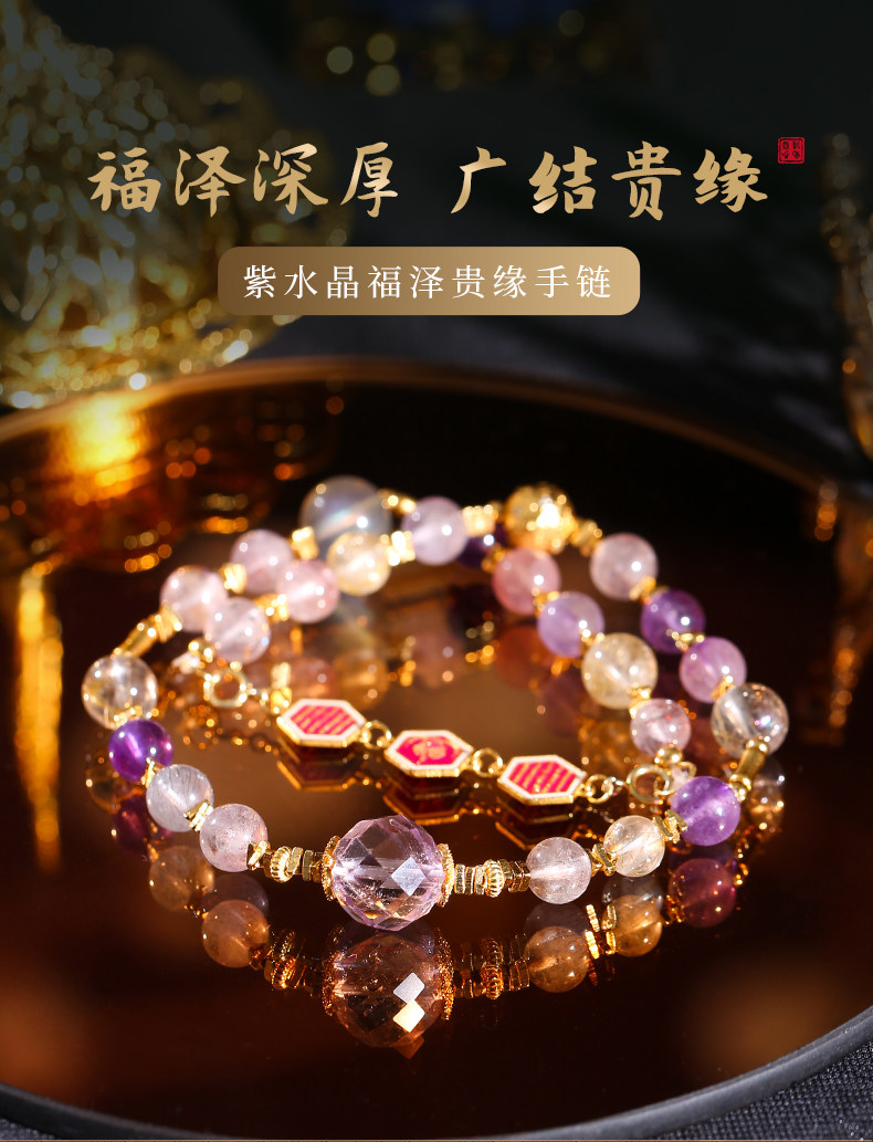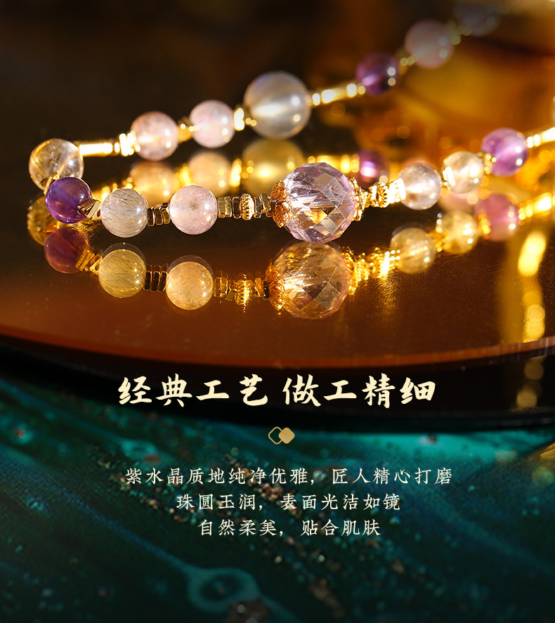 【祈愿吉品】紫水晶福泽贵缘手链女金发晶双圈