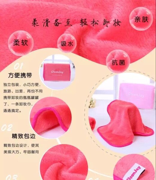 使用步骤:1 把毛巾放到水里完全浸湿 2 擦洗你脸上的彩妆,无论什么难卸的妆都可以 3 看看镜子里的你,完美! 店主温馨提示:卸妆以后不要忘记把洗干净晾干哦!此款毛巾两面可用。一面用来卸妆,质地短而密实,用来轻松卸掉你的彩妆!另一面的毛长而柔软,用来擦干洗净的脸蛋儿!再次声明:此款毛巾无需任何卸妆产品,只需要水就可以了哦