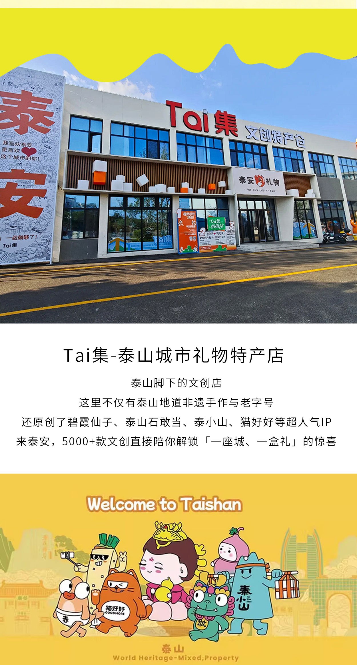 - Tai集城市礼物专家,专注泰山文创开发与运营,线上+线下品质服务,打造多维度泰山文创便捷选购空间