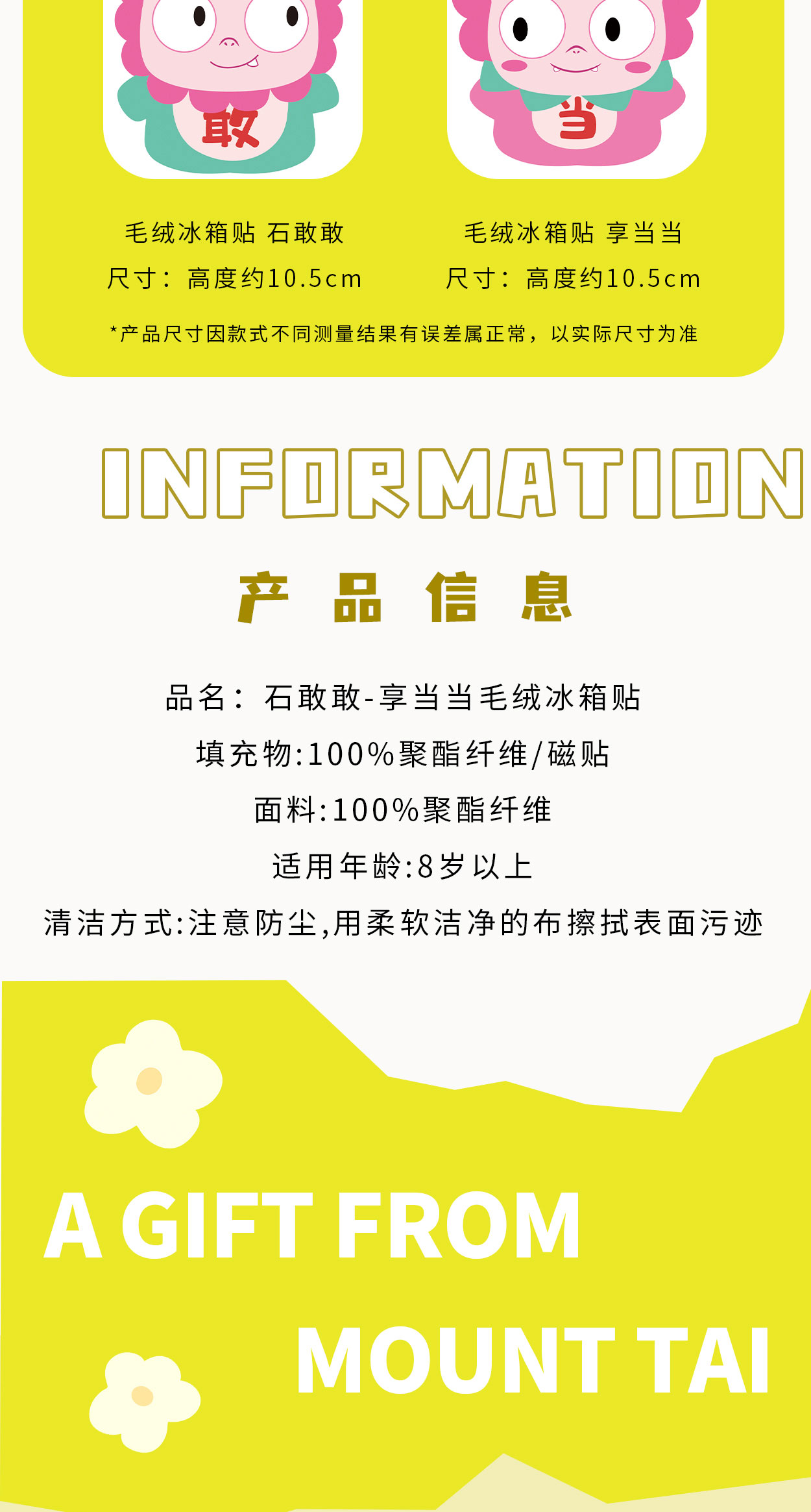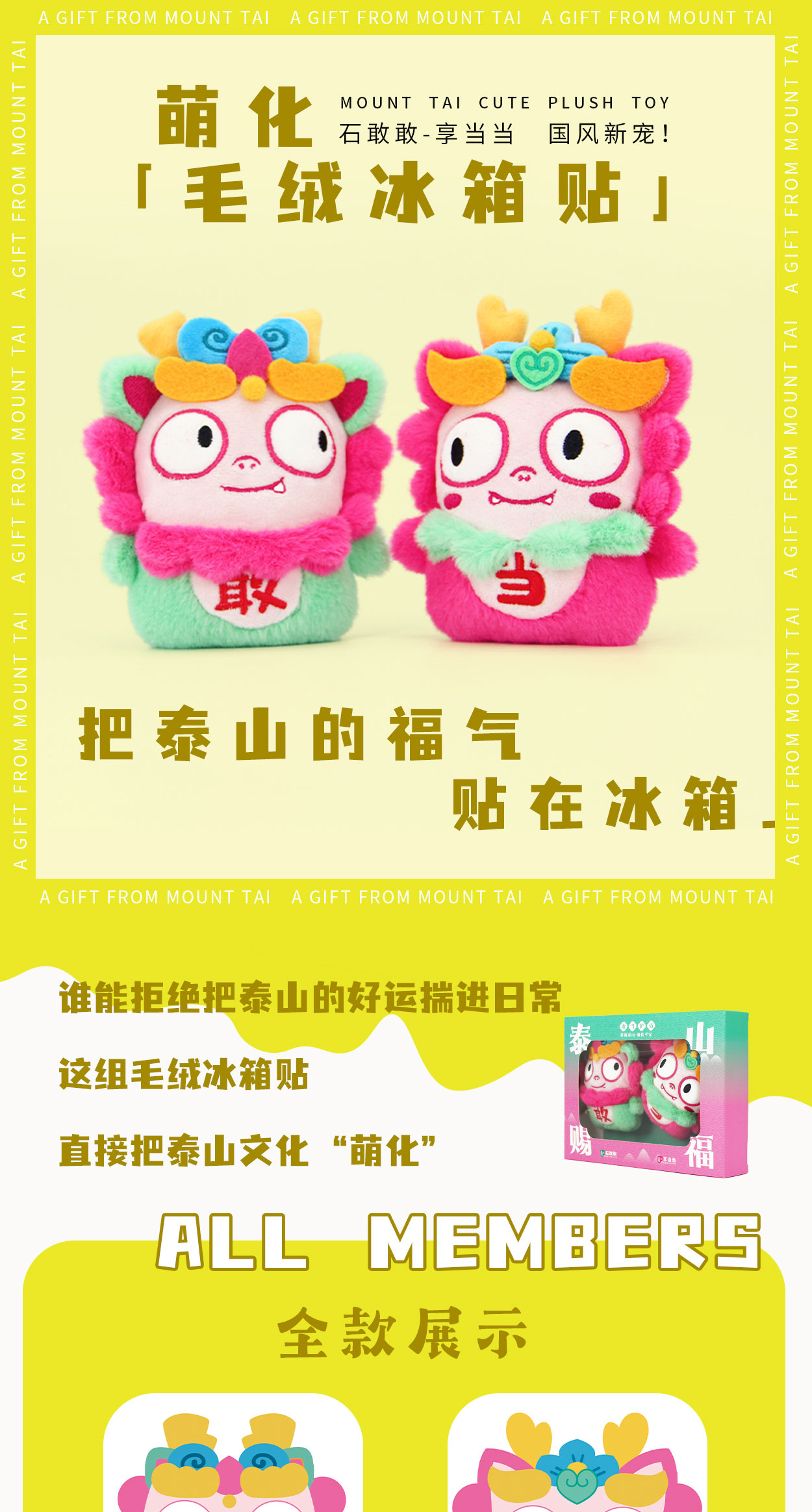 tai集石敢当冰箱贴礼盒可爱创意毛绒泰山文创好礼