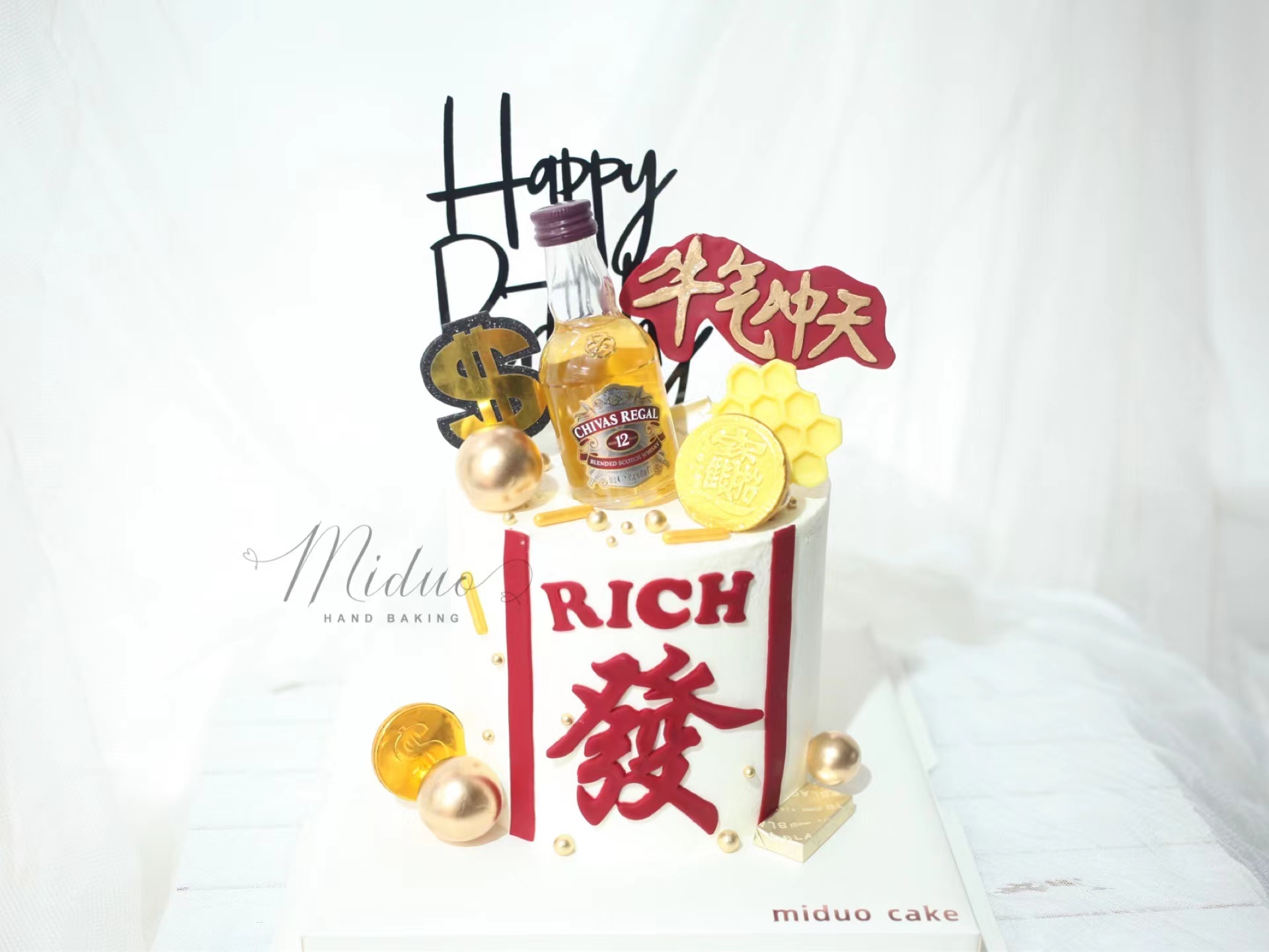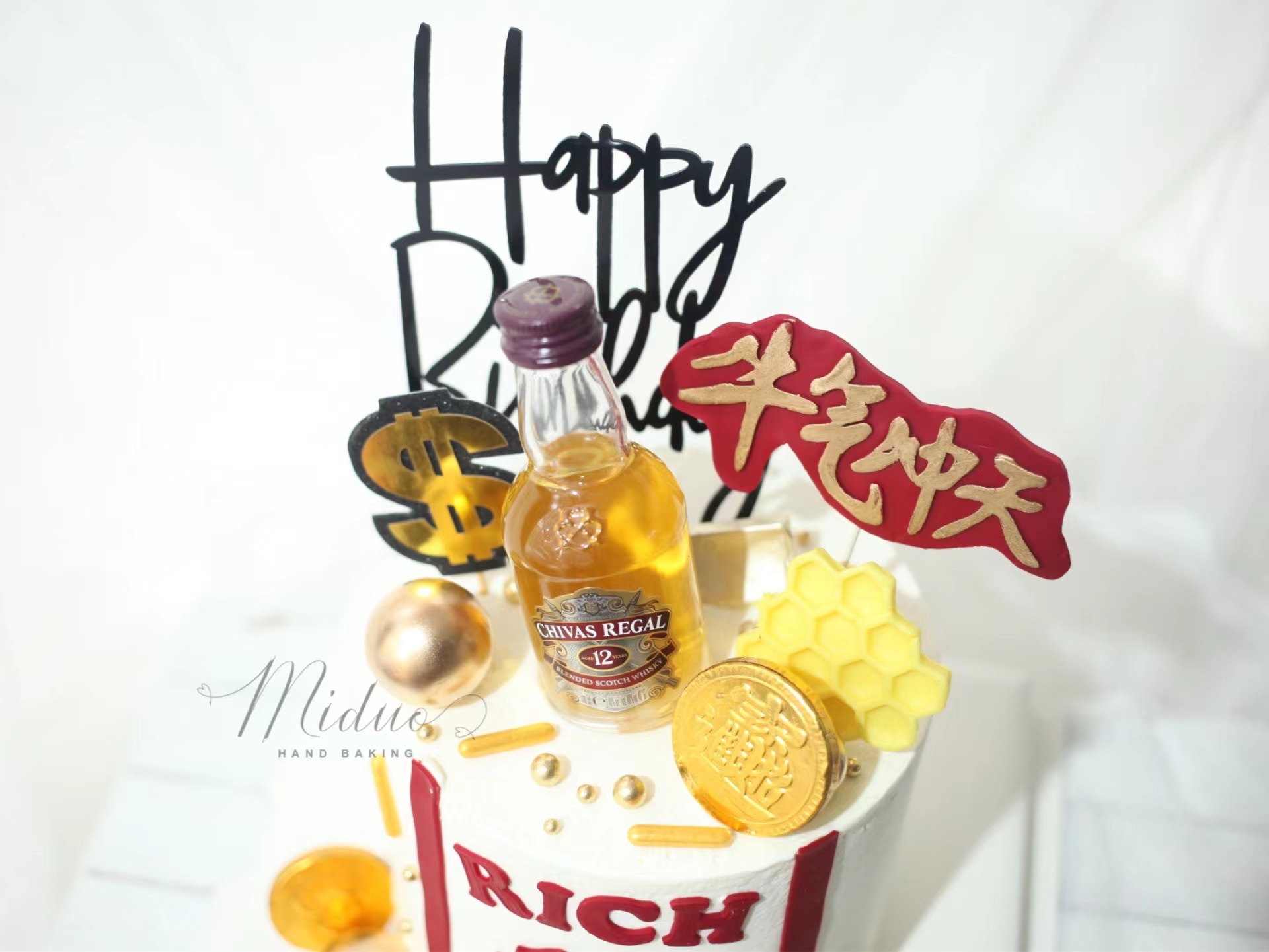 男士款 发财 牛气冲天 洋酒 金币 蛋糕