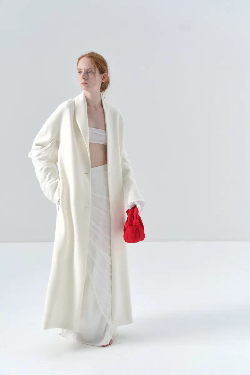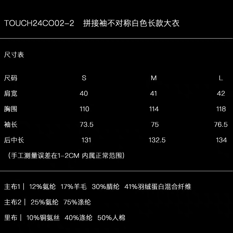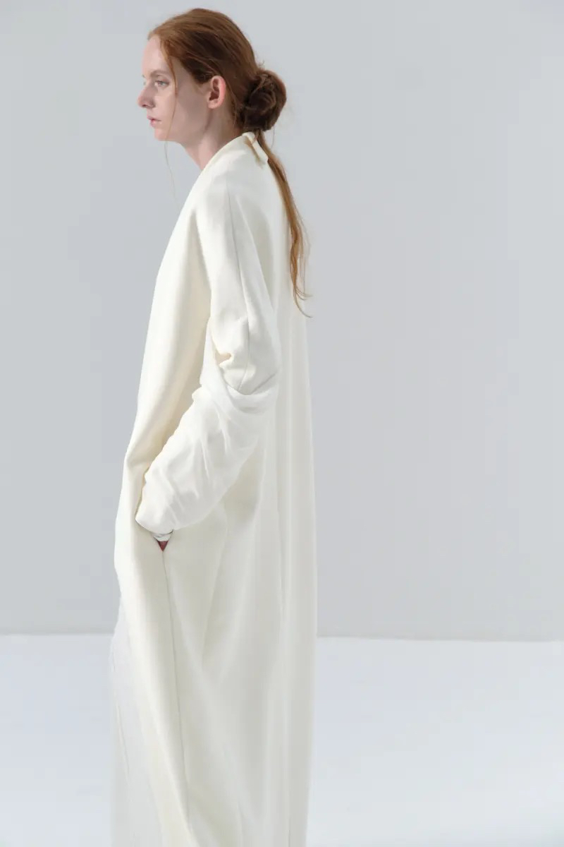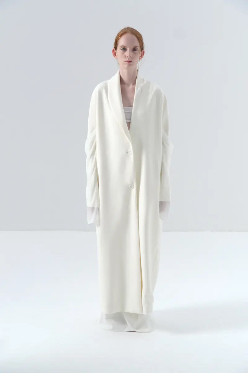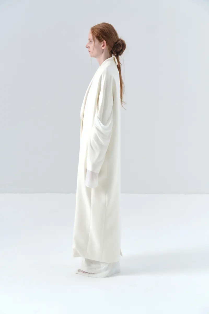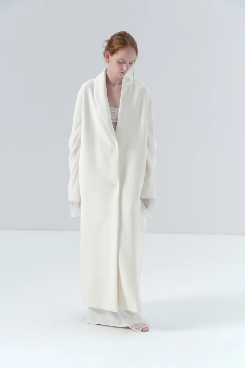 ranyepersonal|coat 拼接袖不对称白色长款 [ 白TOUCH24CO02-2 ]