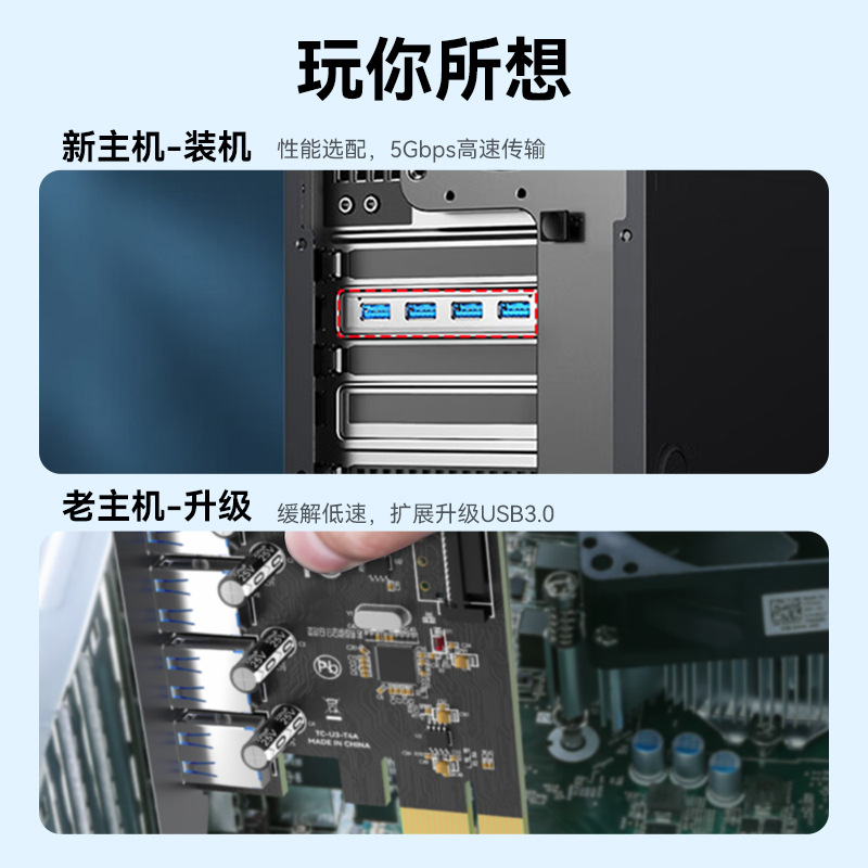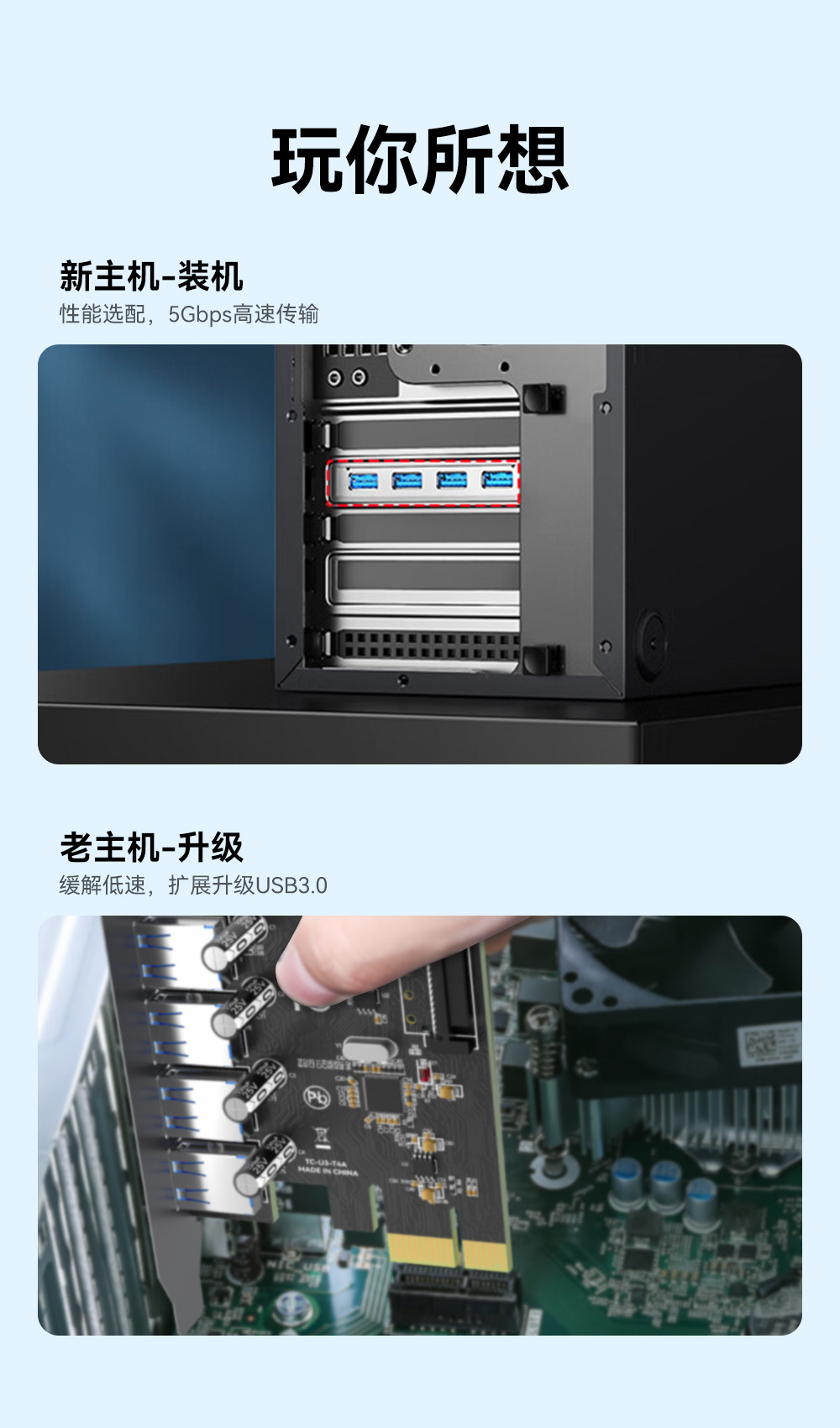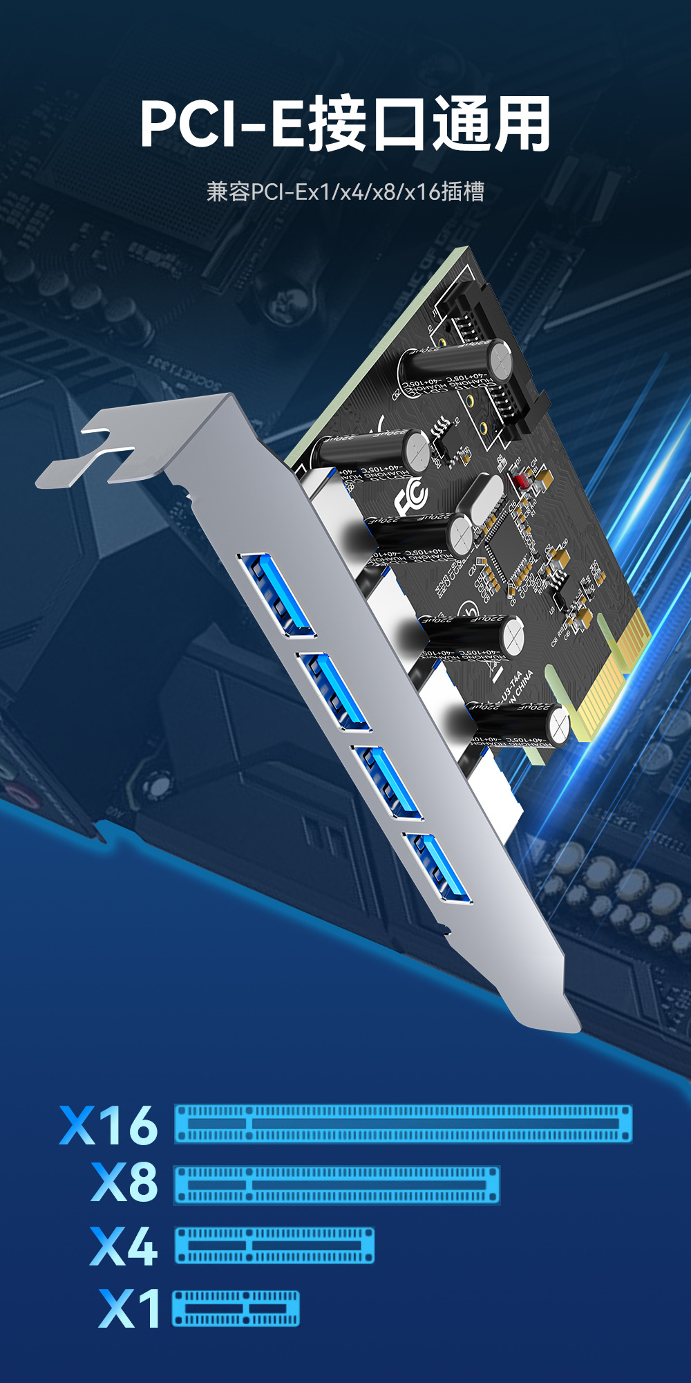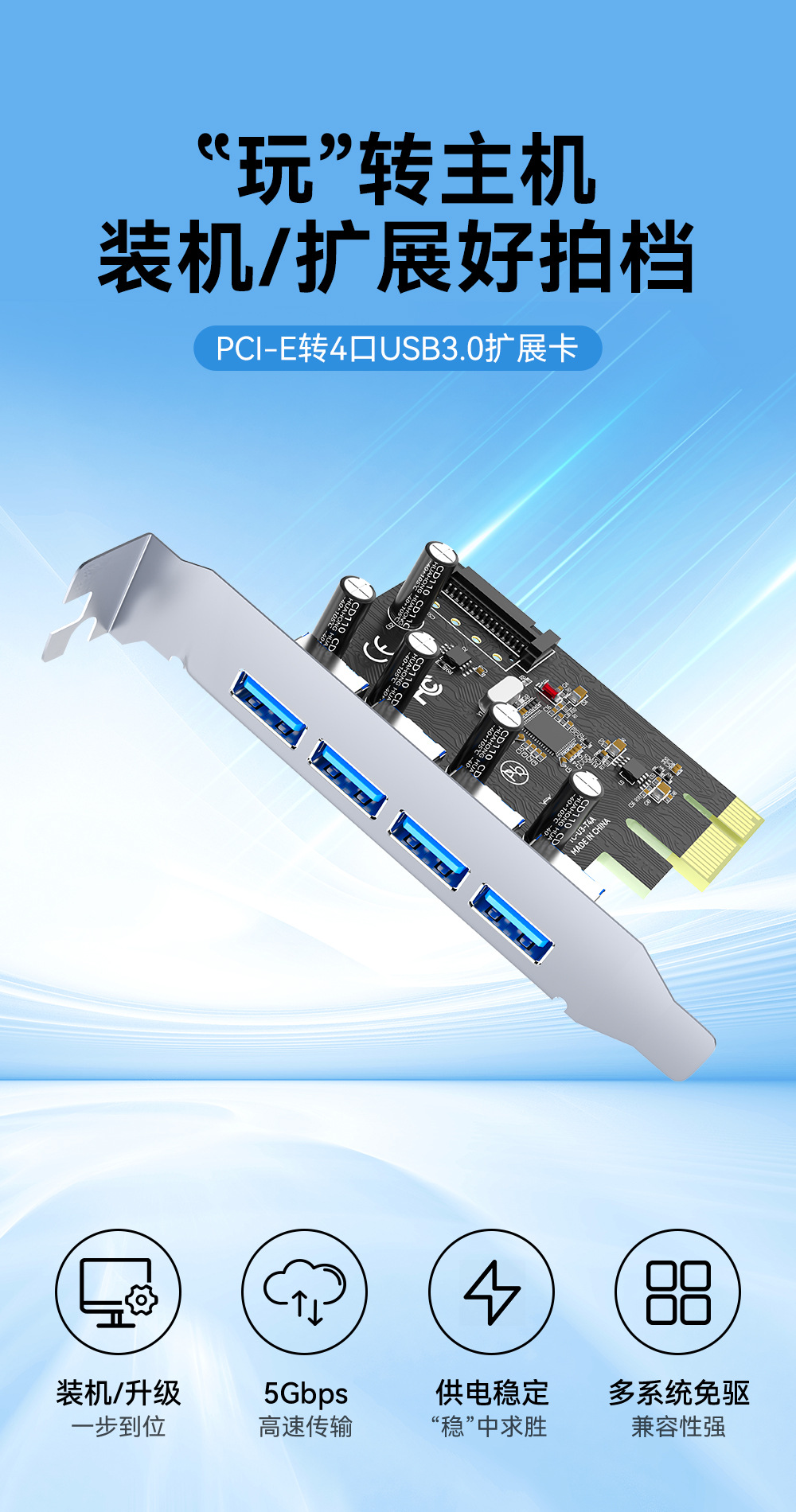 严选【千兆端口通用PCI-E转4个】3.0扩展卡电脑1转4串行端口1个