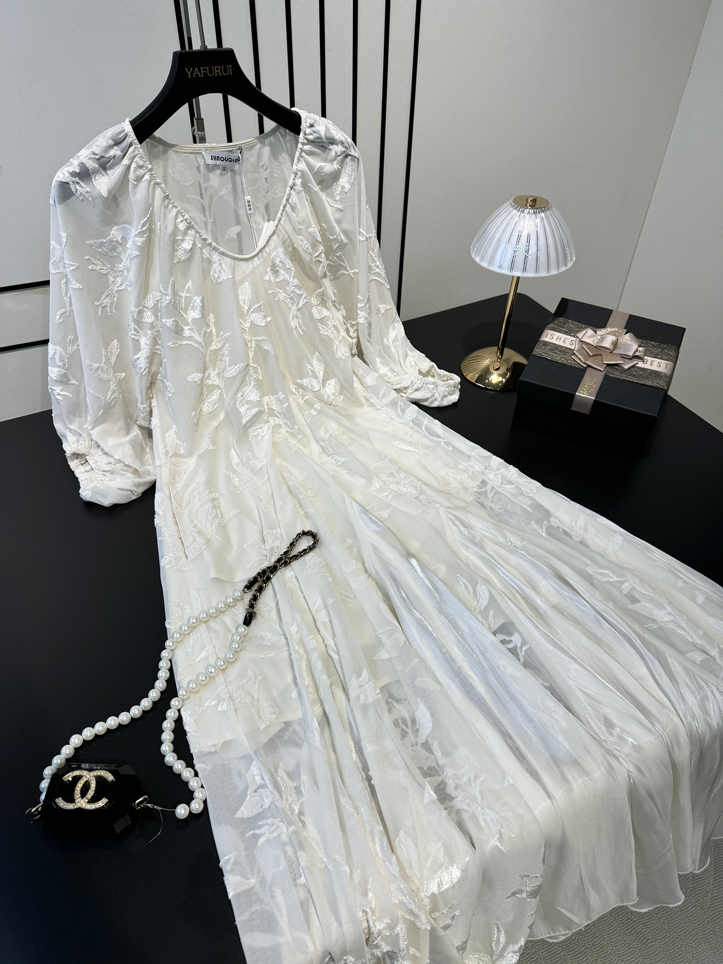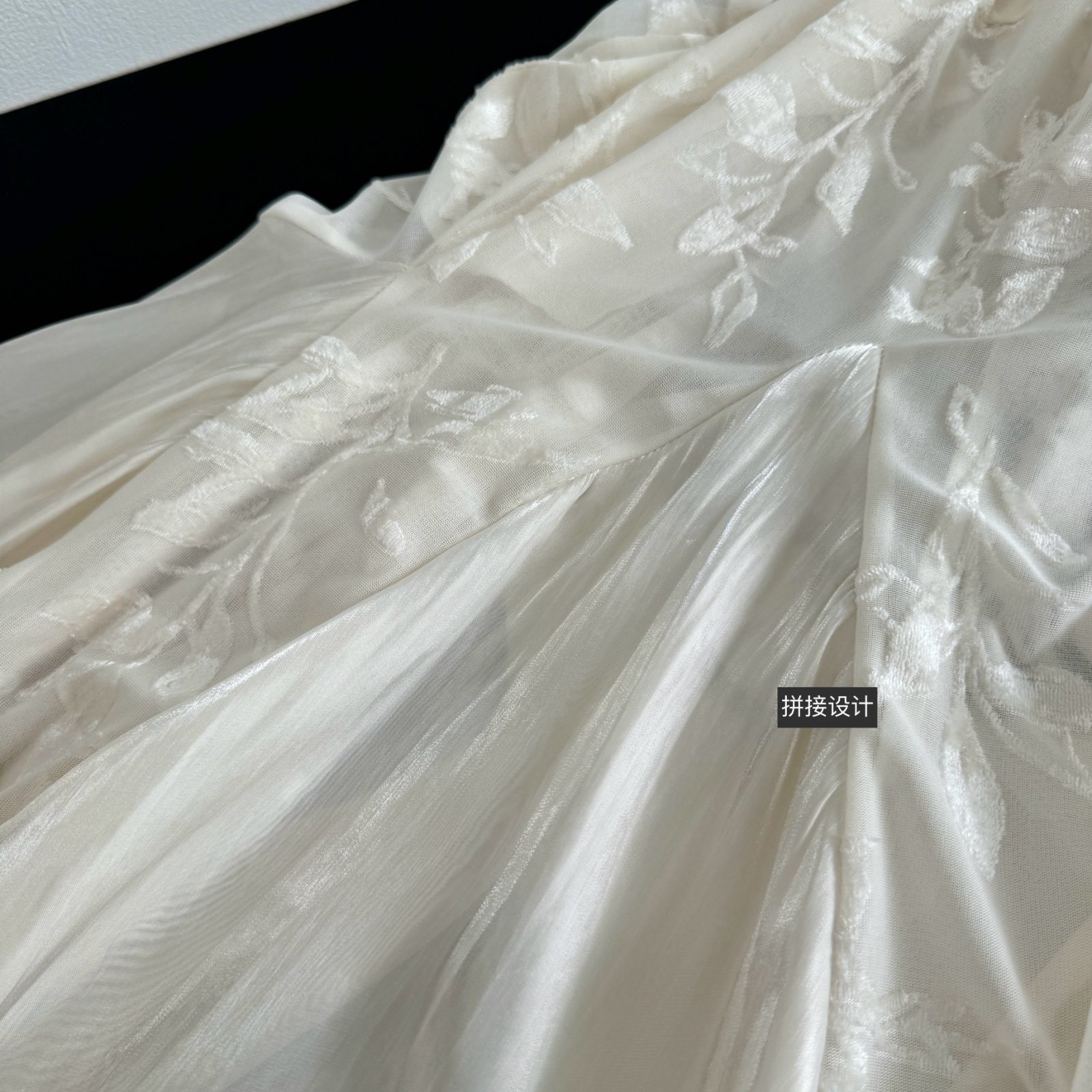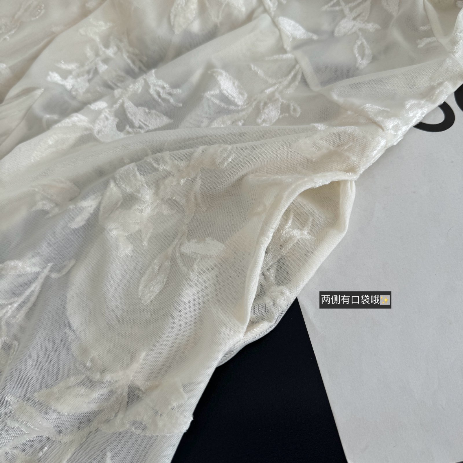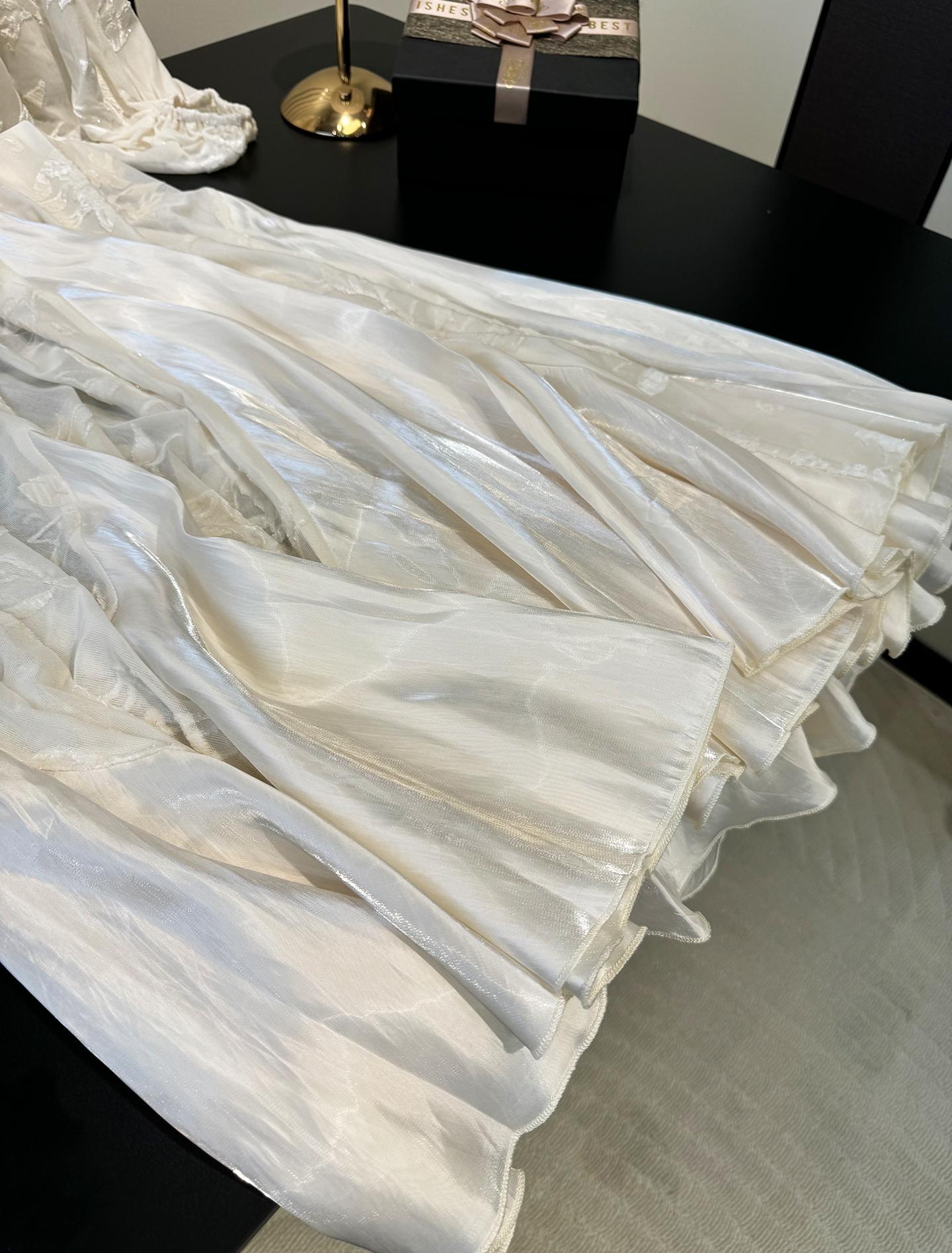 太美了~重工植绒面料拼珍珠面料,带着自然的光泽,美到散发光芒~送一条同色系吊带,无需担心走光问题。