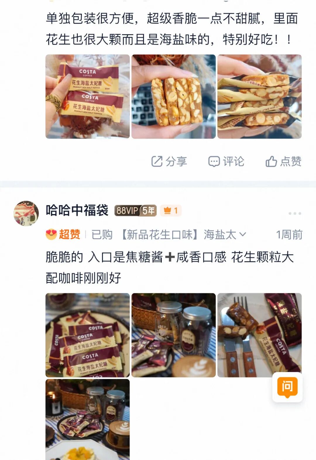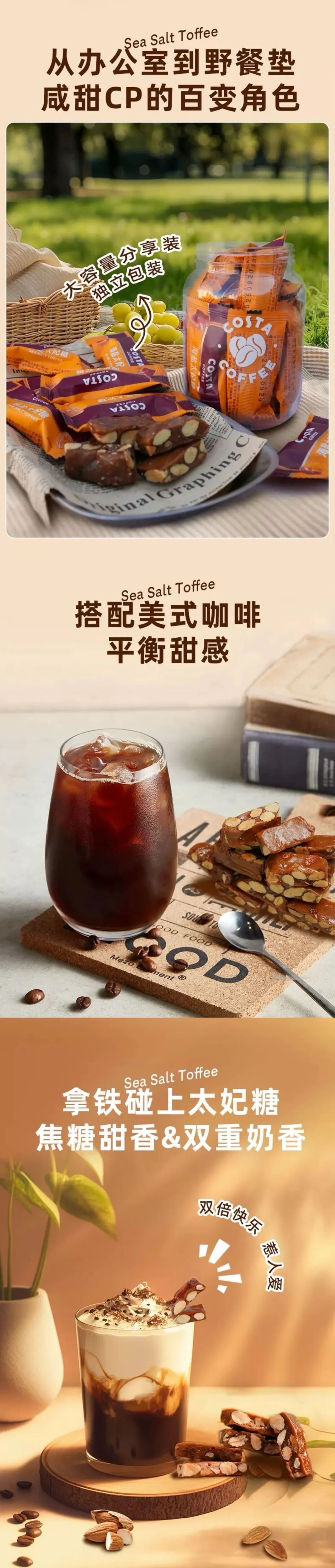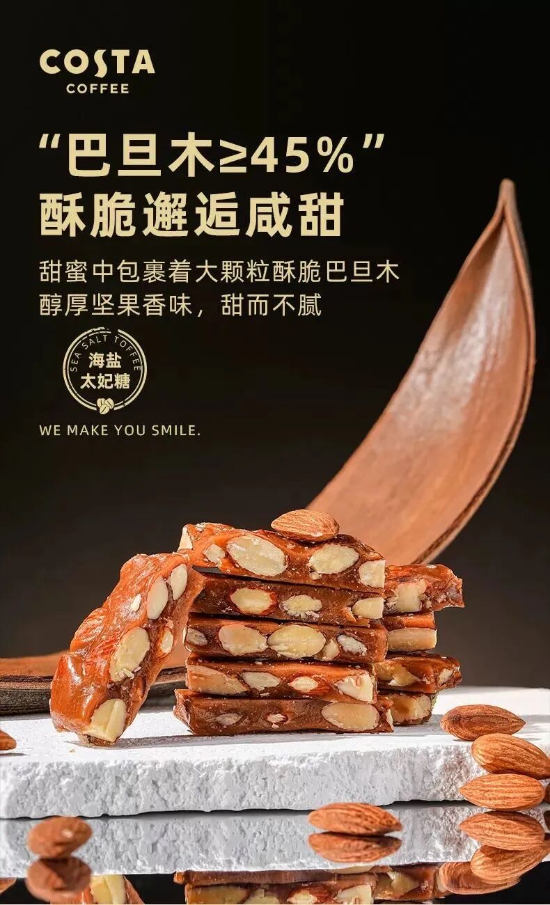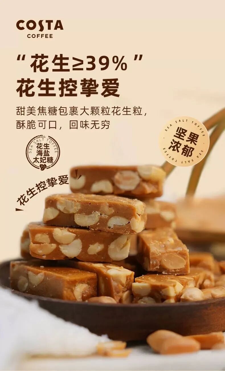 Costa太妃糖完美解决“深夜小馋瘾”!每颗糖独立包装,吃一颗就停,坚果颗粒增加饱腹感,不担心过量;