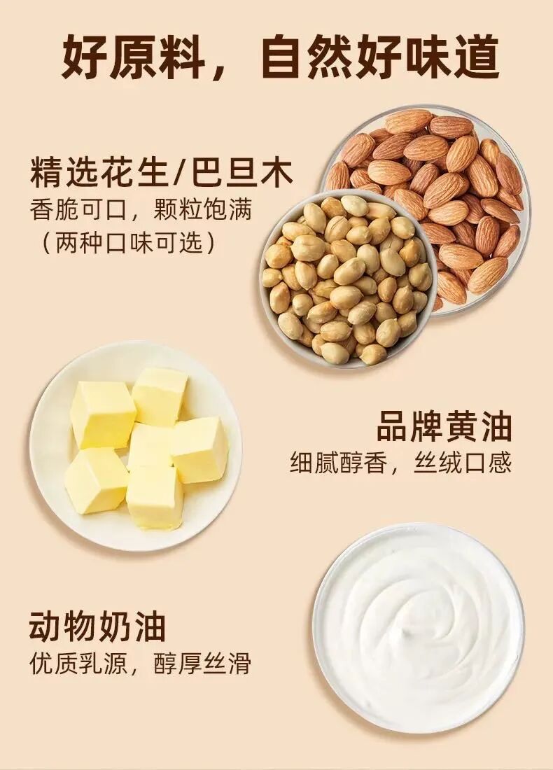 两种坚果口味可选,不管对方爱巴旦木还是花生,都能满足。