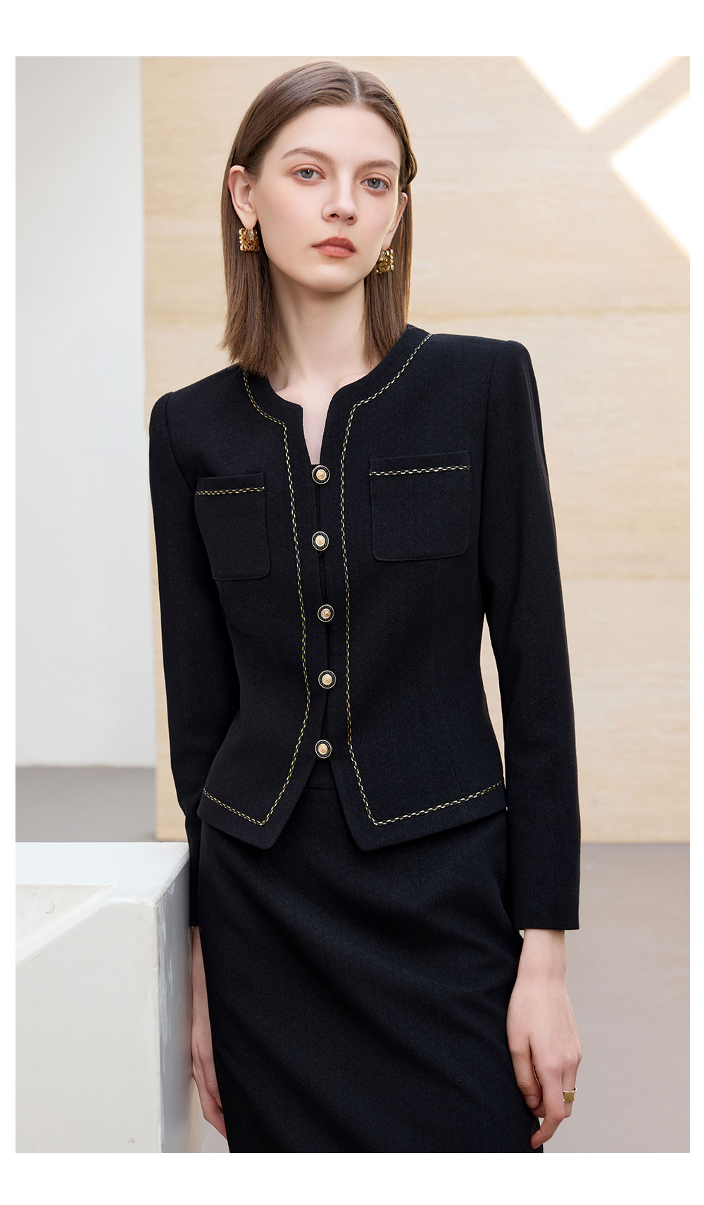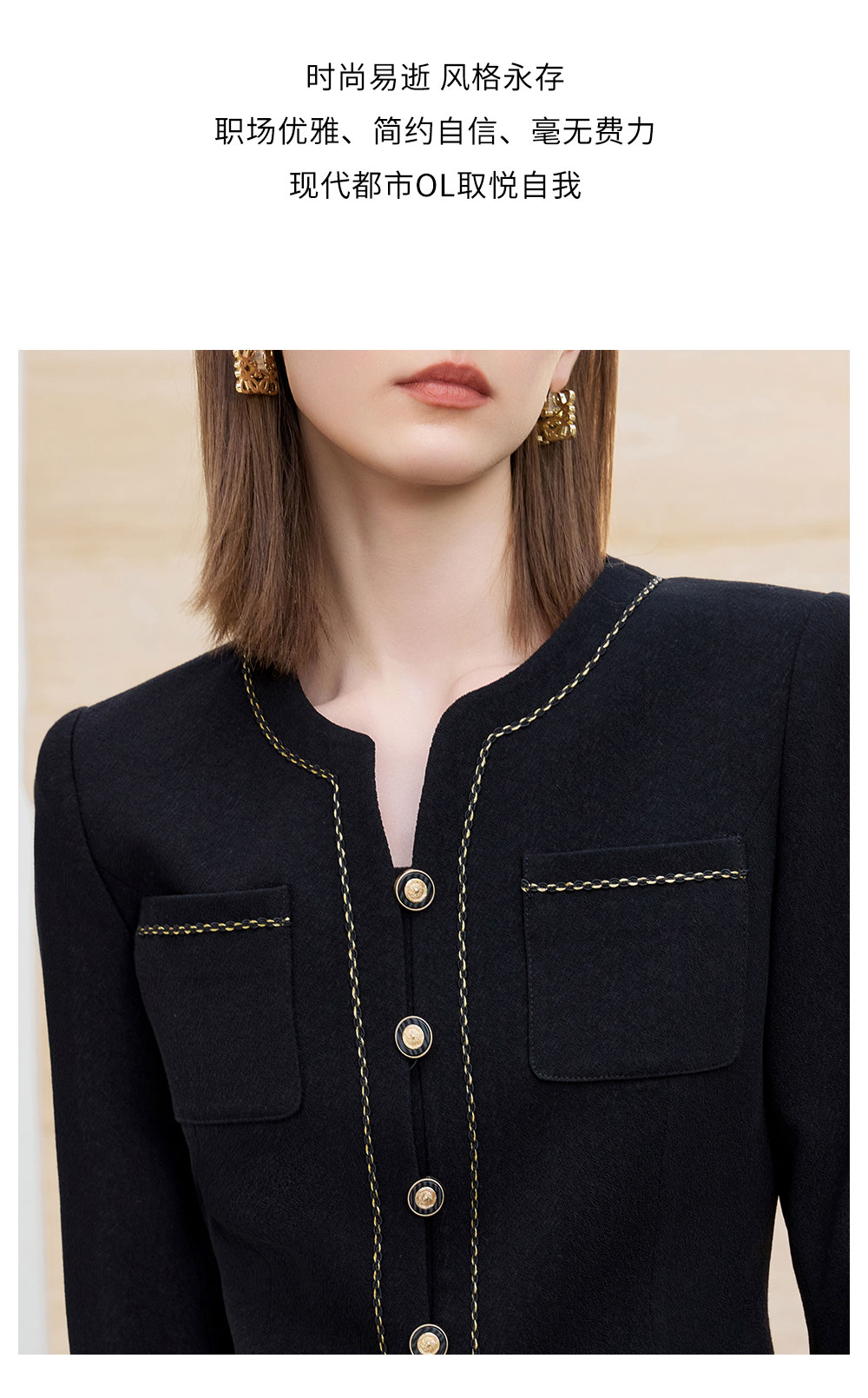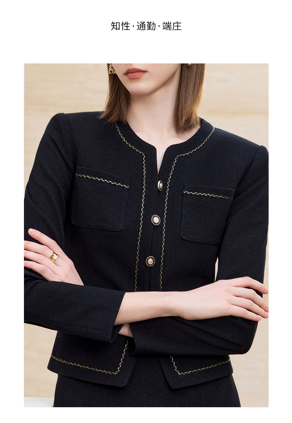 AD职场通勤职业装女秋季2025新款小香风黑色套装气质V领长袖外套