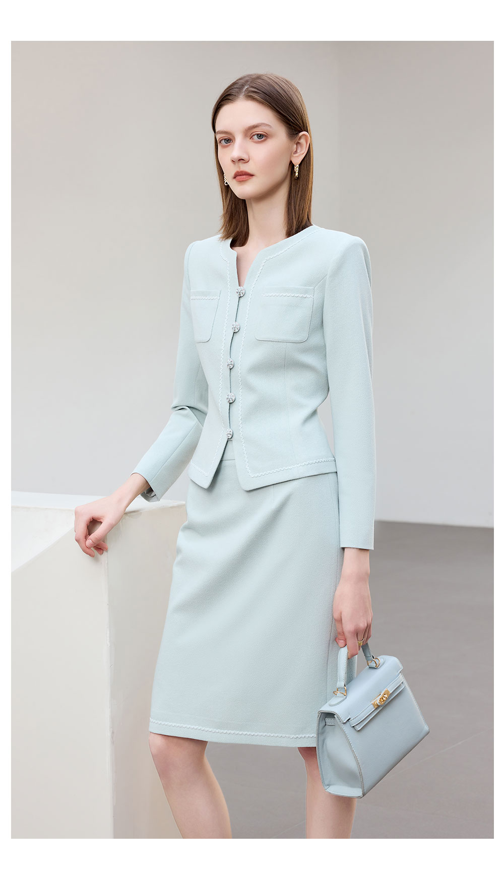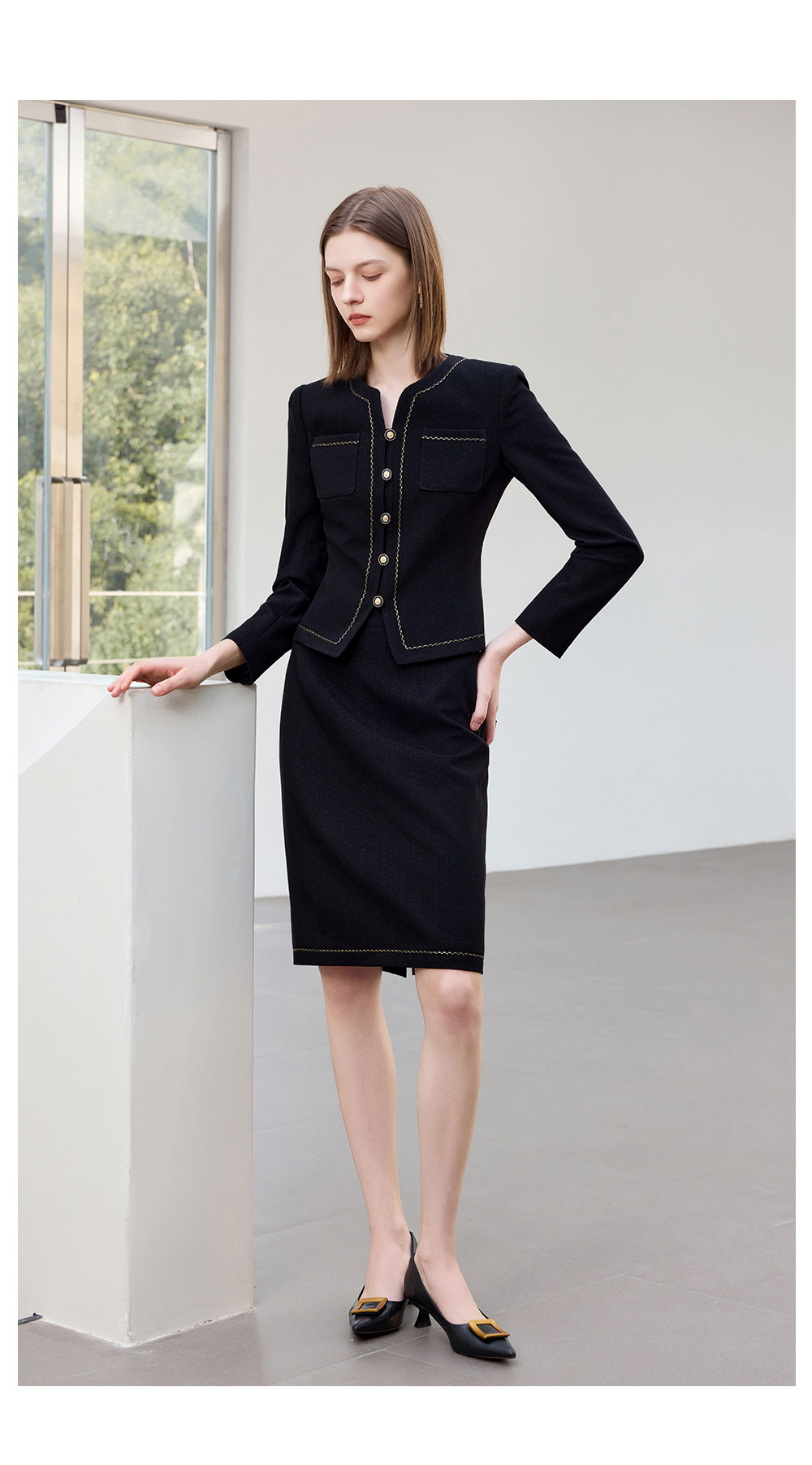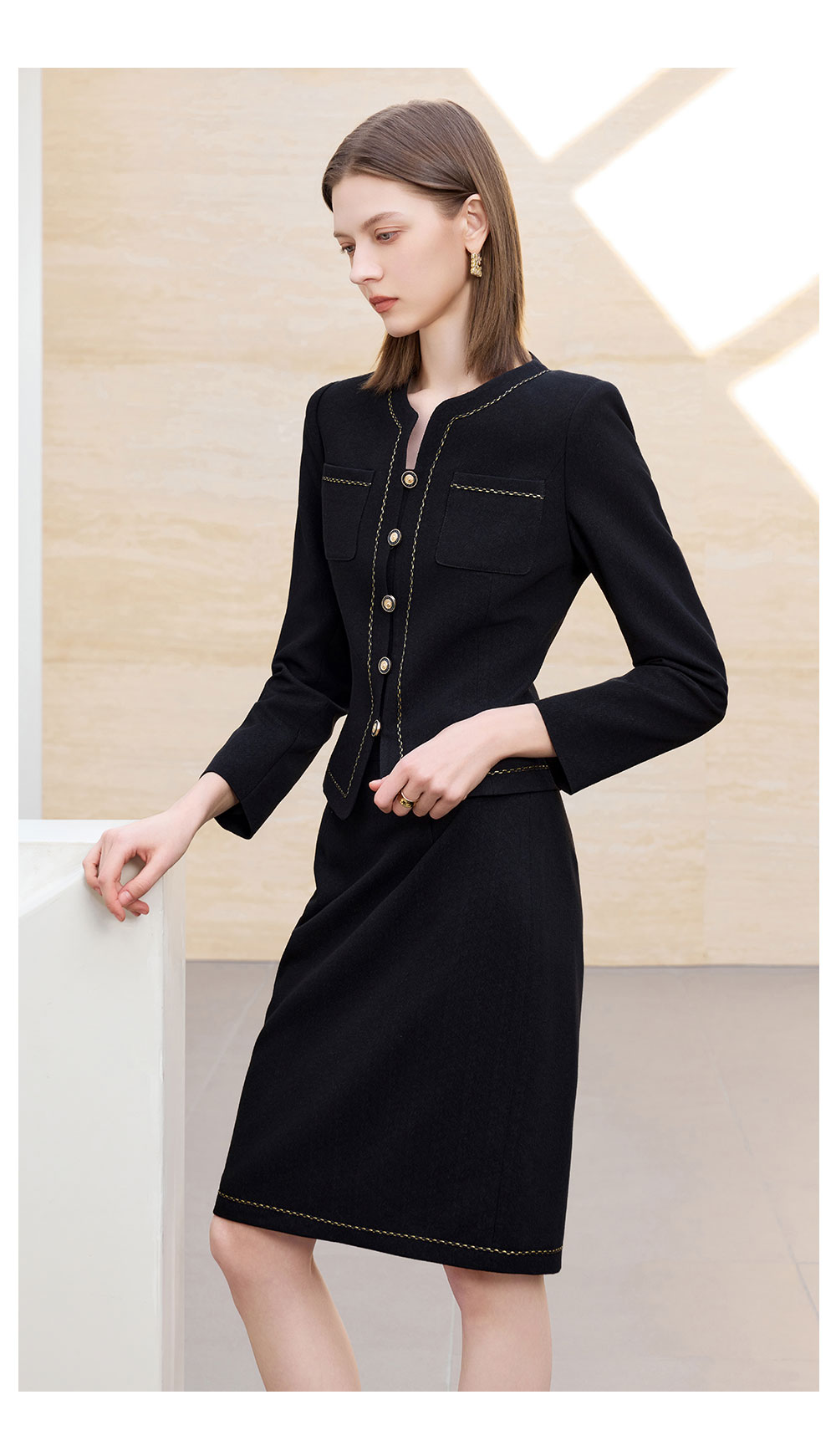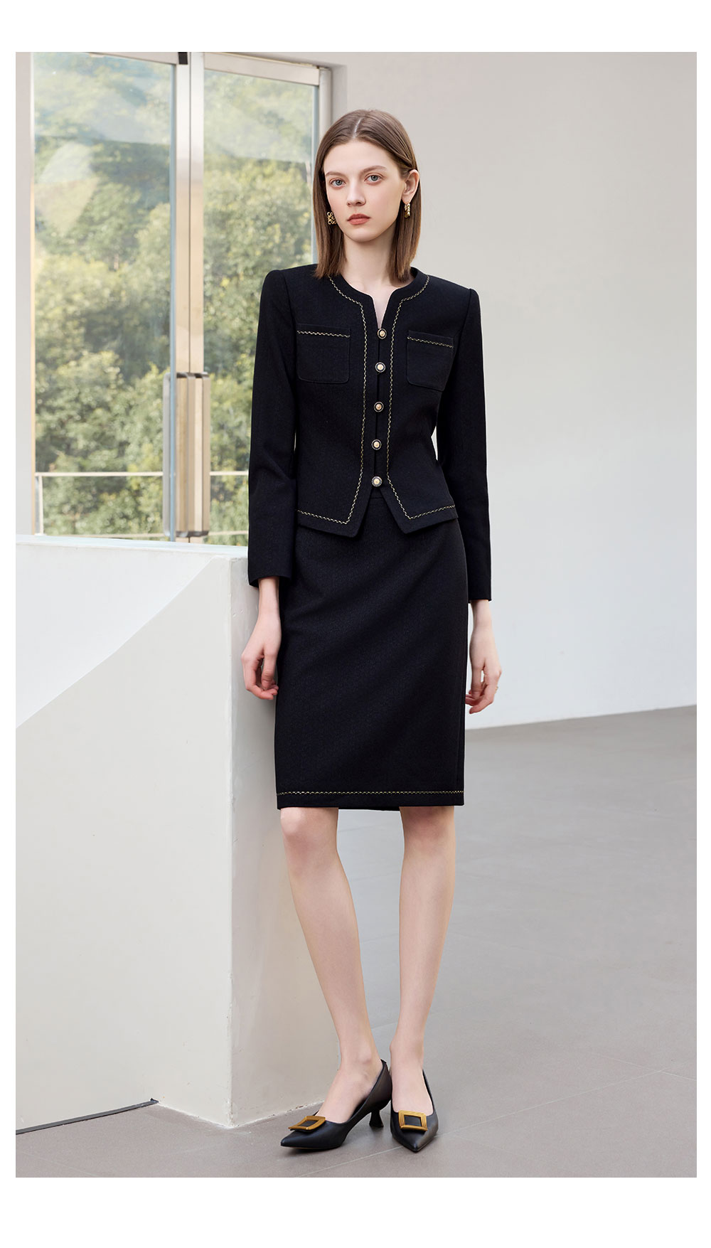 AD职场通勤职业装女秋季2025新款小香风黑色套装气质V领长袖外套