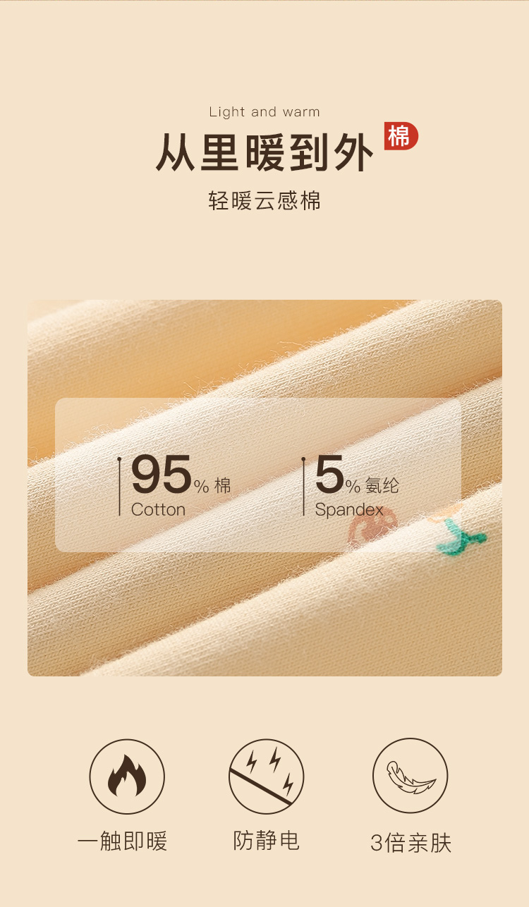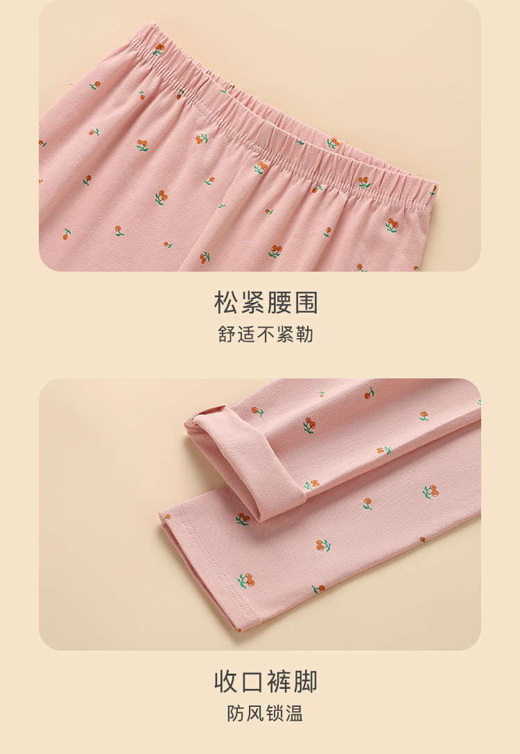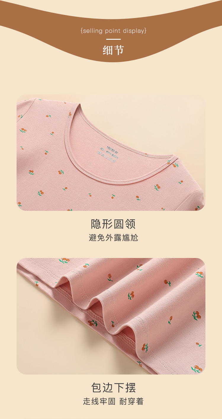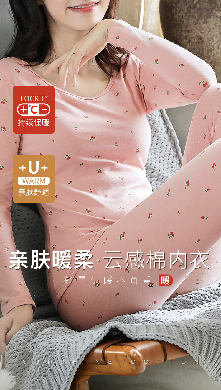 95%棉保暖套装百搭圆领打底秋衣秋裤套装时尚印花保暖樱桃粉印花圆领保暖套装