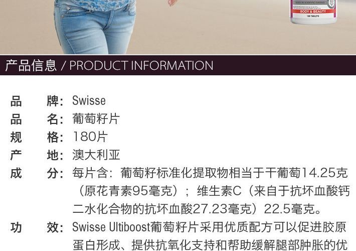 (永久下架)澳洲Swisse瑞思 葡萄籽 180粒