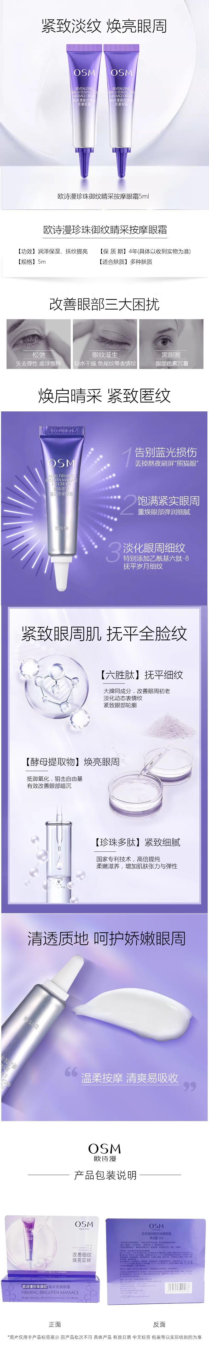 欧诗漫珍珠御纹睛采按摩眼霜5ml【30173933】