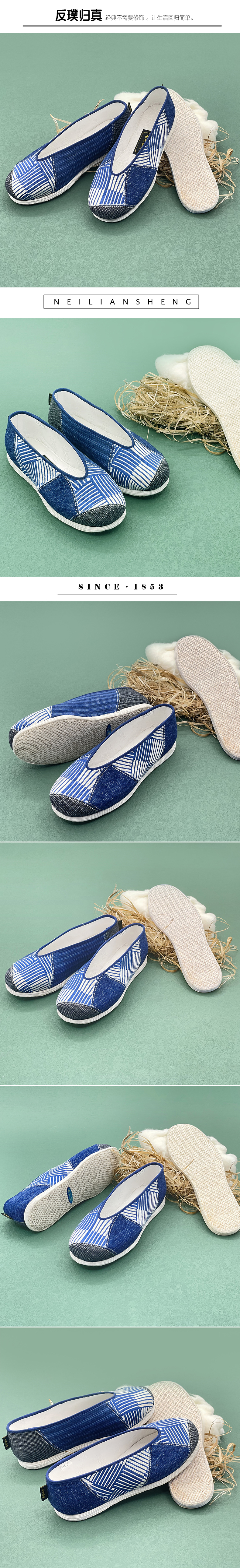 内联升男鞋手工单鞋千层底大内联升崇明土布之沙洲小元口鞋DN8532