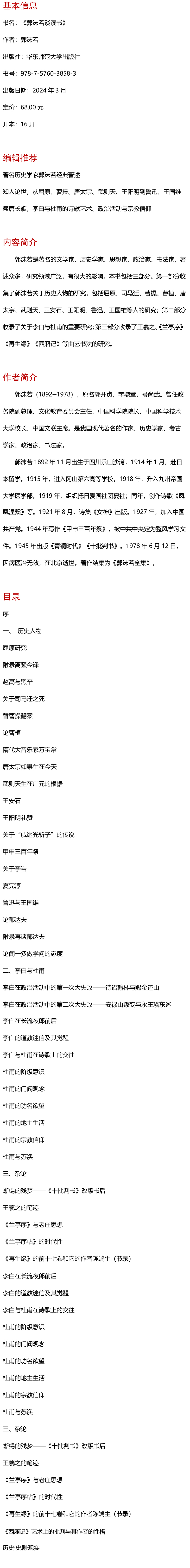 郭沫若谈读书 著名历史学家郭沫若经典著述 哲学 李白 杜甫