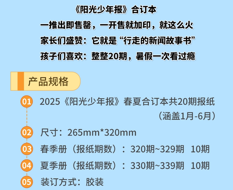 1,小学版2025春夏合订本,涵盖25年1月-6月报纸内容,即320-339期 共20期;