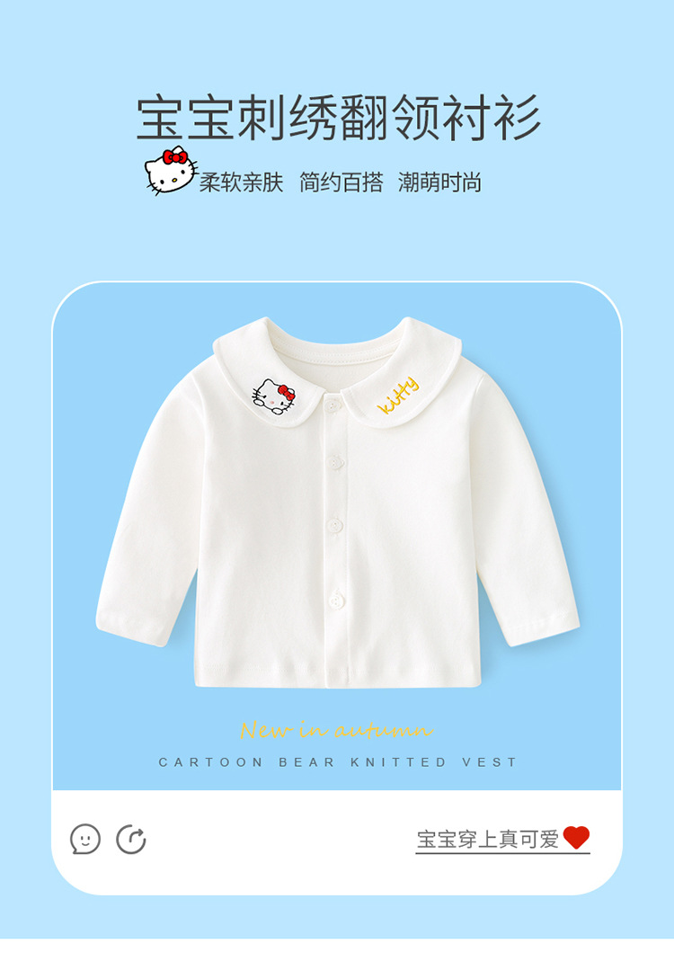 【优选面料 柔软舒适健康】A类纯棉婴儿秋冬装打底衫长袖婴儿翻领开衫男女宝宝秋季儿童衬衫上衣