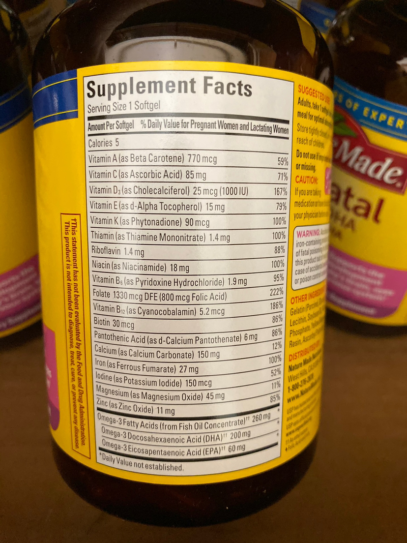 📣孕妈妈们得记备货❤美国直邮价特只要230🉐🉐 包税邮包到手❗❗美国NatureMade孕妇DHA胶备囊孕必备产品,一瓶150粒 ,每天1粒 ,其中DHA ,有于助宝宝的眼睛和大发脑育,800mcg叶酸(够妇孕补充量)和23种关键维生矿素物质【备孕期、孕期及产后哺期乳间】都需服用。