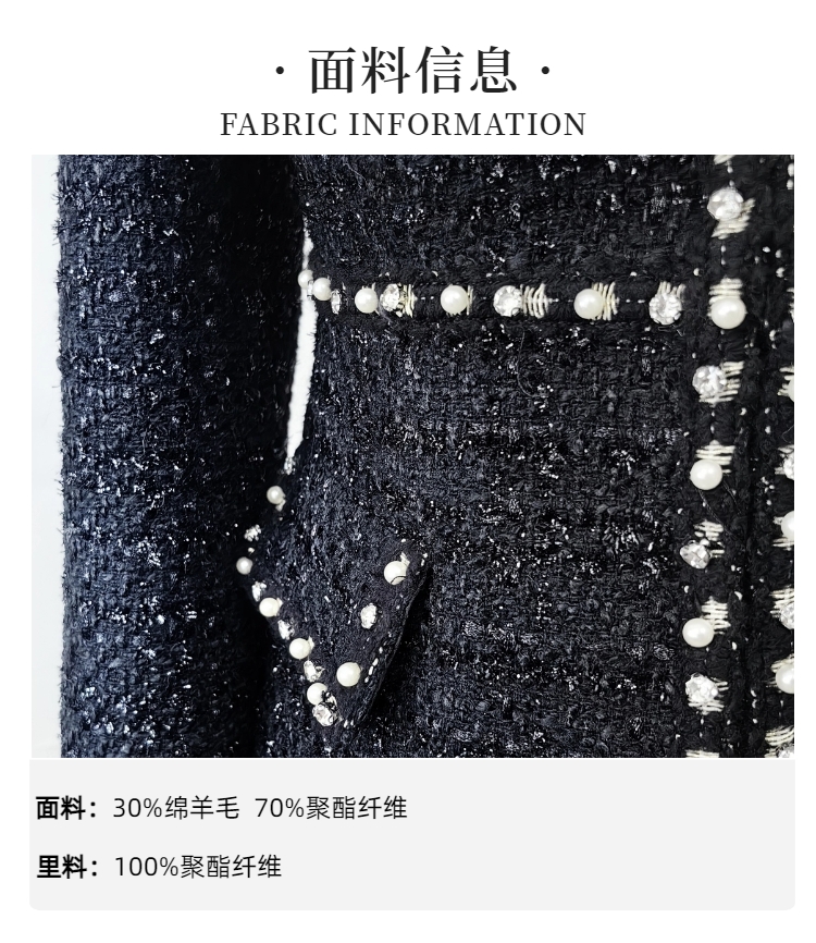 黑色珠钻镶边粗花呢修身轻奢重工小香风外套2005021时尚名媛风