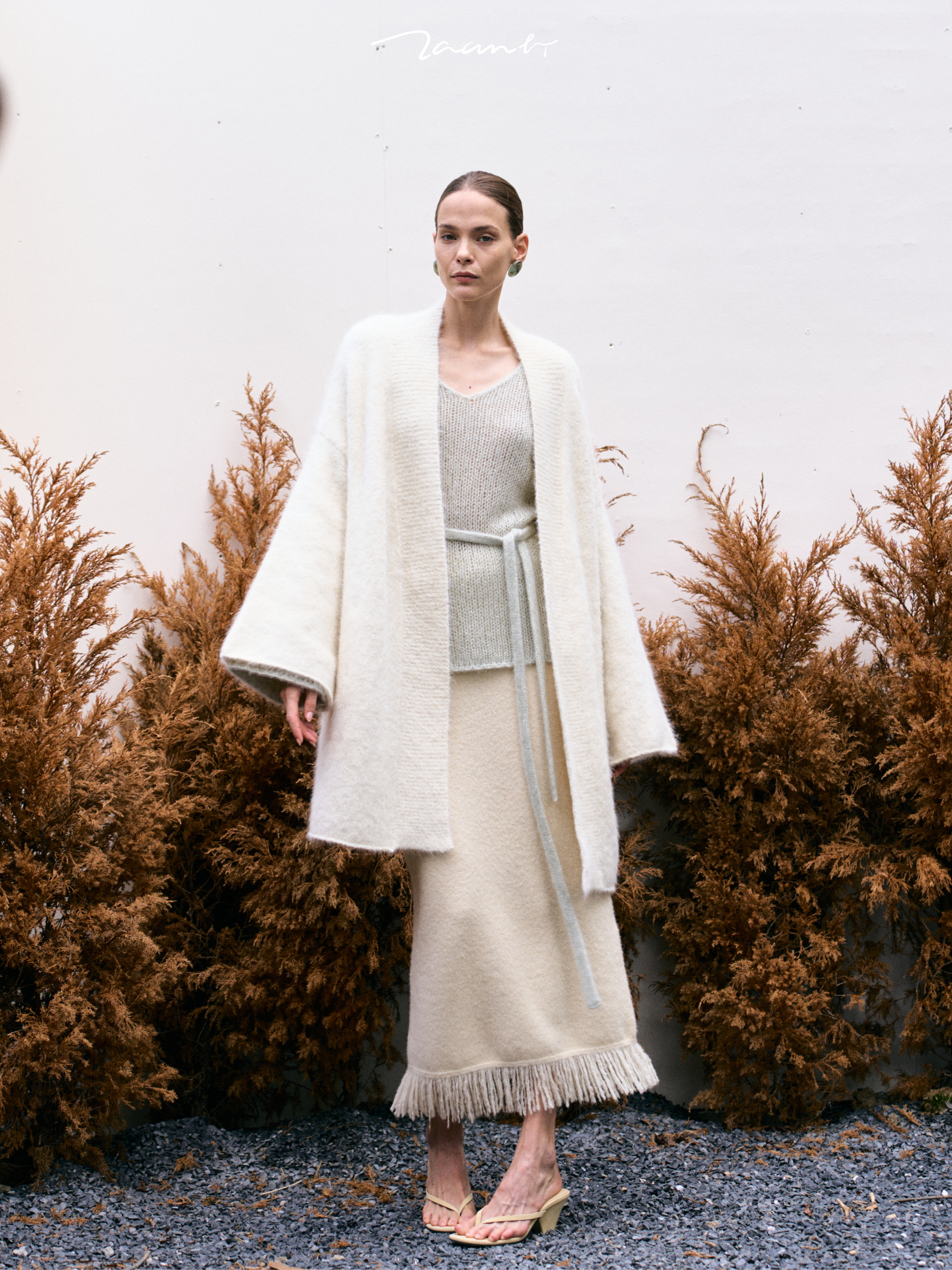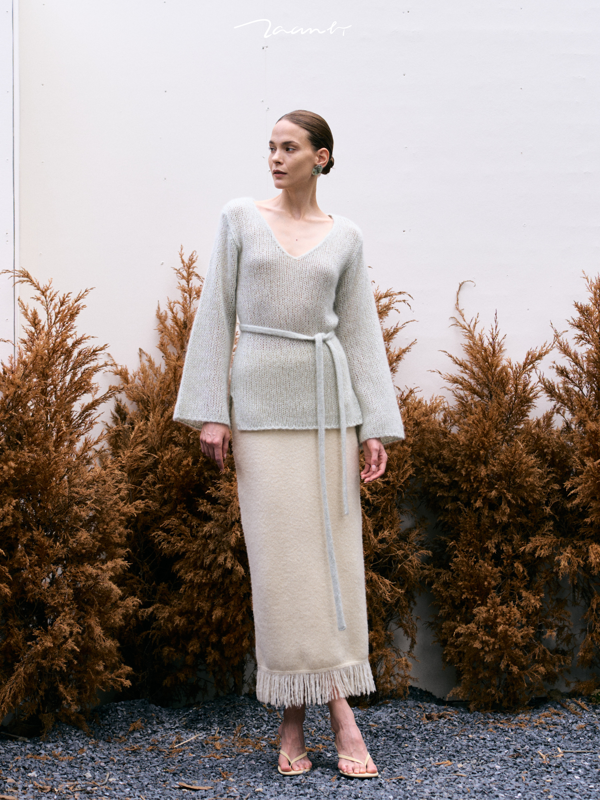 ZAANLI|ZN30002 羊毛白 羽毛感羊毛花式纱流苏针织半裙