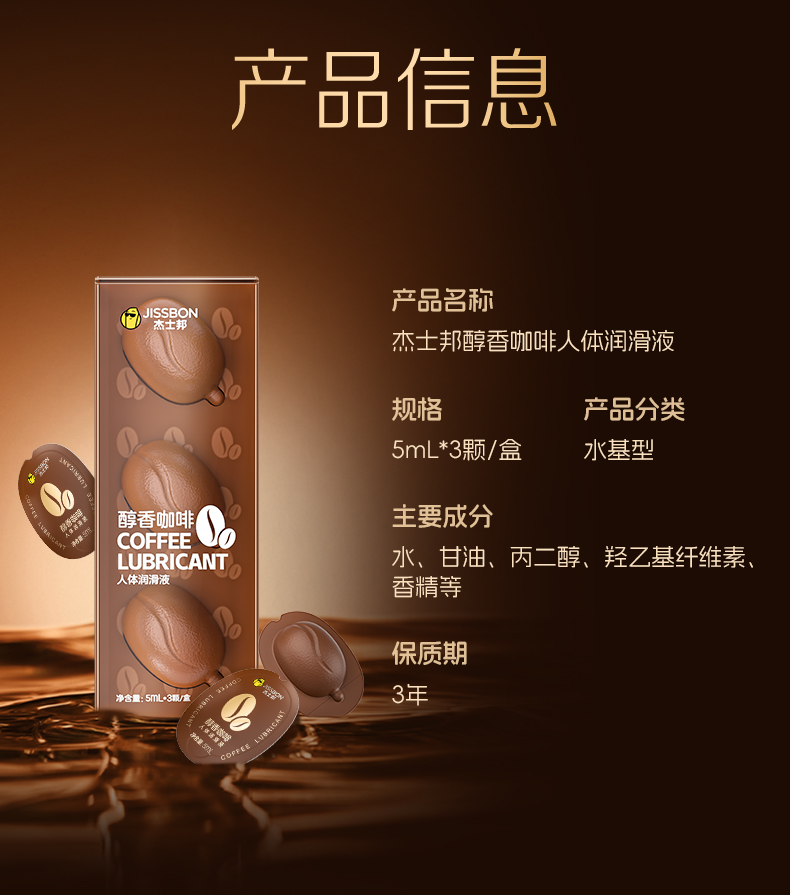 【丝滑享爱】杰士邦醇香咖啡人体润滑液5mL*3颗