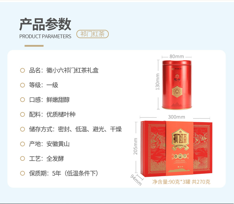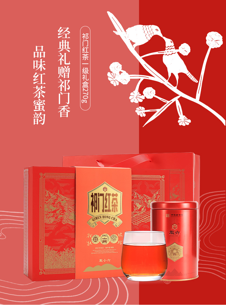 徽六一级祁门红茶茶叶红茶徽小六礼盒装270g节日送礼
