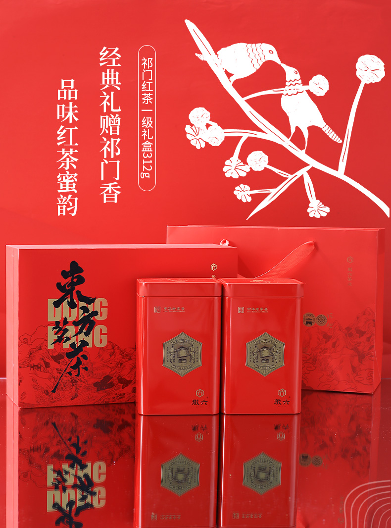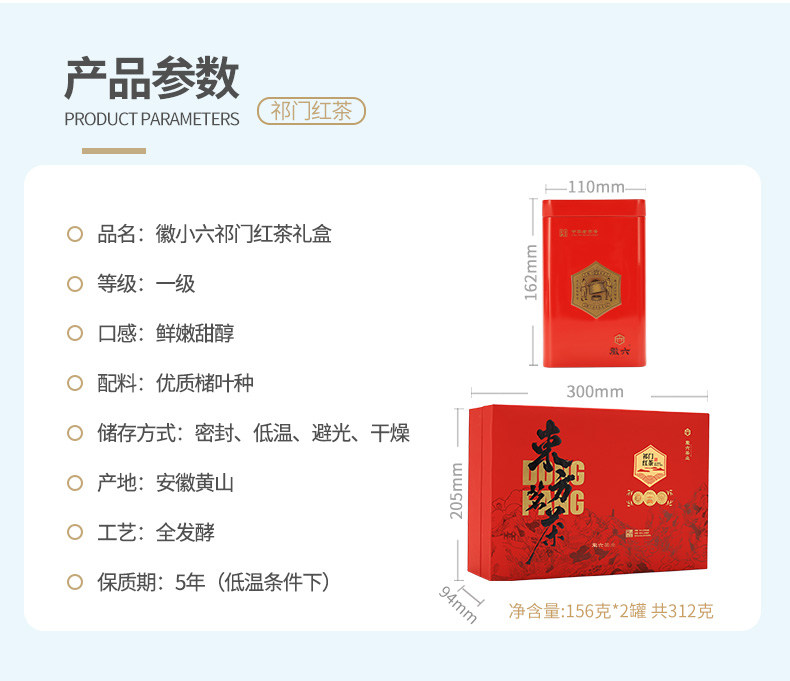 徽六一级祁门红茶茶叶红茶徽小六礼盒装312g节日年货送礼