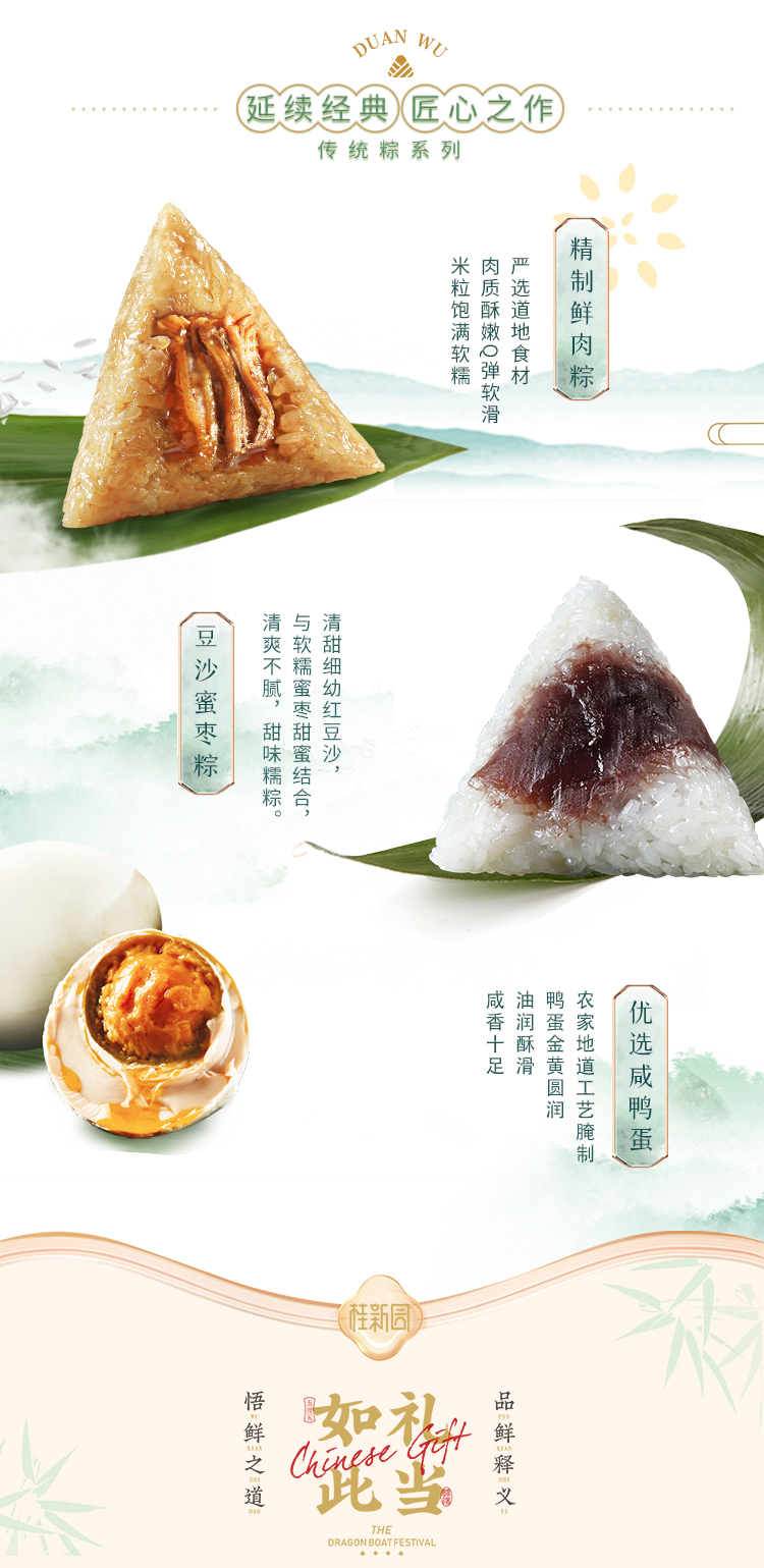 心意端阳【门市价39元】4粽2味+2枚咸鸭蛋——桂新园端午家乡粽系列