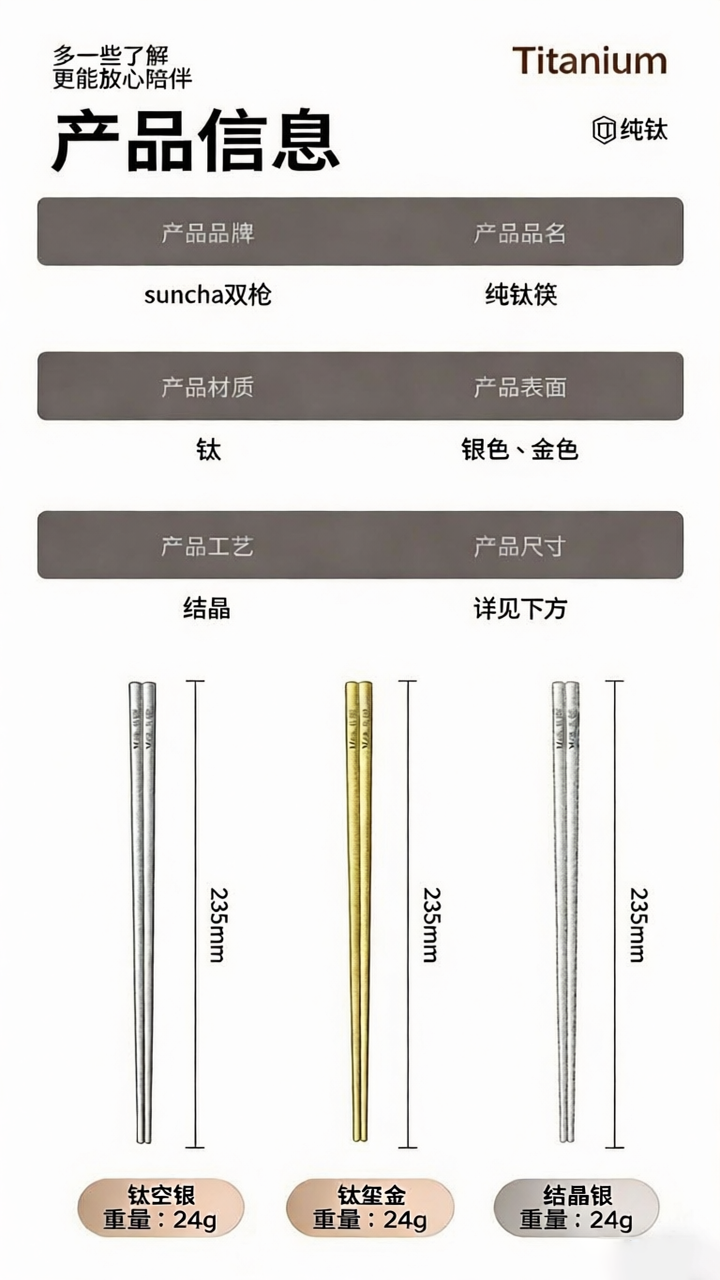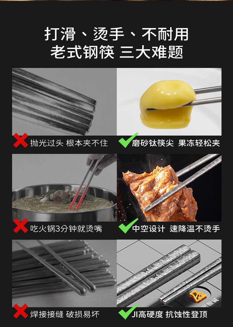 多盒更优惠!真!纯钛【耐腐蚀 轻盈手感】双枪 纯钛筷子礼盒装 守护全家健康