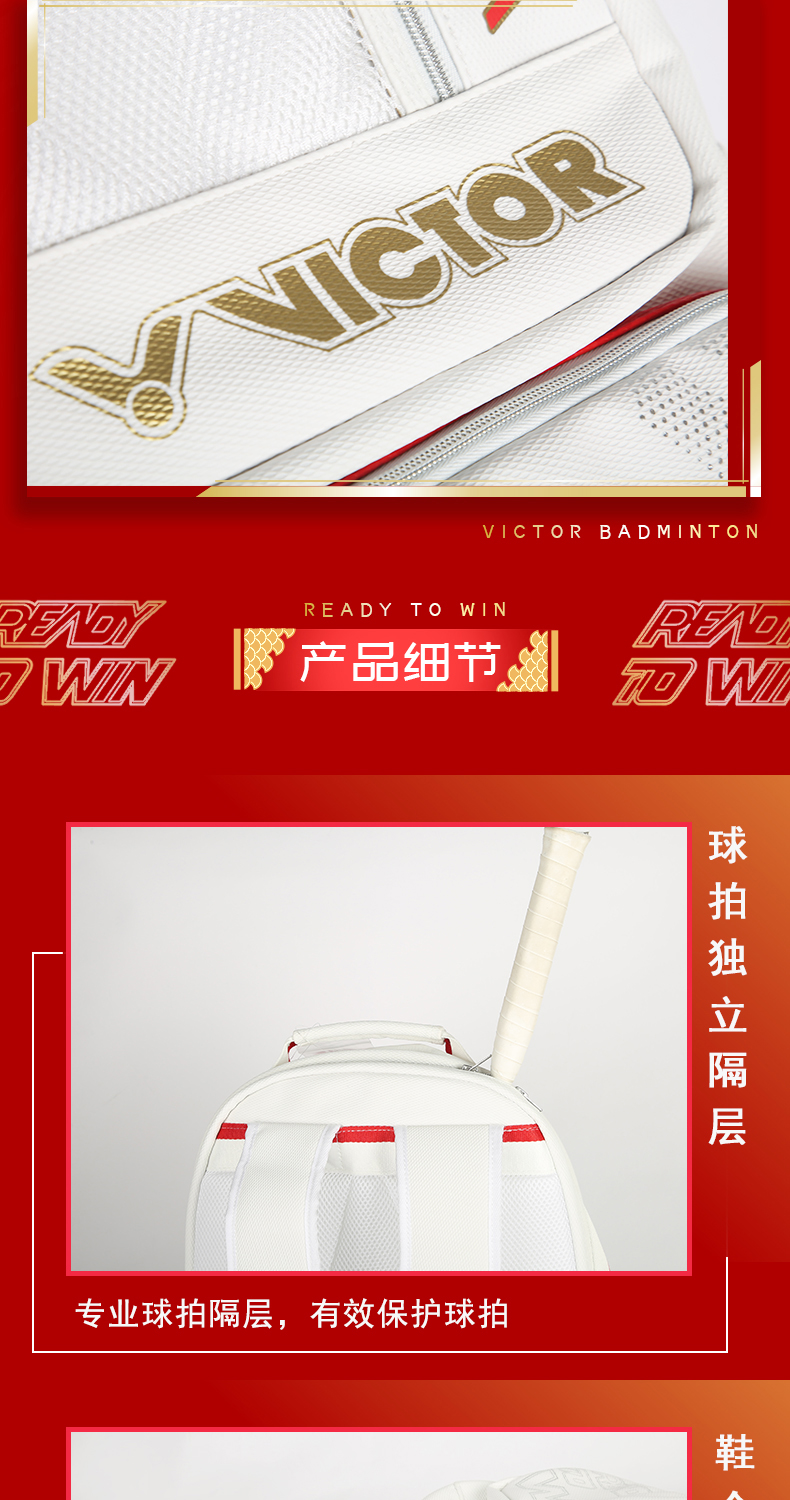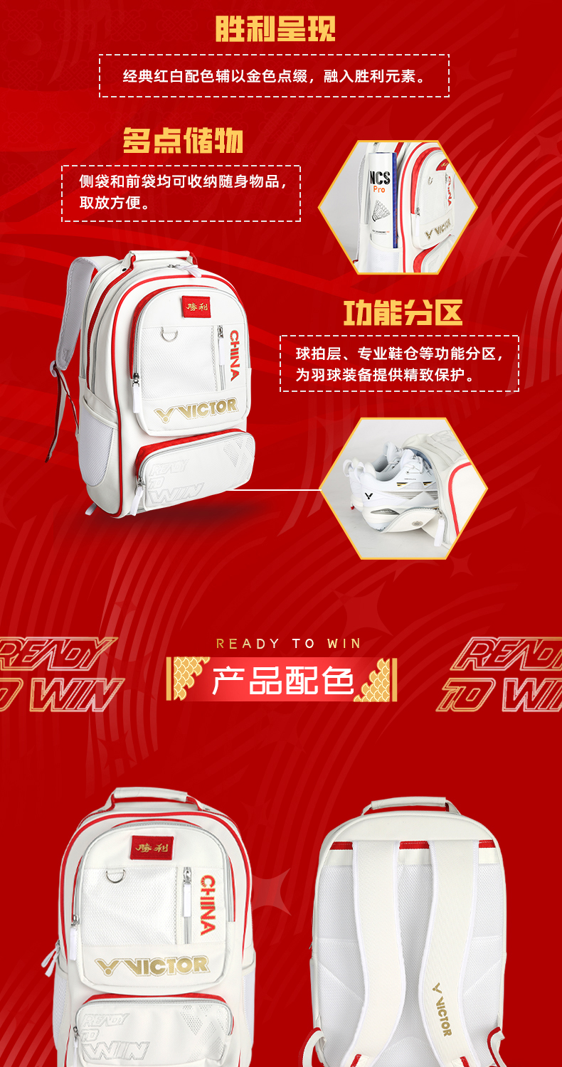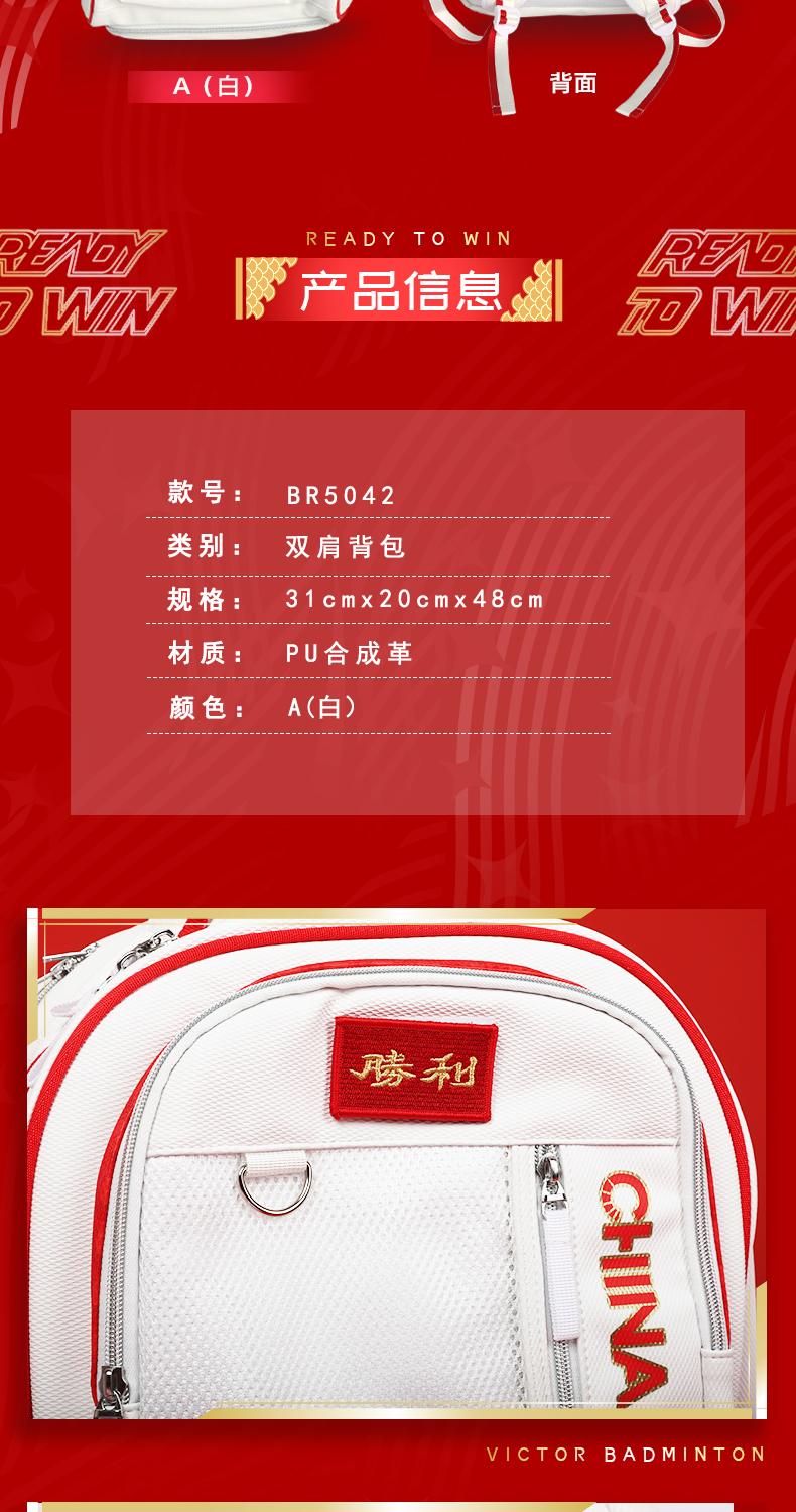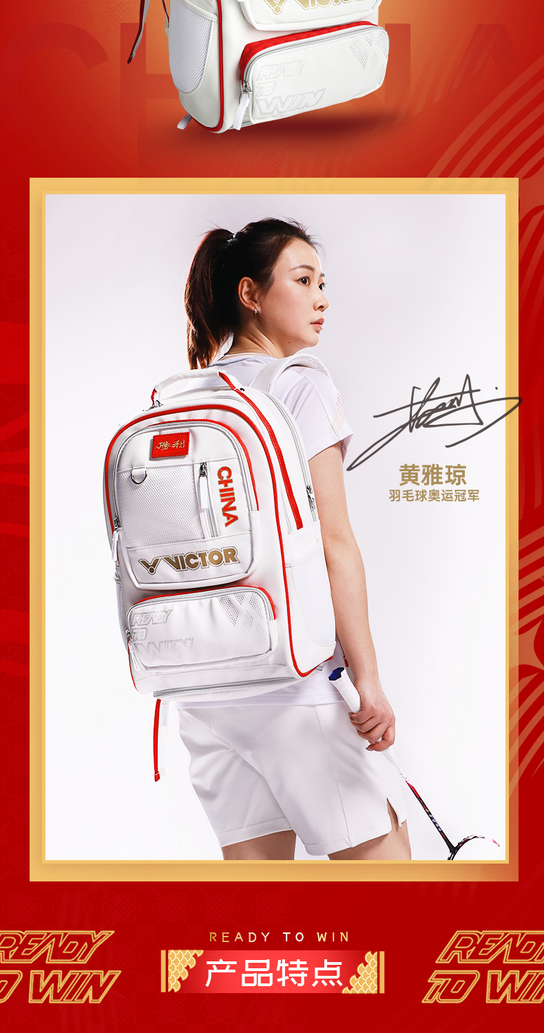 威克多胜利 羽毛球包 中国大学生羽毛球队装备 双肩背包 BR5042
