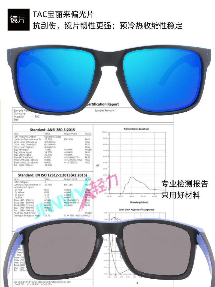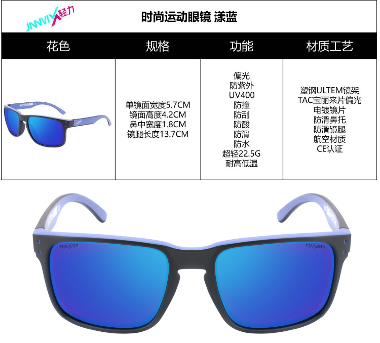 JINNMIX轻力漾蓝 超轻偏光防紫外防酸时尚运动眼镜