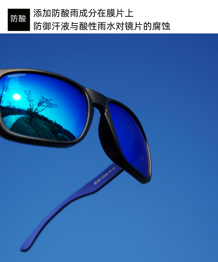 镜片的偏光有偏光膜层,一款镜片是由不同种膜层组成的,镀revo彩膜,是墨镜片里面贵的其中一种,镀revo膜层,为特别功能运动眼镜采用。它是由8-12层极薄的水银镀成的,所以比较贵,减少辐射效果非常好,颜色多彩可配合眼镜的颜色,且有阻水效果,表面光滑,水滴在片上可以迅速化开,不会停留在片上。