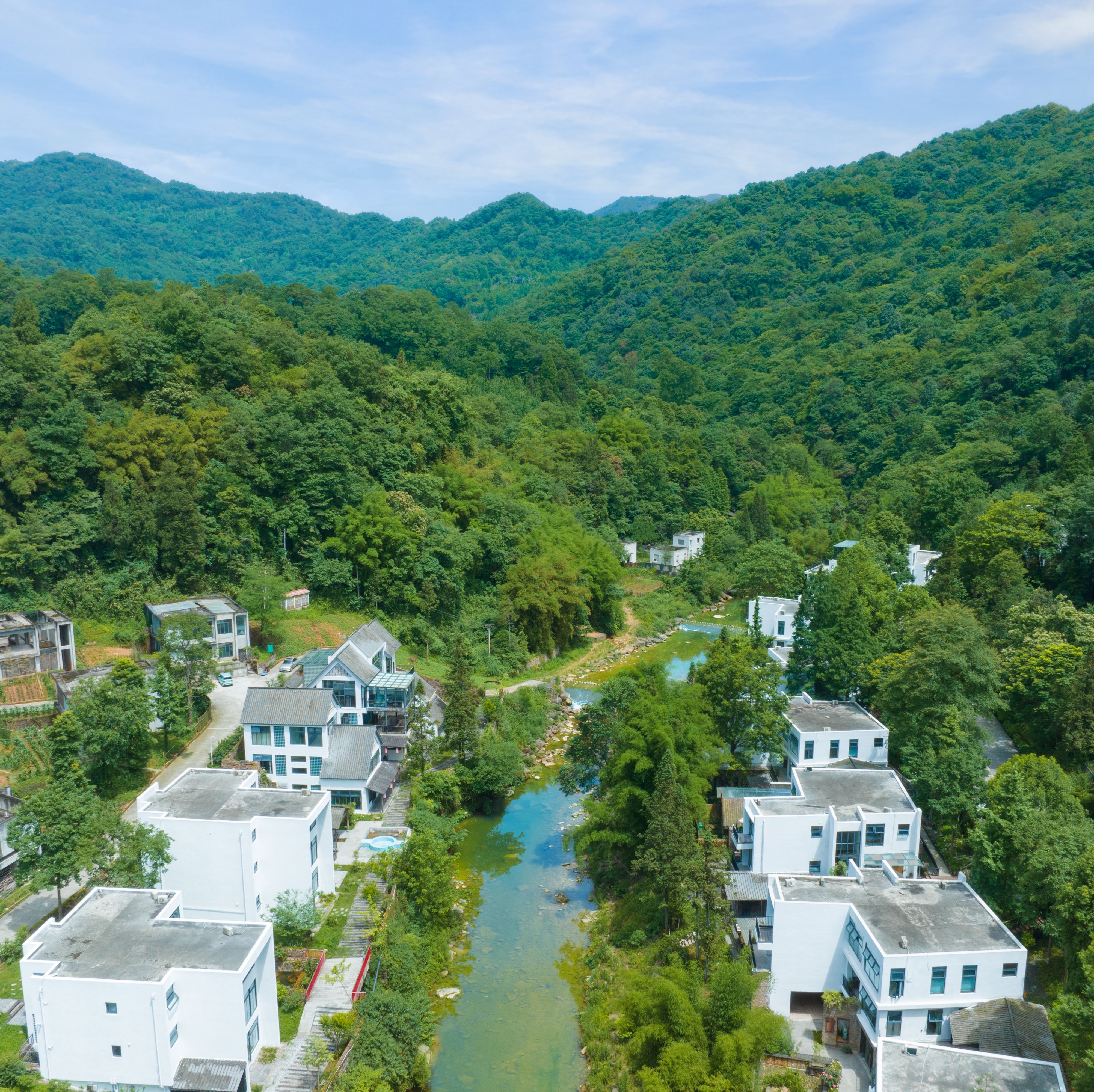 酒店位于青城山大观镇,坐落在青城半山,这里依山傍水, 自然生态环境优越,是踏青、休闲避暑、康养度假和观赏雪山风景的好去处。