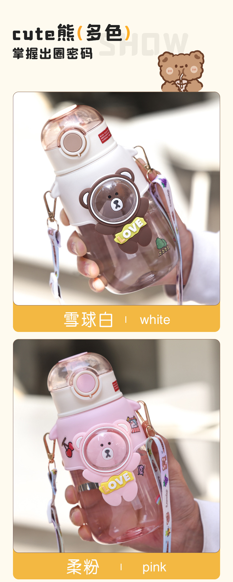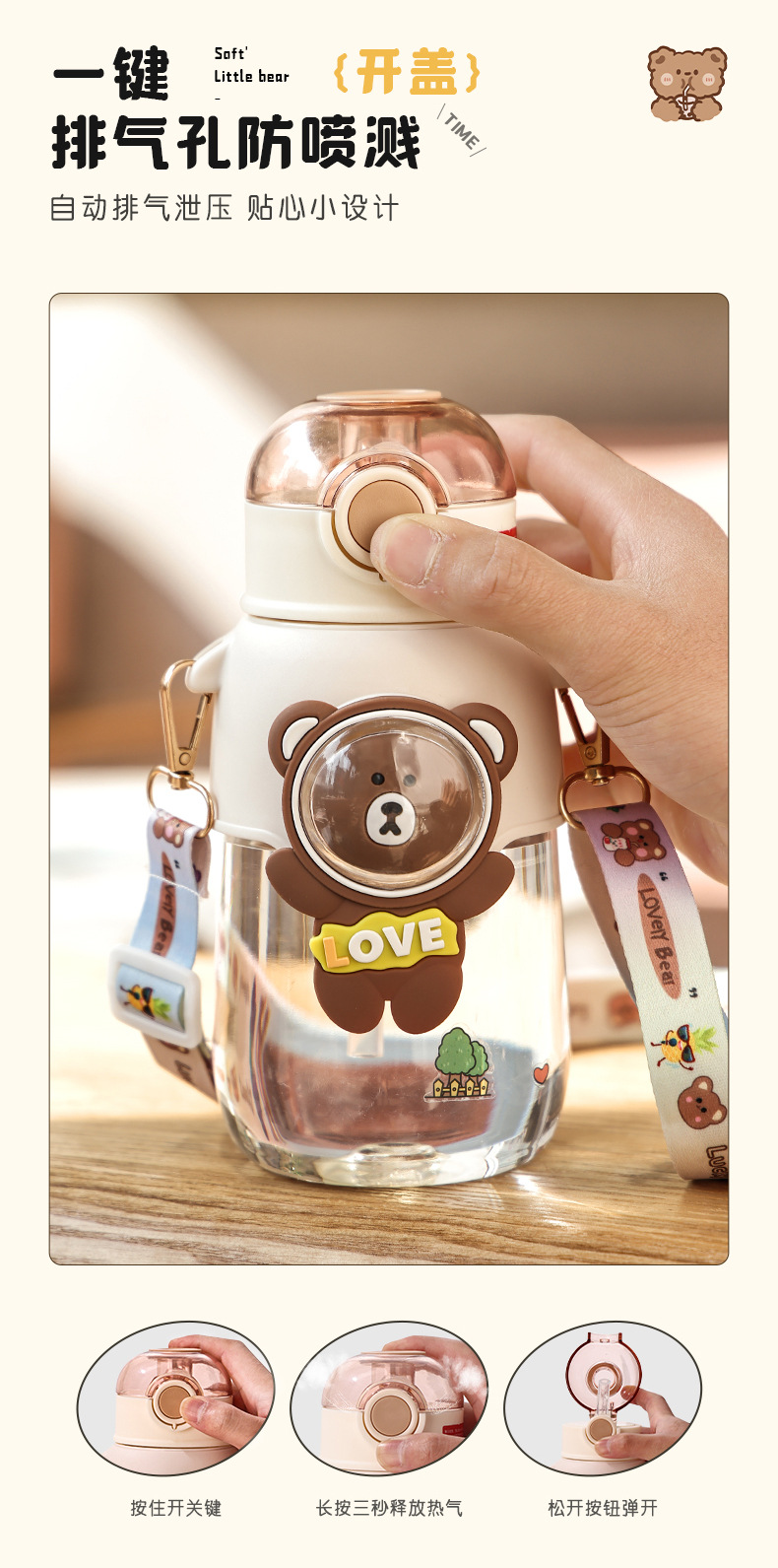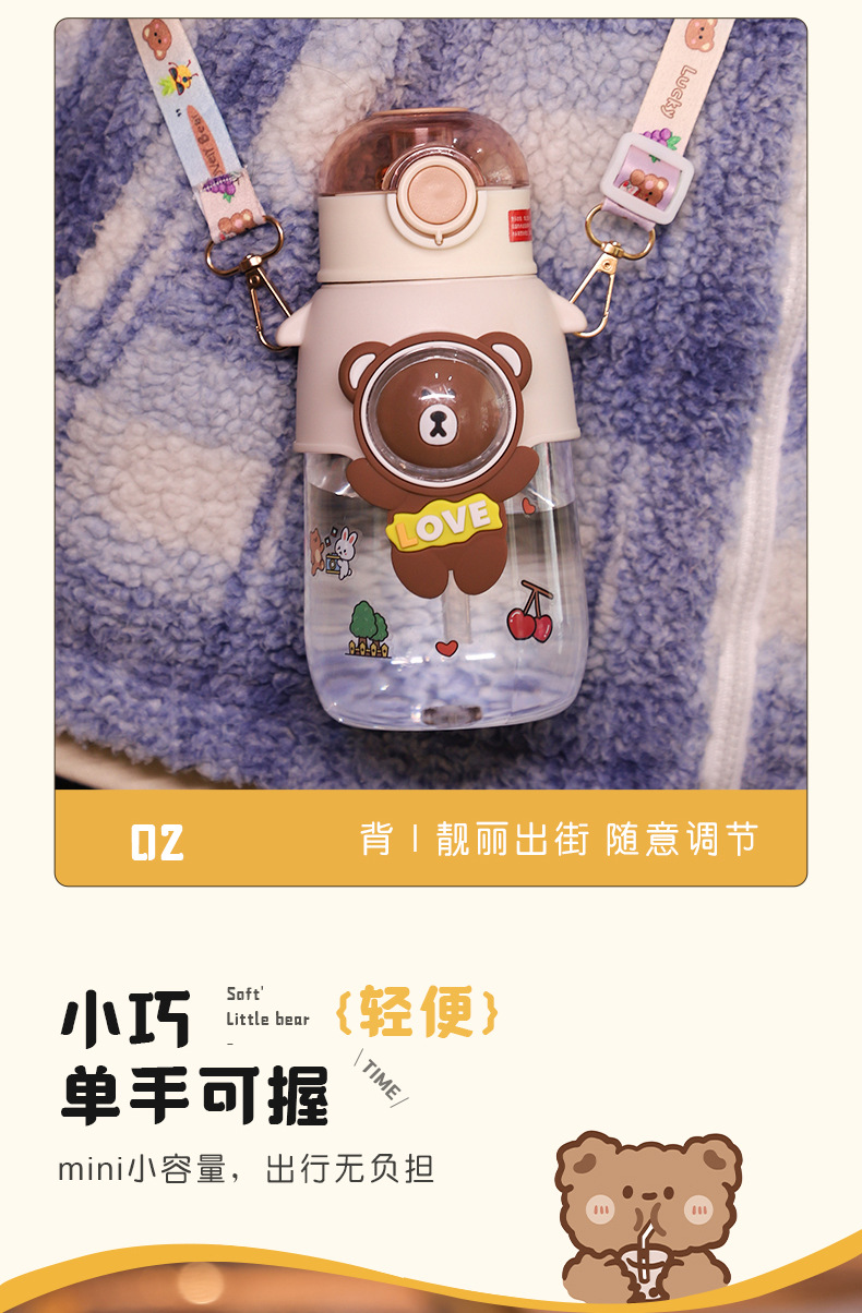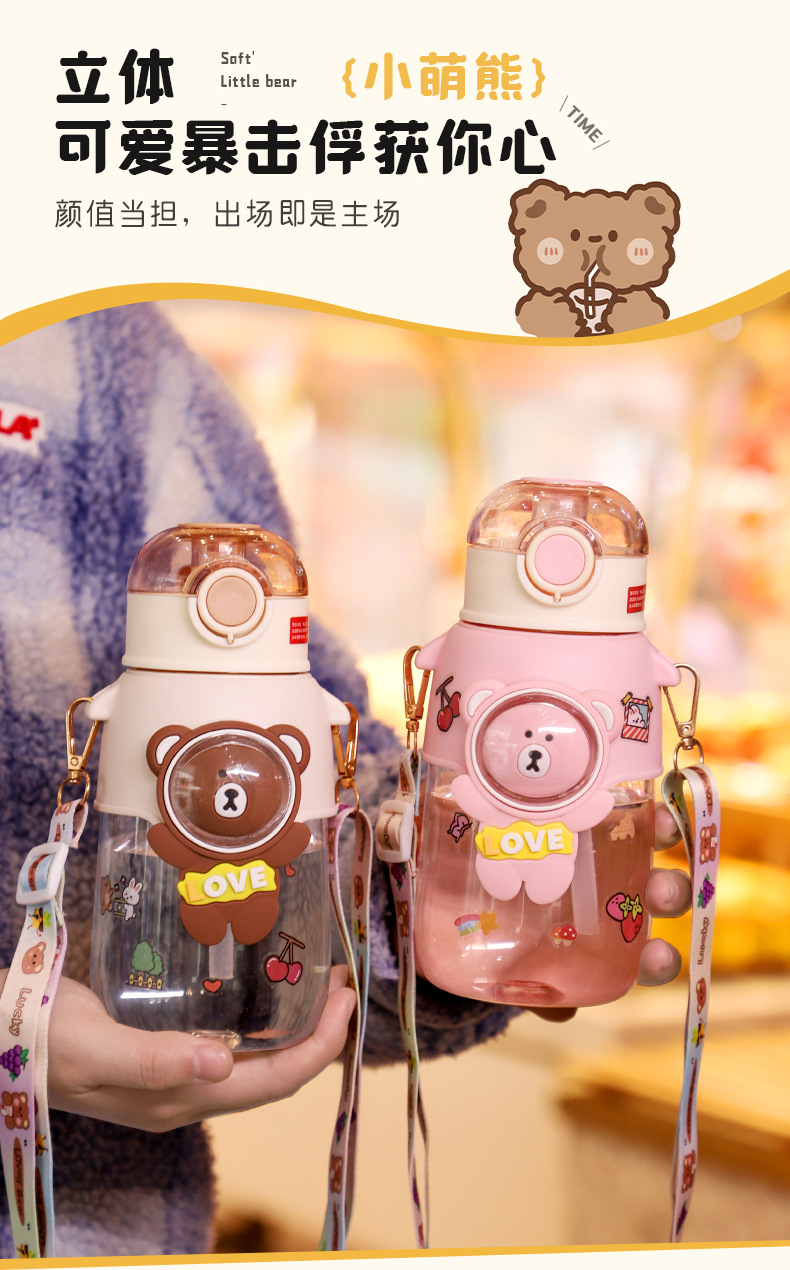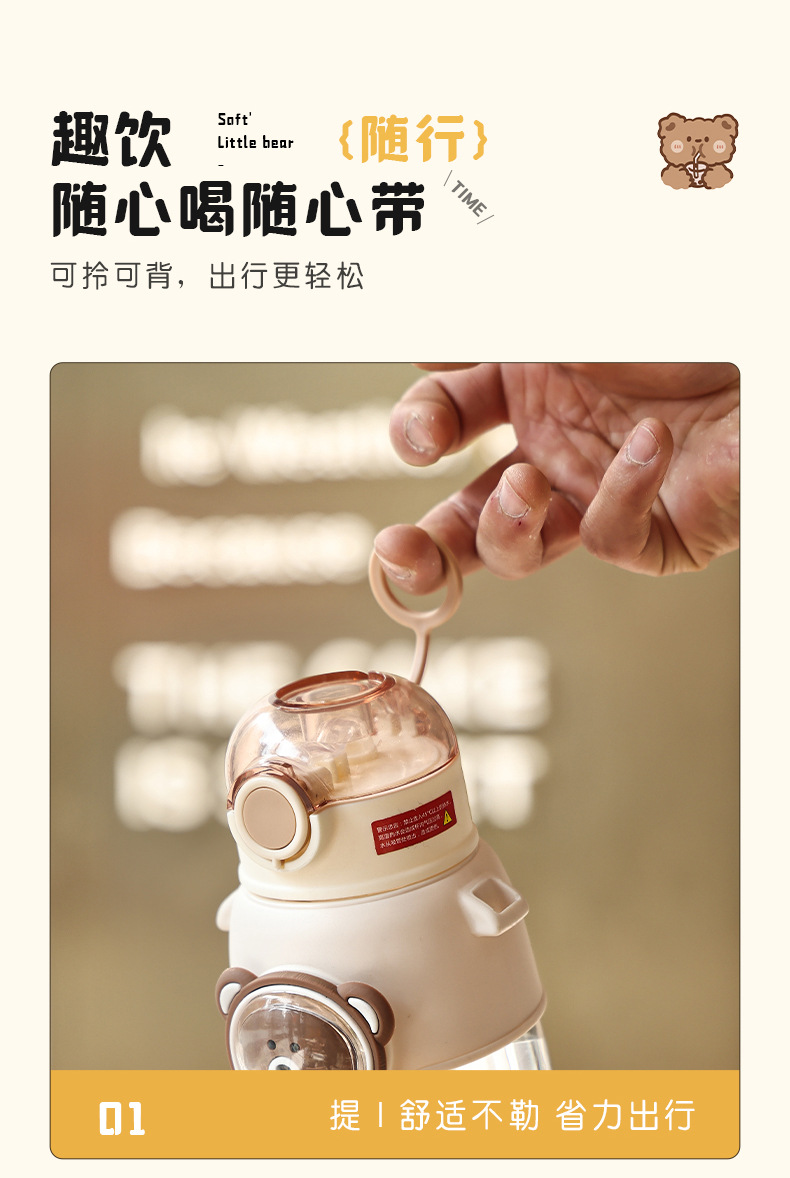 【软萌治愈饮水时刻!可爱乐趣小熊杯】颜值当担,出场即是主场,多重锁水设计,外出携带更安心,高颜值卡通动物可爱吸管杯,学生卡通背带水壶L