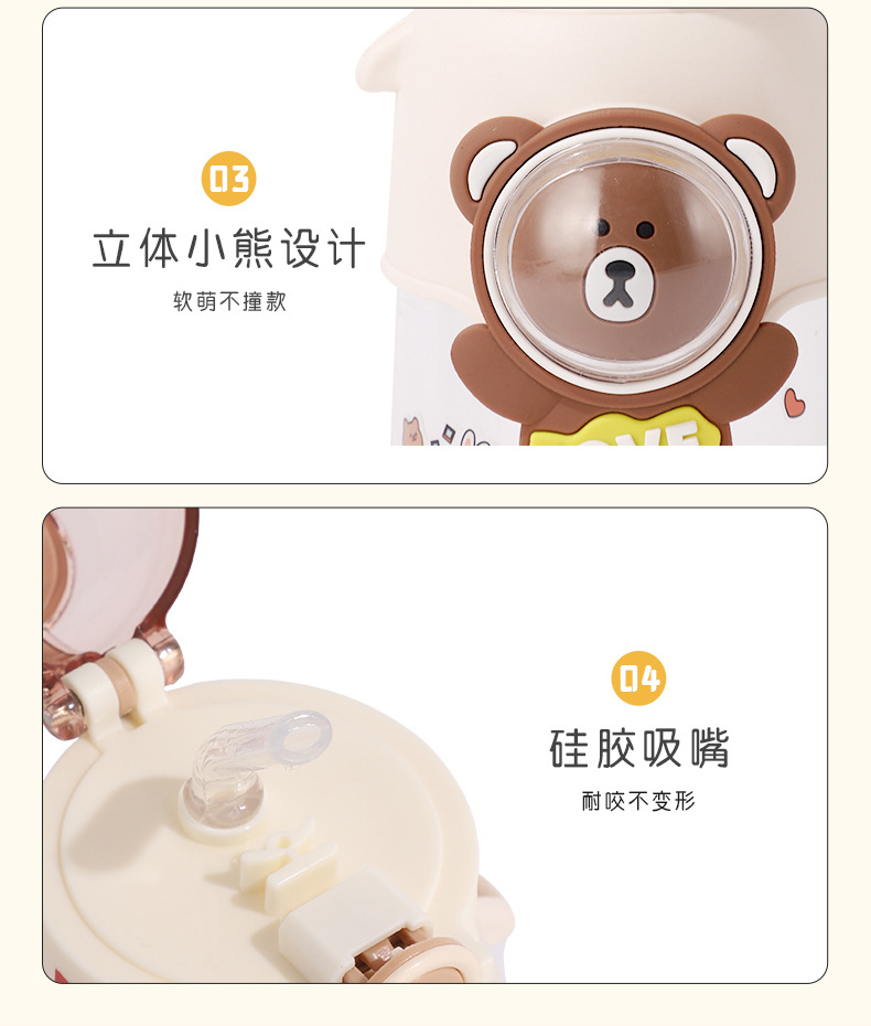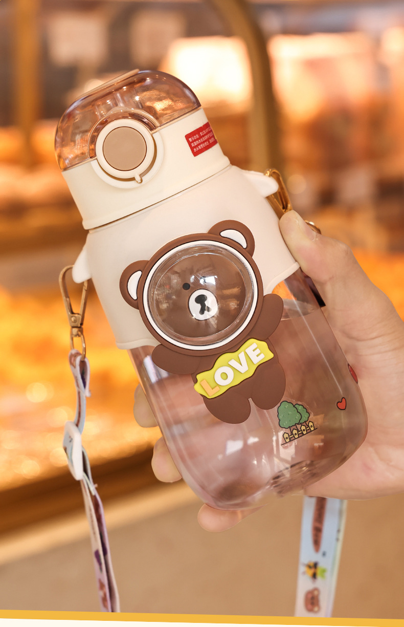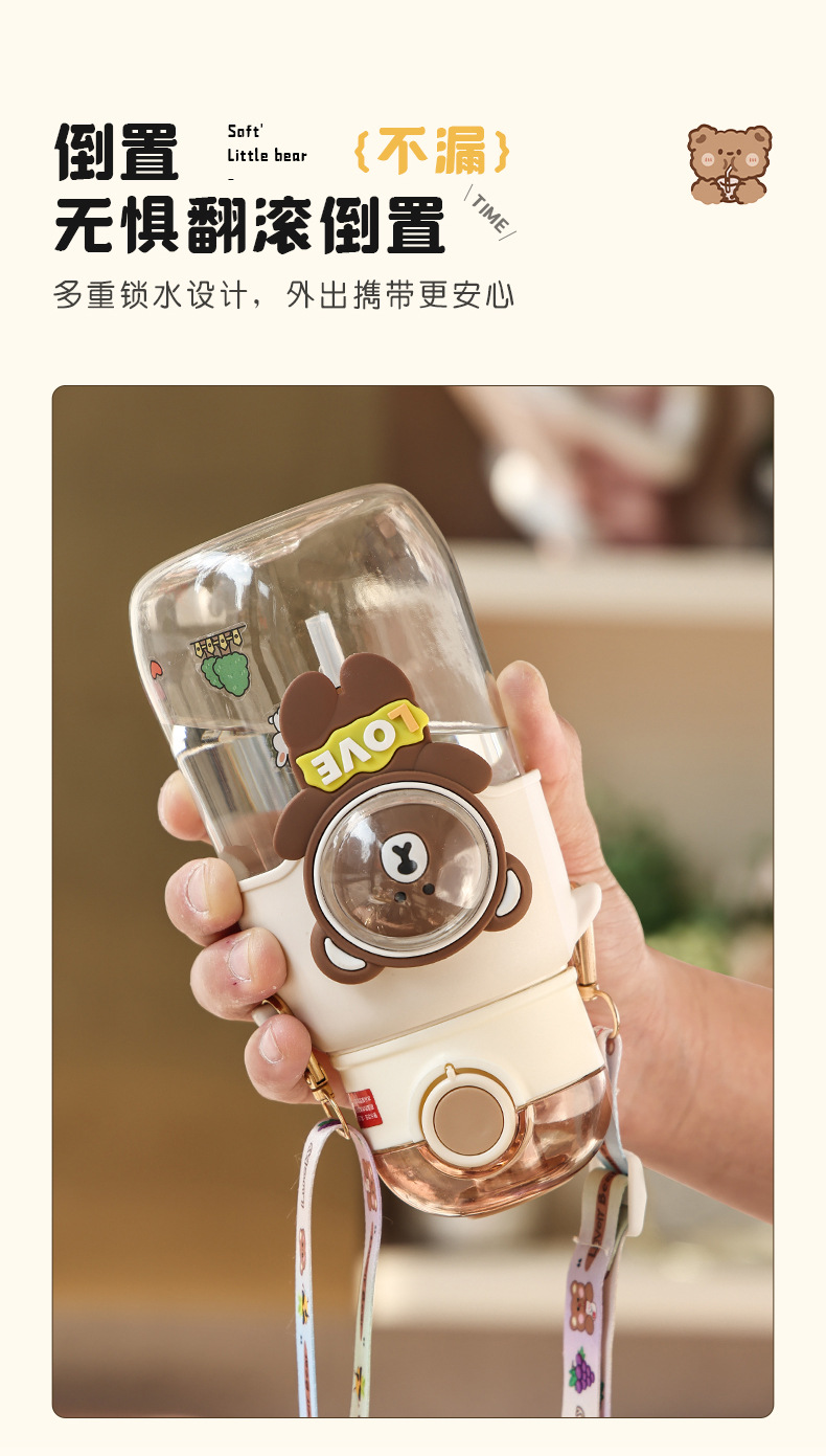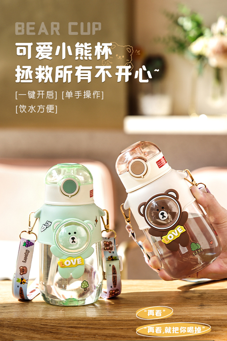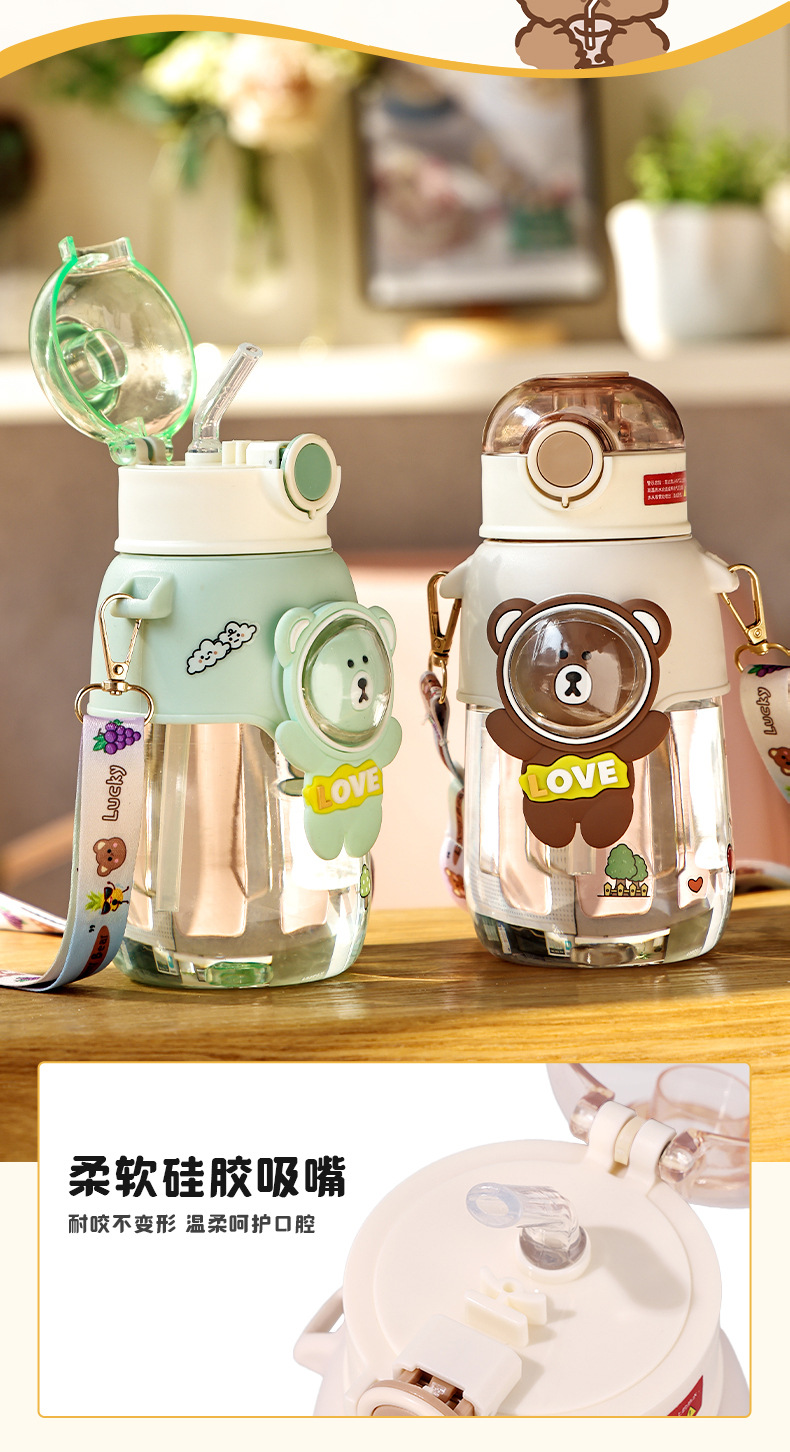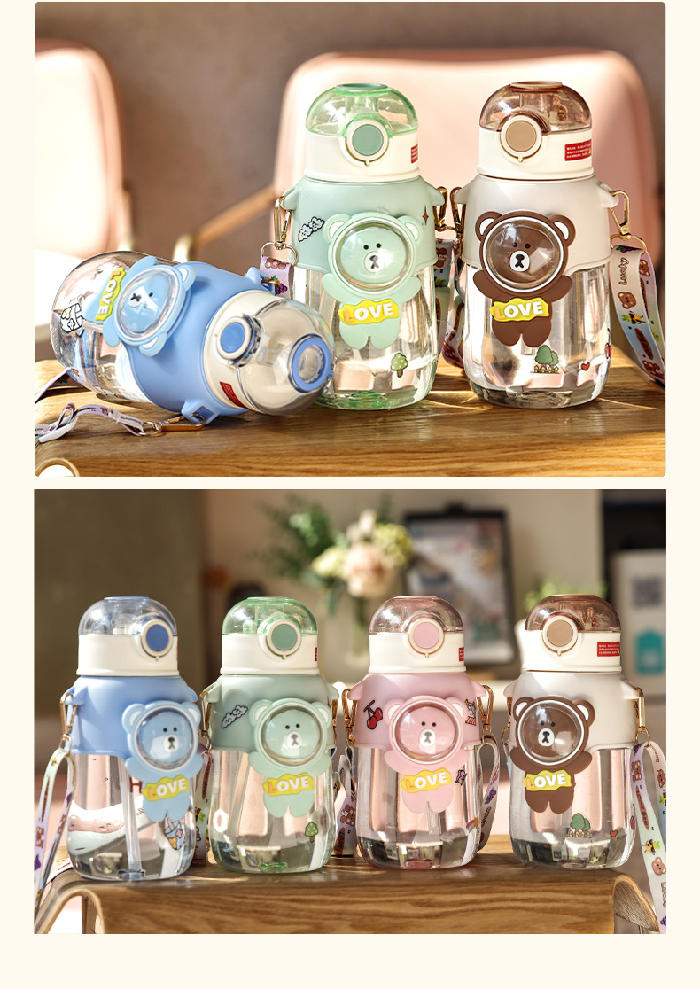 【软萌治愈饮水时刻!可爱乐趣小熊杯】颜值当担,出场即是主场,多重锁水设计,外出携带更安心,高颜值卡通动物可爱吸管杯,学生卡通背带水壶L