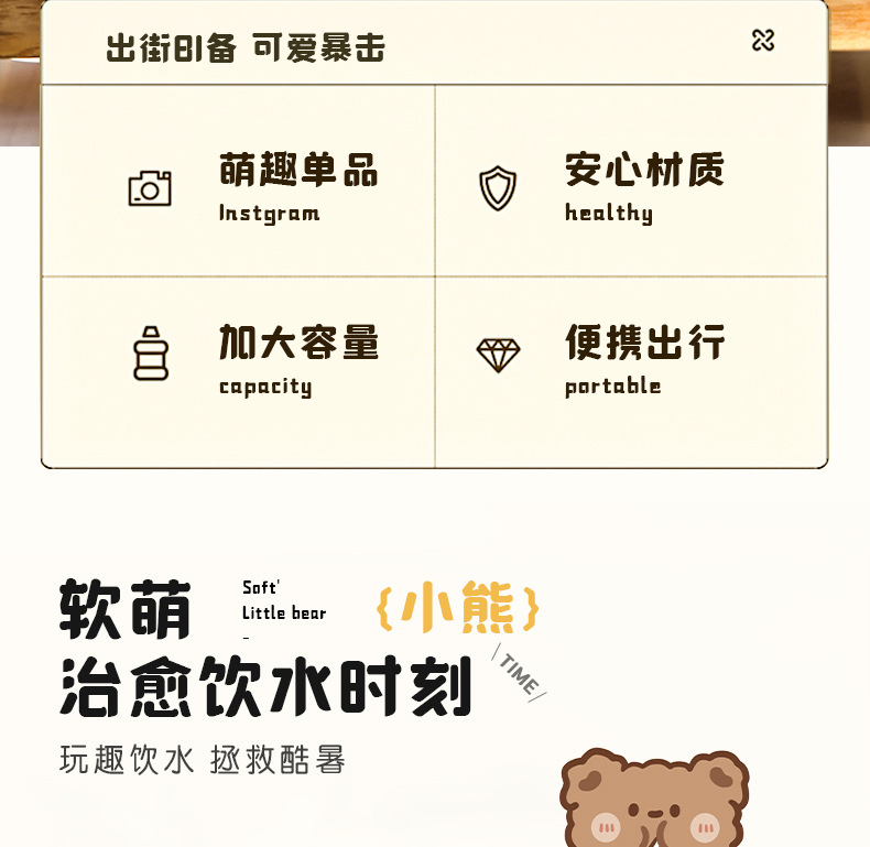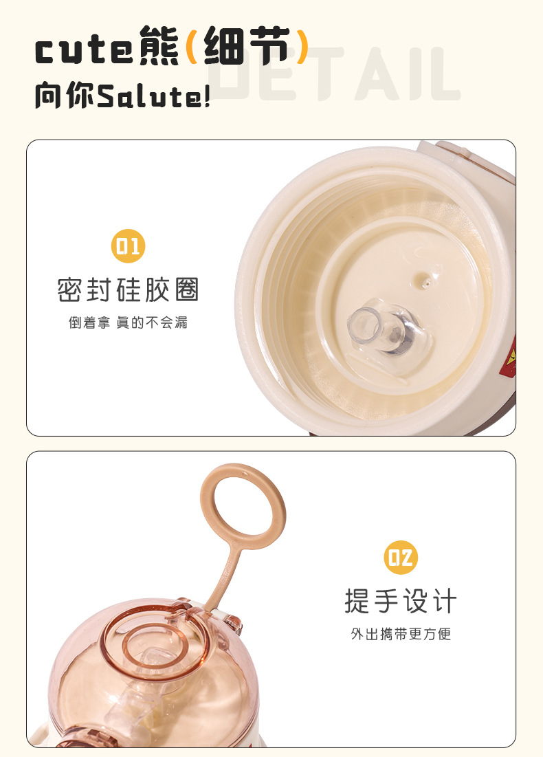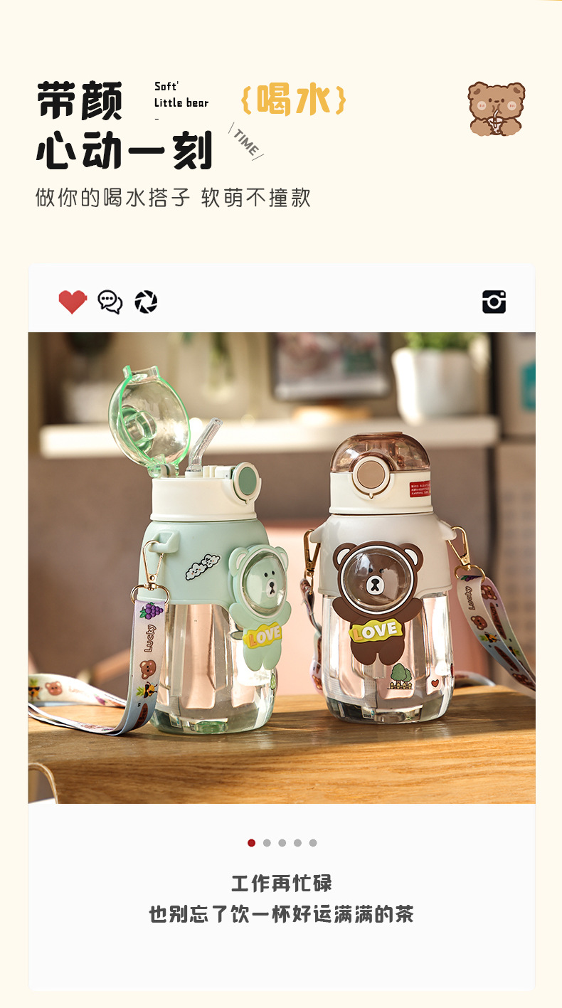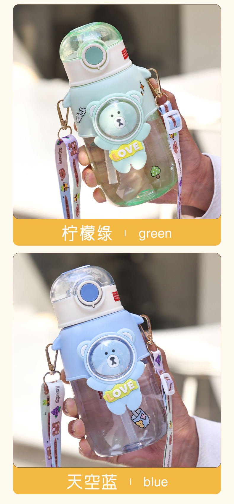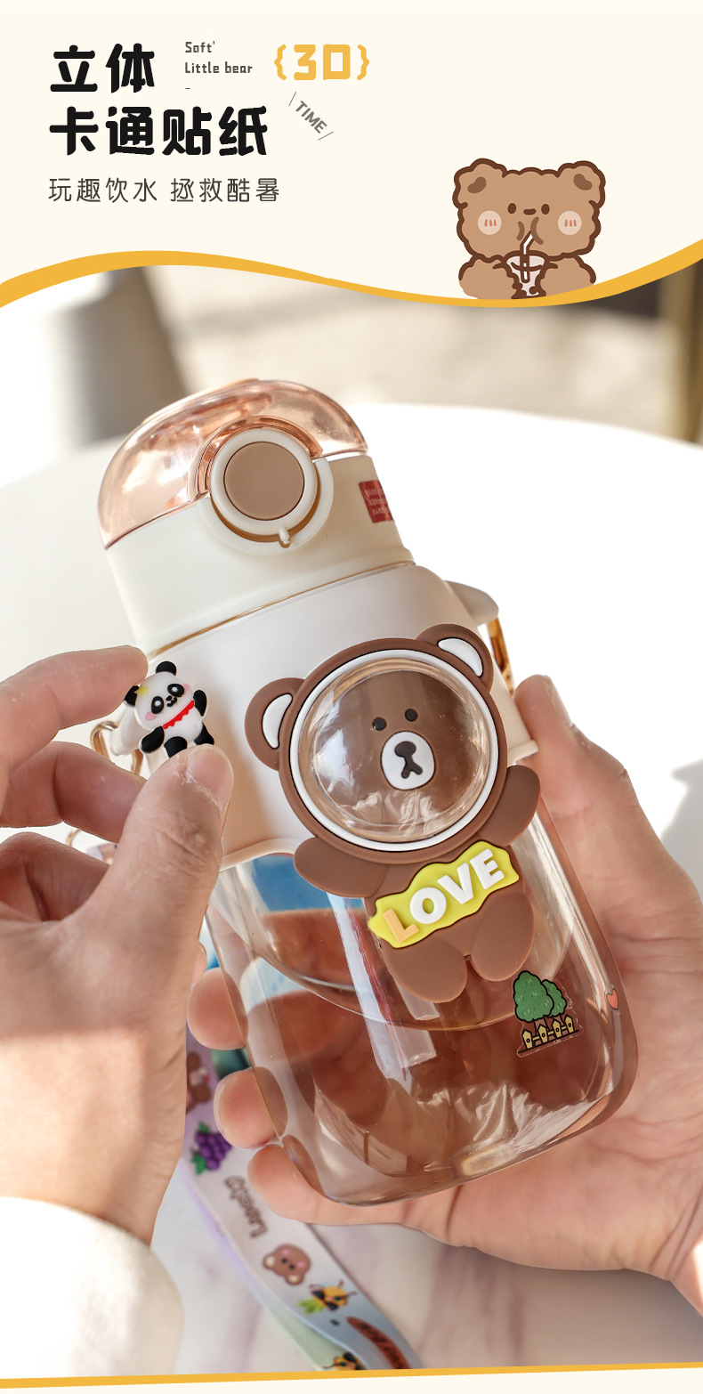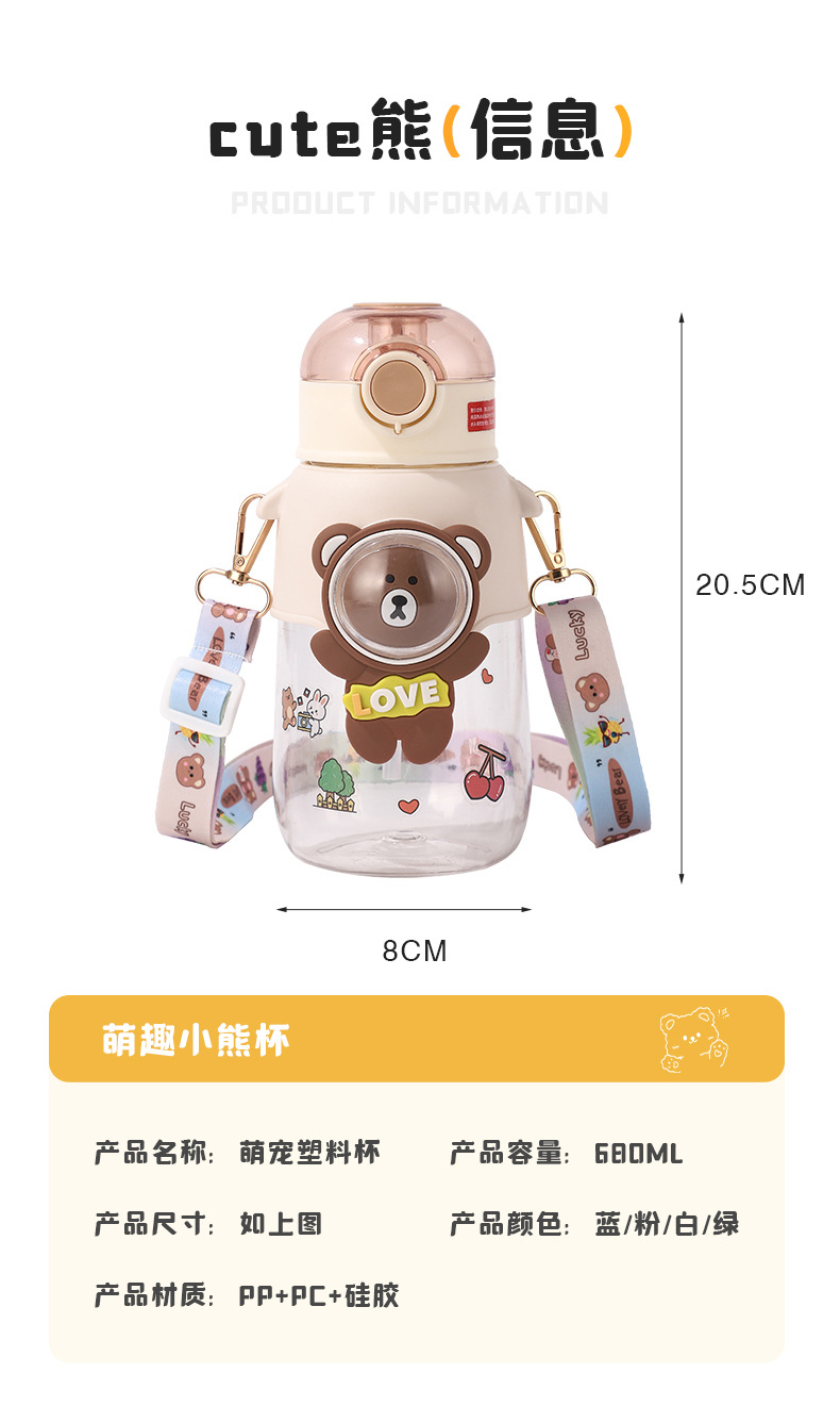 【软萌治愈饮水时刻!可爱乐趣小熊杯】颜值当担,出场即是主场,多重锁水设计,外出携带更安心,高颜值卡通动物可爱吸管杯,学生卡通背带水壶L