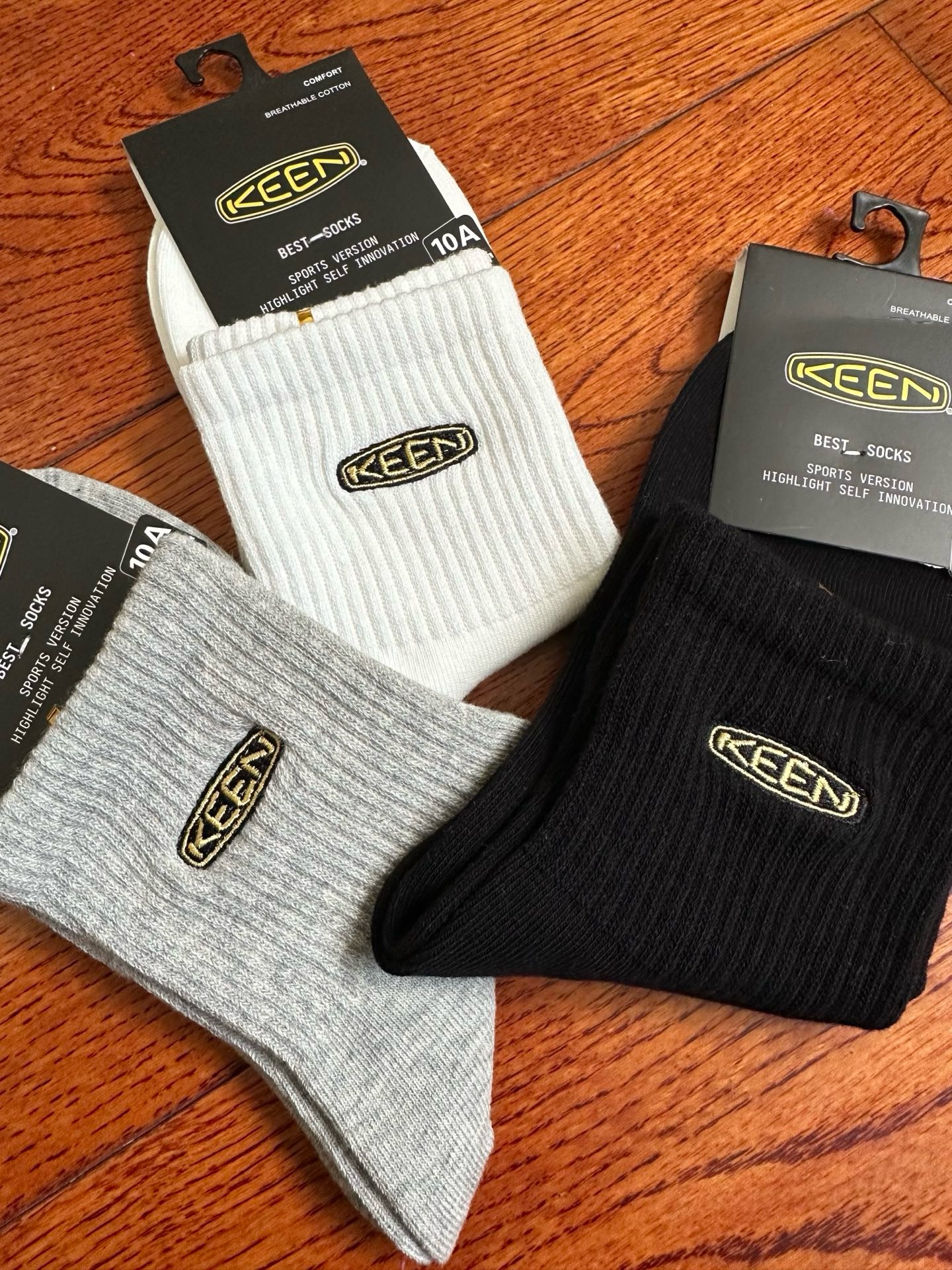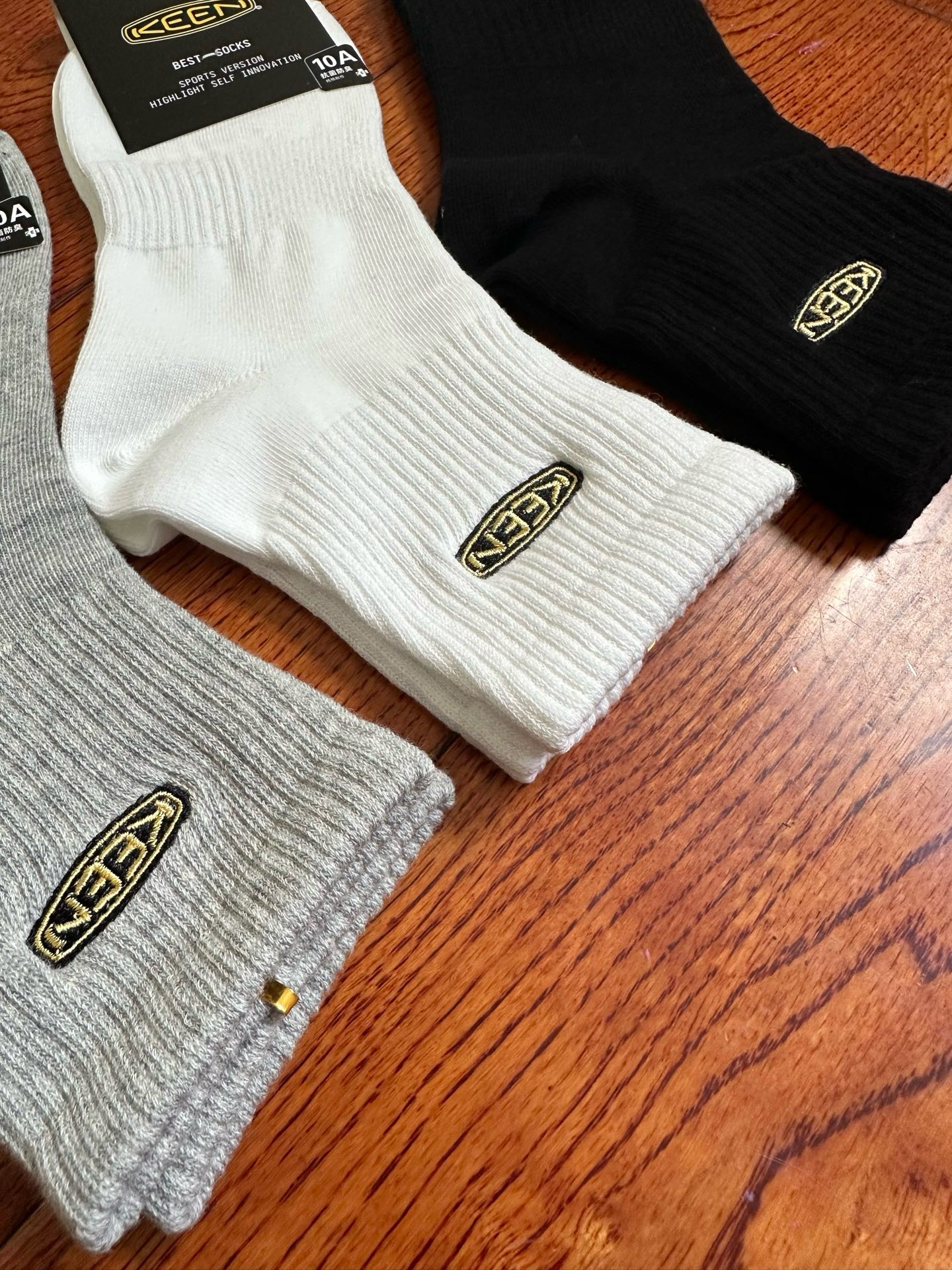 美户外品牌Keen刺绣中筒袜三双装,纯棉纱线吸汗不臭脚,脚背脚腕螺口橡筋加固加宽,可以防止在强烈的运动过程中袜筒移位下滑。精美刺绣,有独立卡纸包装!